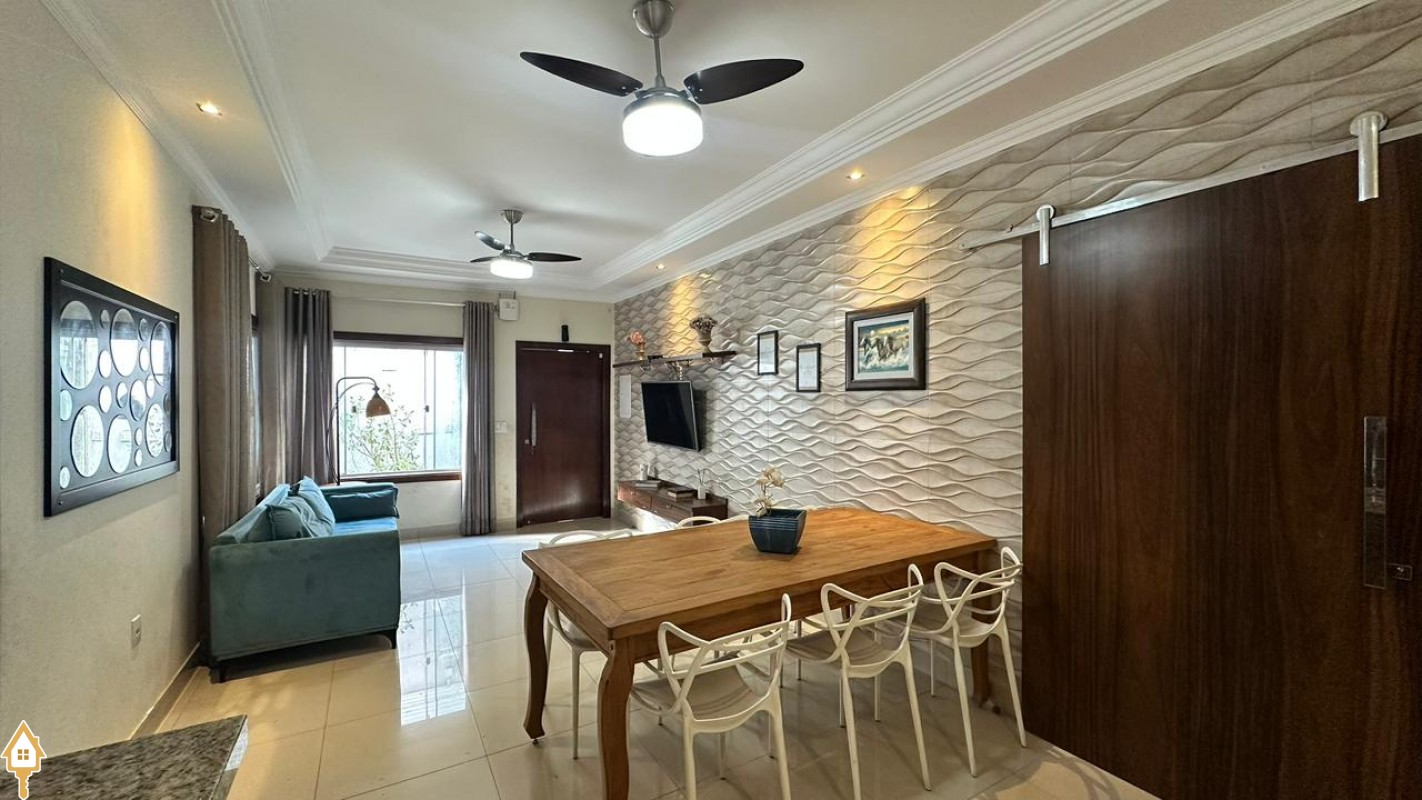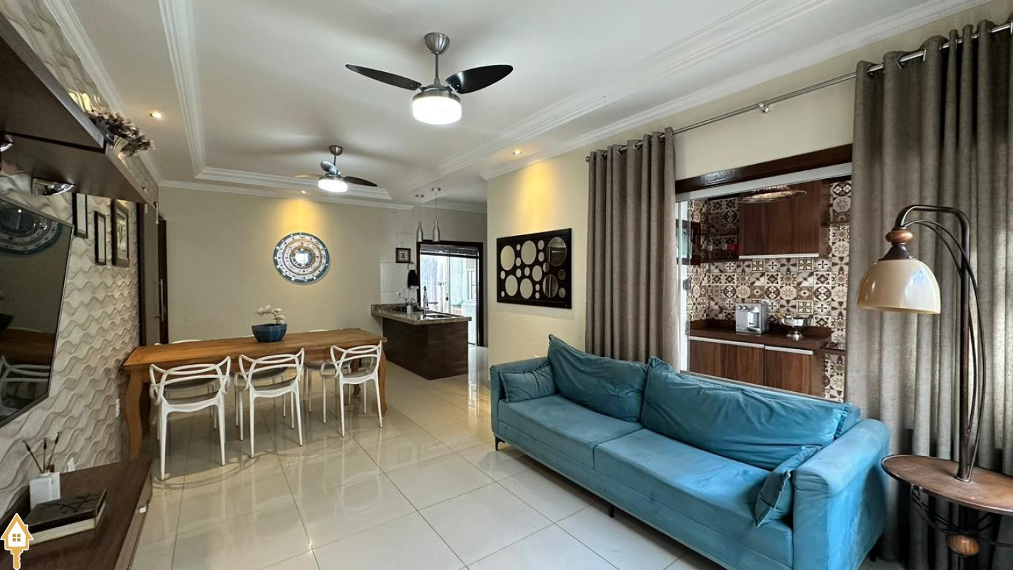 O imóvel conta com 3 quartos, sendo 1 suíte, além de 4 banheiros, oferecendo conforto e funcionalidade para toda a família. Possui sala de estar e sala de jantar integradas, criando um ambiente amplo e acolhedor para convivência.