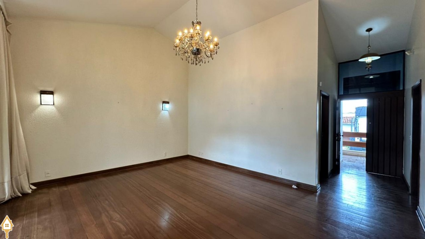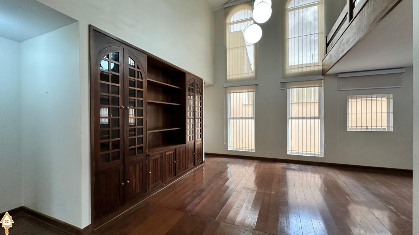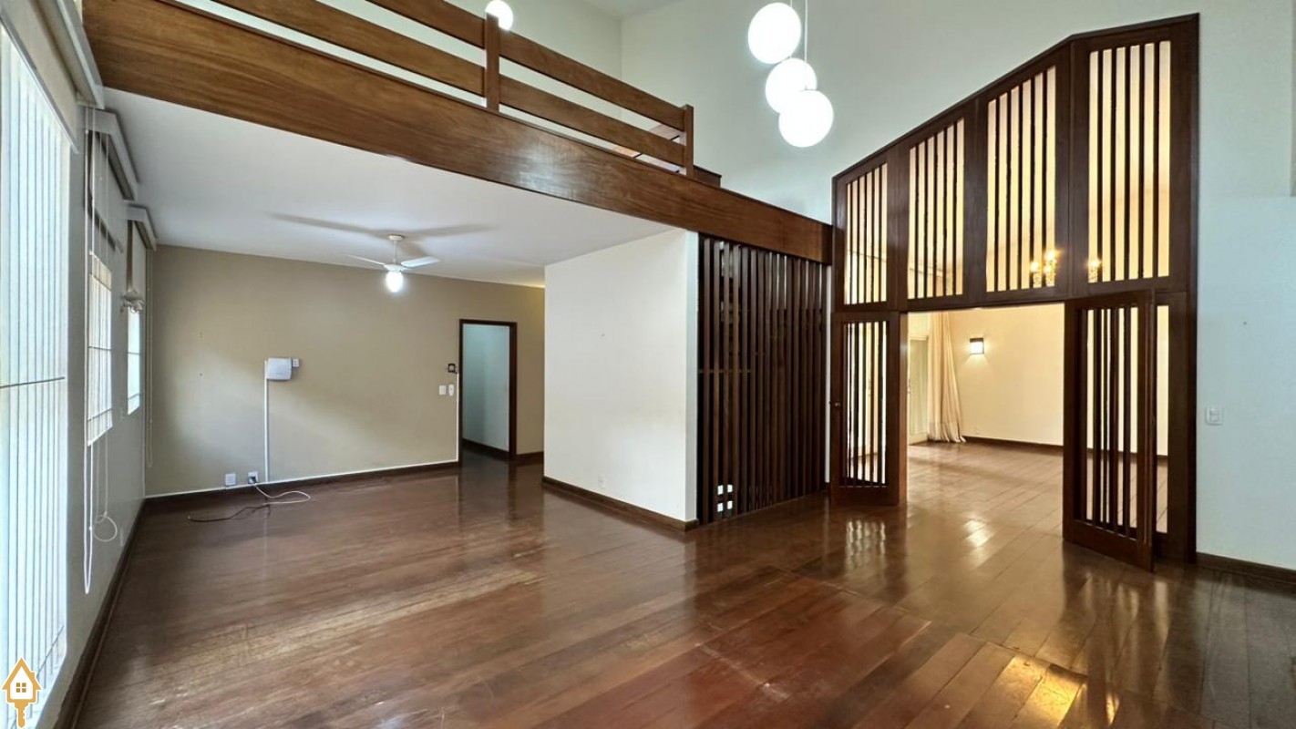 • Sala de estar com pé-direito duplo e piso todo assoalhado