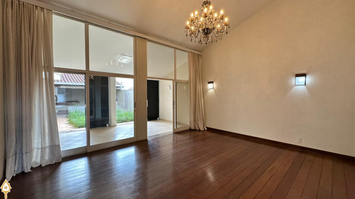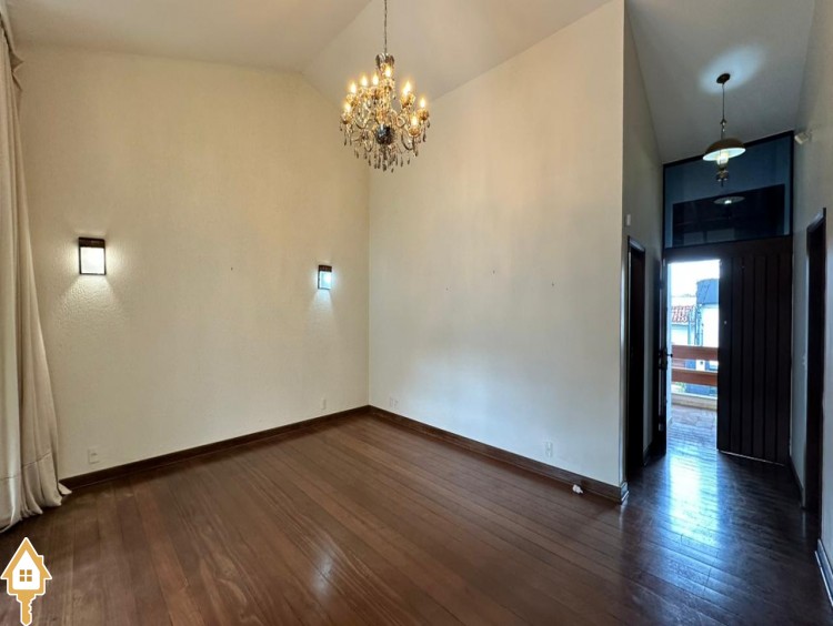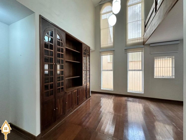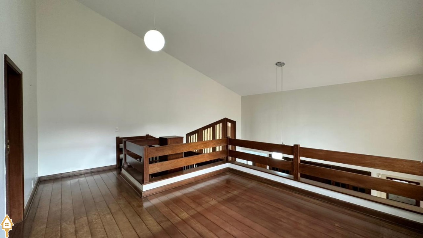 • Sala de estar com pé-direito duplo e piso todo assoalhado