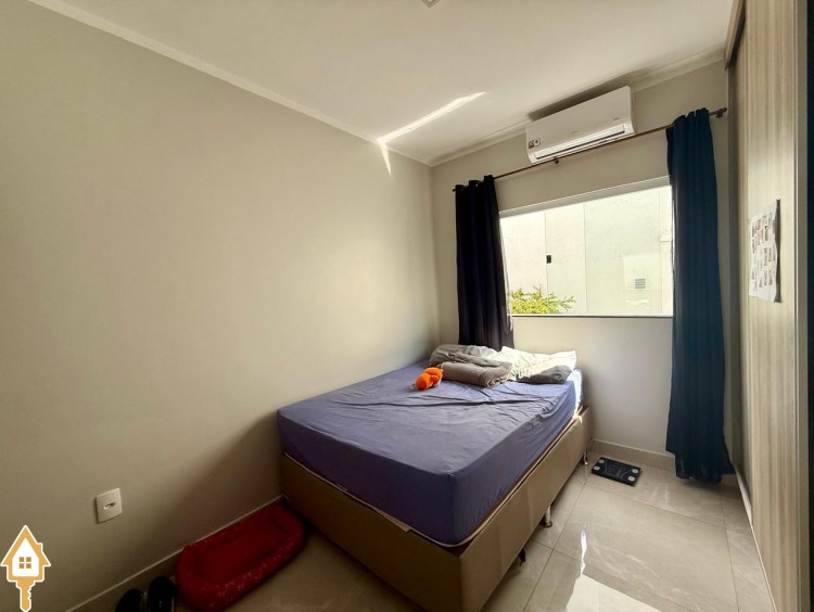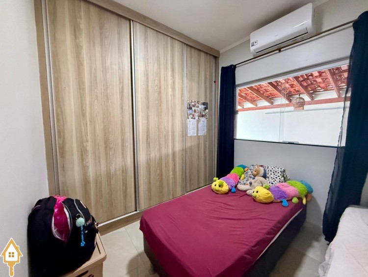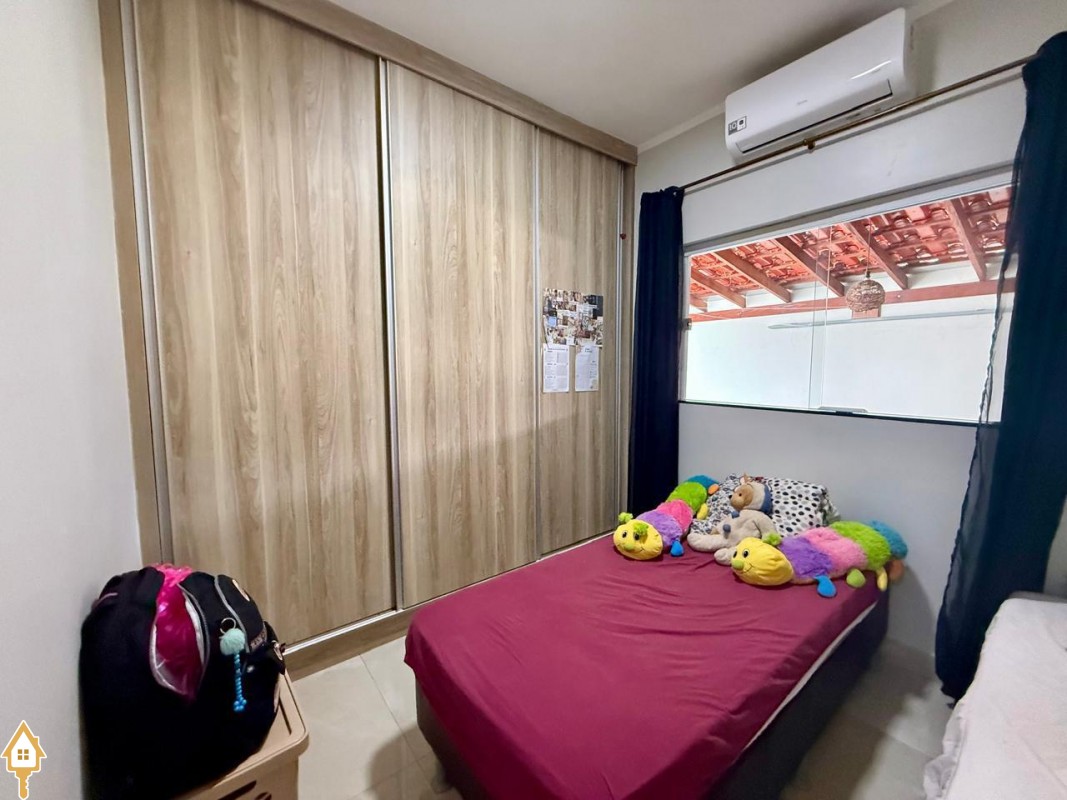 O imóvel é composto por 3 quartos, sendo 1 suíte, com ar-condicionado instalado em dois dos dormitórios, proporcionando mais conforto térmico. A área social conta com sala integrada à cozinha, criando um ambiente amplo e funcional.