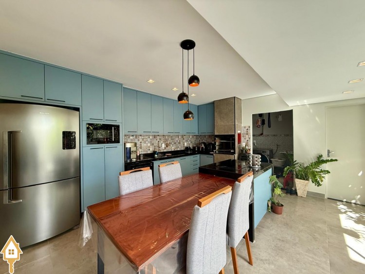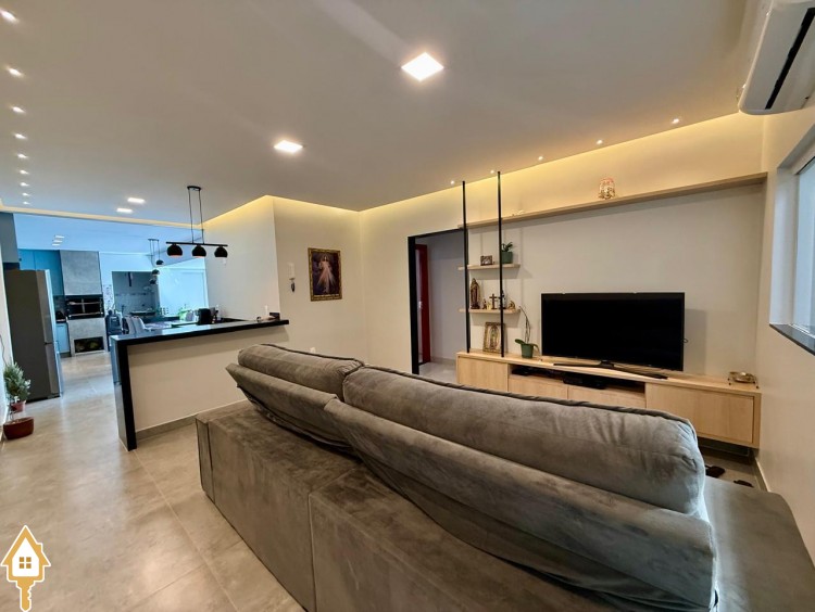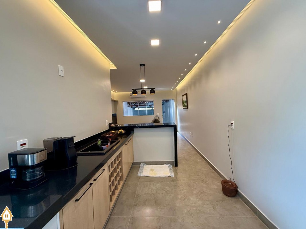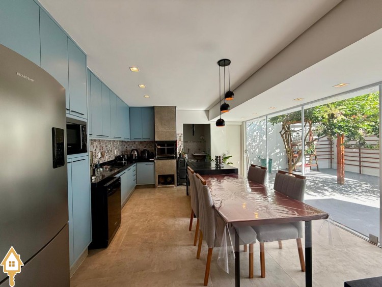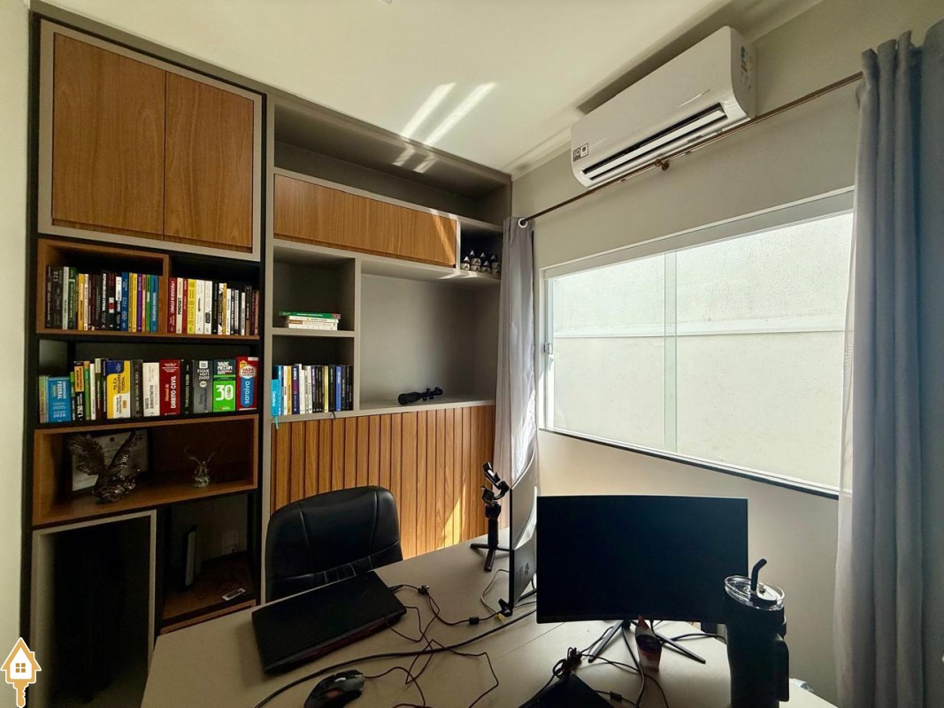 A casa possui também varanda gourmet com churrasqueira, perfeita para momentos de lazer e confraternização. Todos os ambientes contam com marcenaria planejada e iluminação completa, valorizando o design e a praticidade do imóvel.