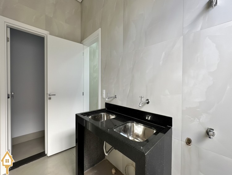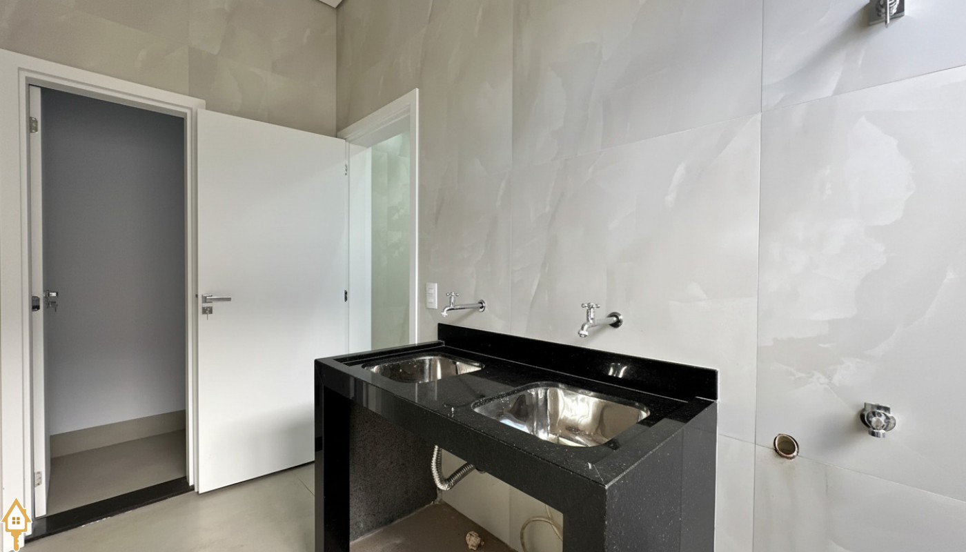 A casa conta também com lavanderia separada, garantindo mais organização, além de despensa, oferecendo espaço extra para armazenamento.