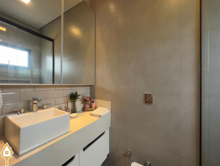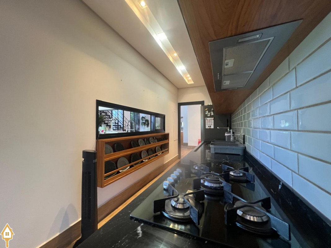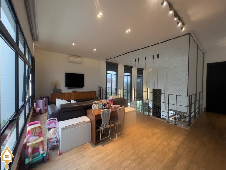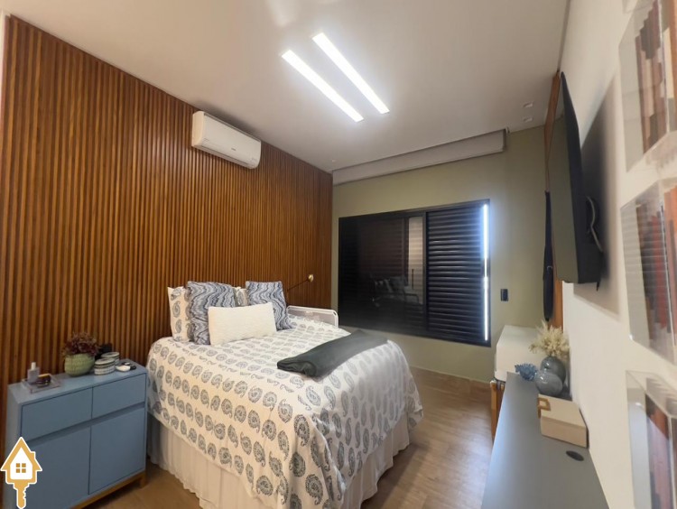 Casa localizada no Condomínio Cyrela em Uberaba, MG. Composta por dois pavimentos, no piso superior três suítes, sendo uma máster com banheira e todas com sistema de aquecimento solar e climatizadas, sala de televisão e lavabo. No piso inferior, sala para três ambientes com pé direito duplo, lavabo, uma suíte reversível, cozinha planejada, despensa, varanda gourmet com churrasqueira, balcão e chopeira, piscina aquecida com gerador de cloro e gerador de ozônio, sauna a vapor, deck em madeira cumaru, ducha, jardim, área de serviço planejada e garagem para quatro veículos. Obs: possui também o sistema de geração própria de energia através de placas fotovoltaicas e elevador.
