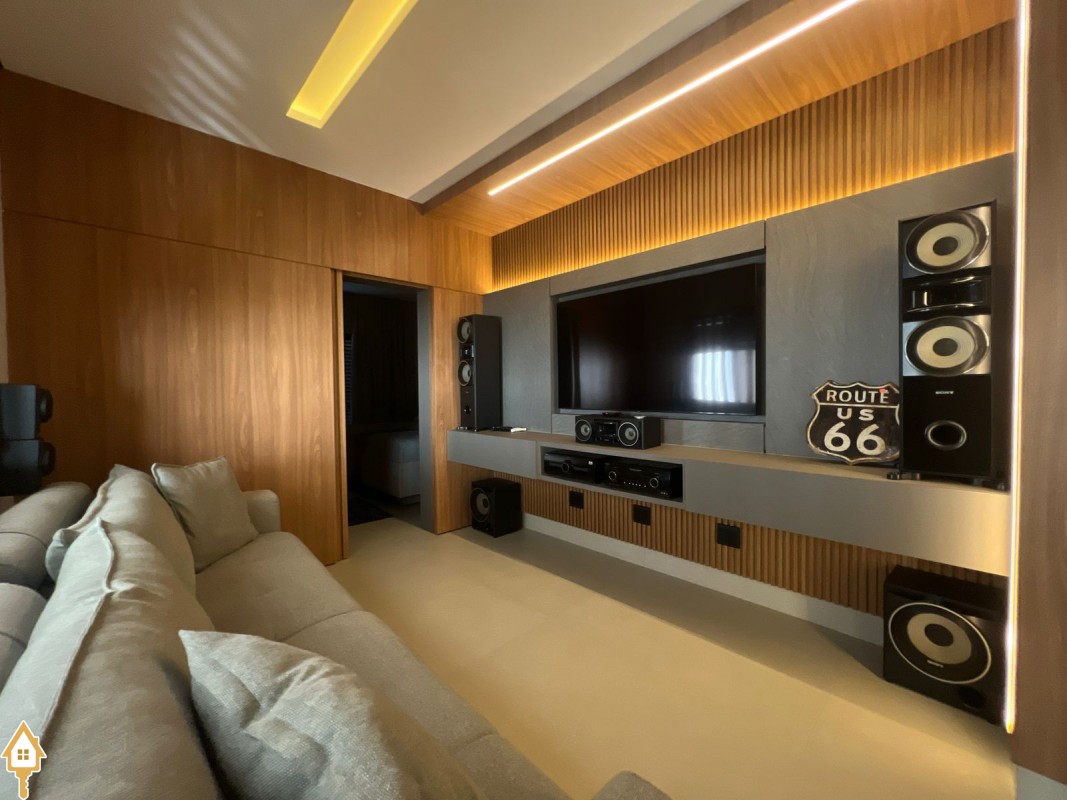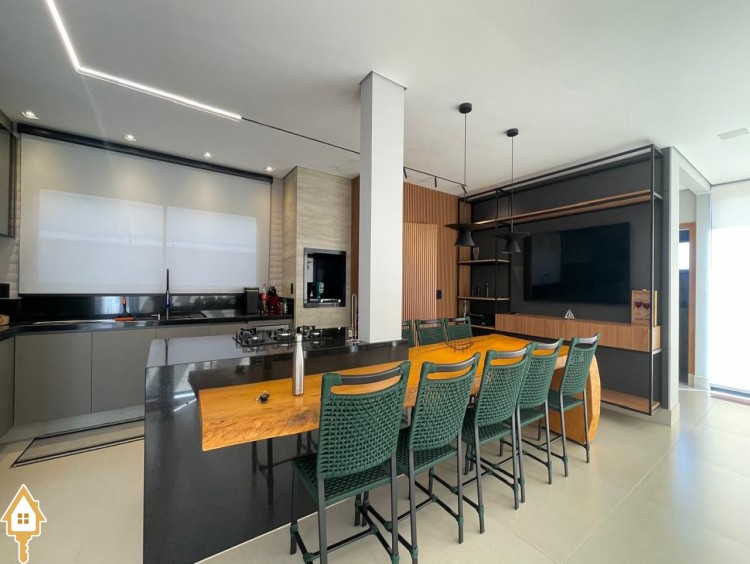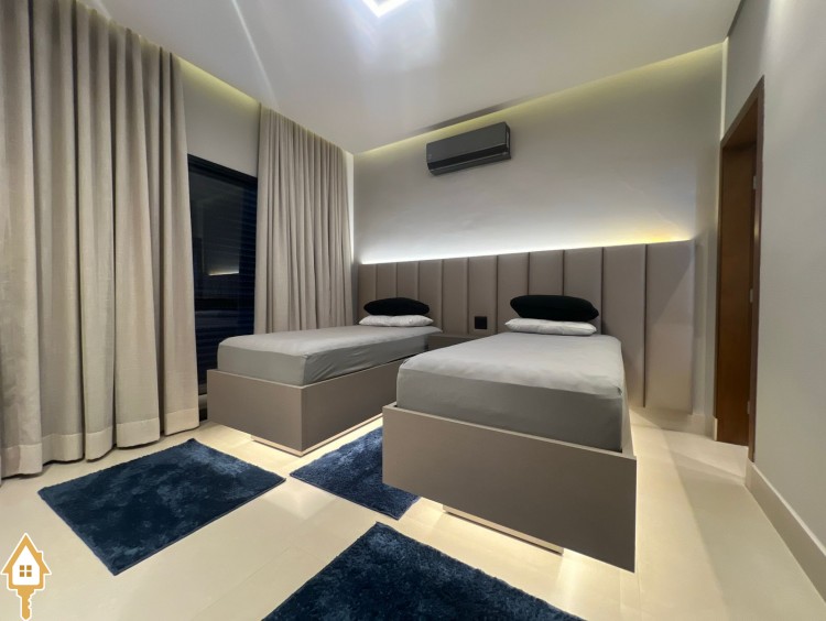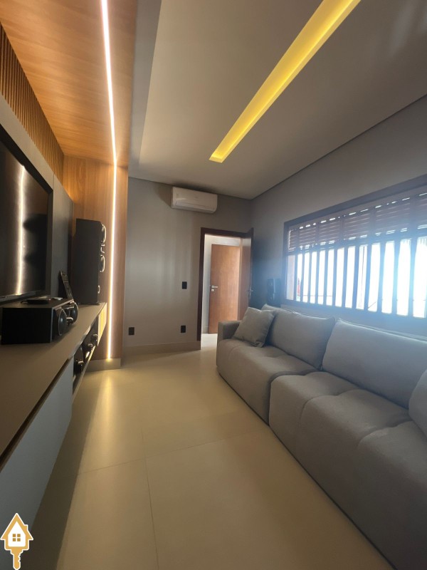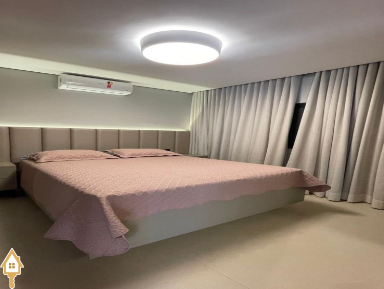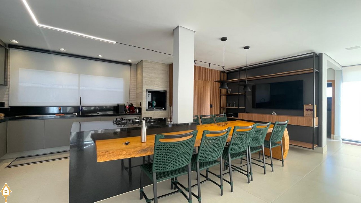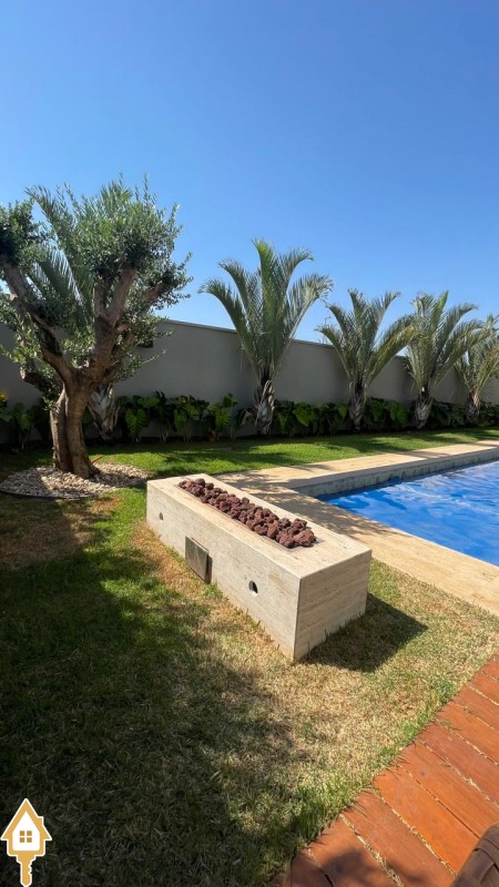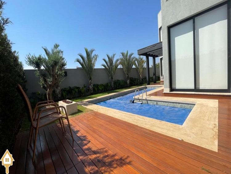 Casa de alto padrão com dois pavimentos, composta por 04 suítes, home cinema, mezanino e amplas salas de estar e jantar. Cozinha completa com espaço gourmet, além de lavabo, despensa e lavanderia.