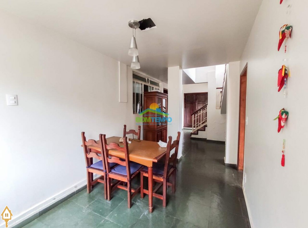 -No piso inferior, o ambiente possui 2 quartos, banheiro social, sala de jantar e cozinha;