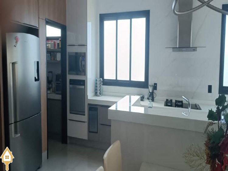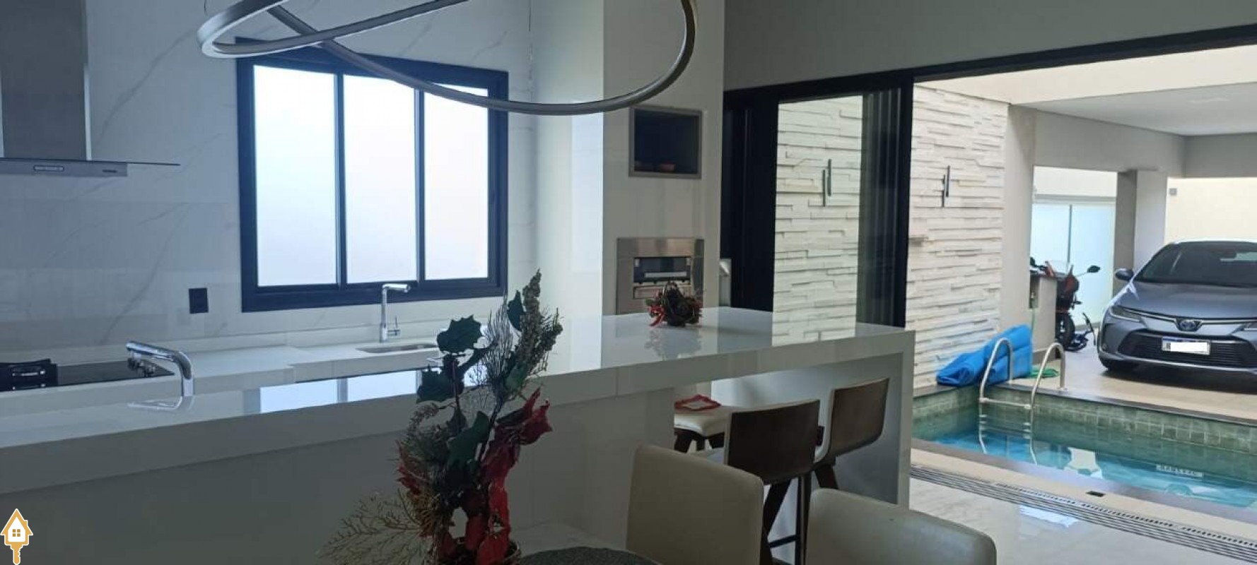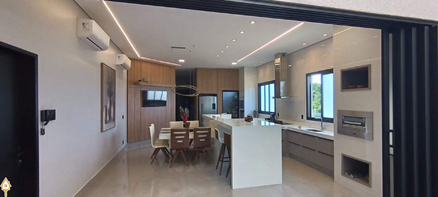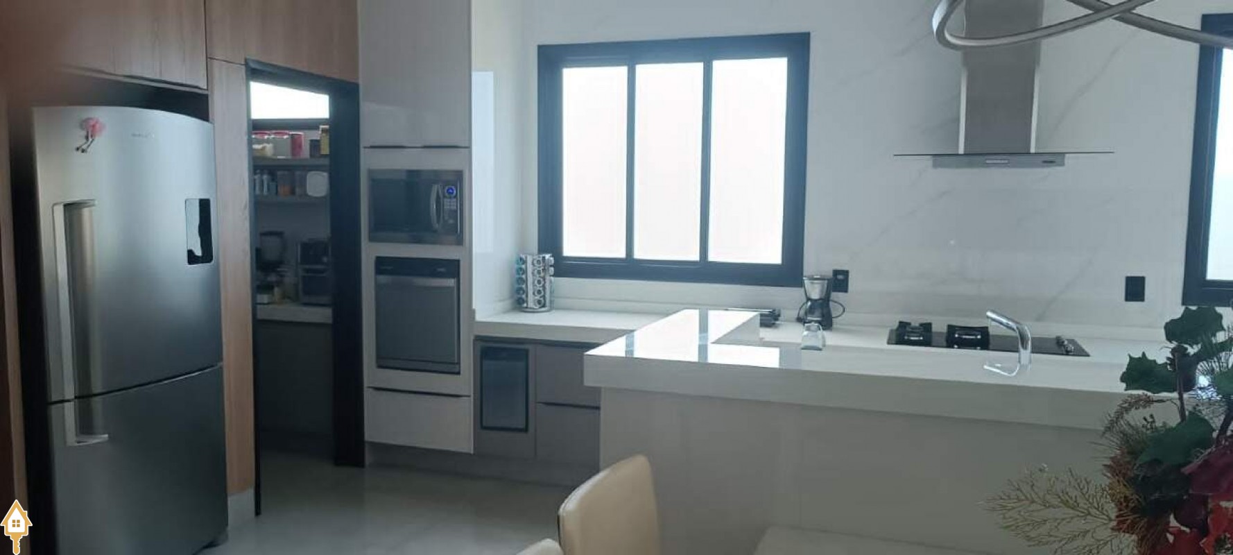 Composta de 2 amplos quartos com suíte máster Canadense luxuosa com closet com bastantes armários, sala de estar, escritório com planejados, sala de TV reversível para outro quarto (com armários e hak), cozinha gourmet integrada no conceito aberto, toda equipada, completa com todos eletrodomésticos fixos de última geração, ilha central, área de lazer integrada com piscina aquecida com iluminação interna e cascata, ampla lavanderia com armários, ar condicionado em todos os ambientes. Valor 2.500.000,00. Casa de 205m² e o Terreno de esquina com 480m². Casa com aquecimento solar com boiler e sistema fotovoltaico, esquadrias em alumínio na cor preta, persianas automatizadas, projeto iluminação de alto padrão e abastecimento para carro elétrico. Casa com vista privilegiada para o verde sem vizinhos de frente.