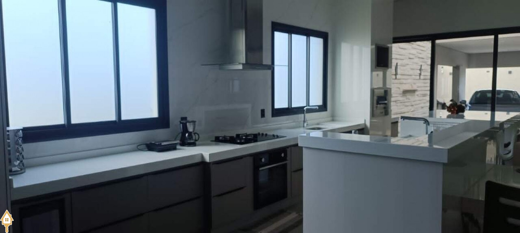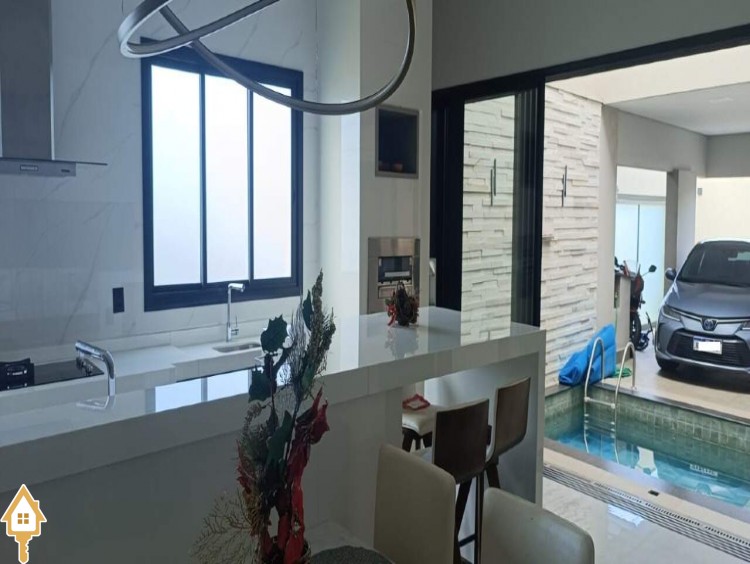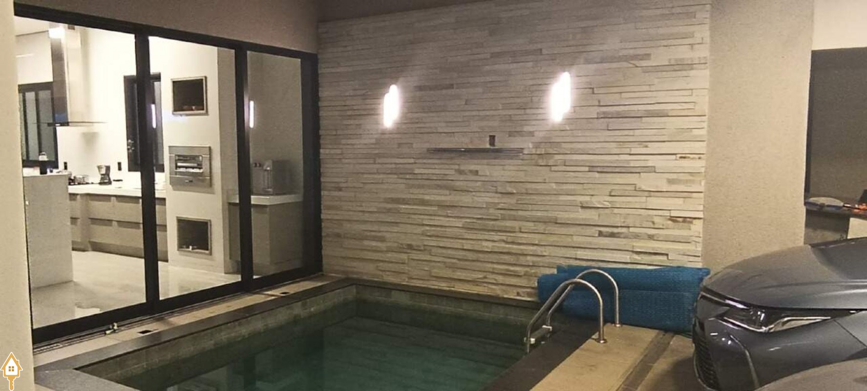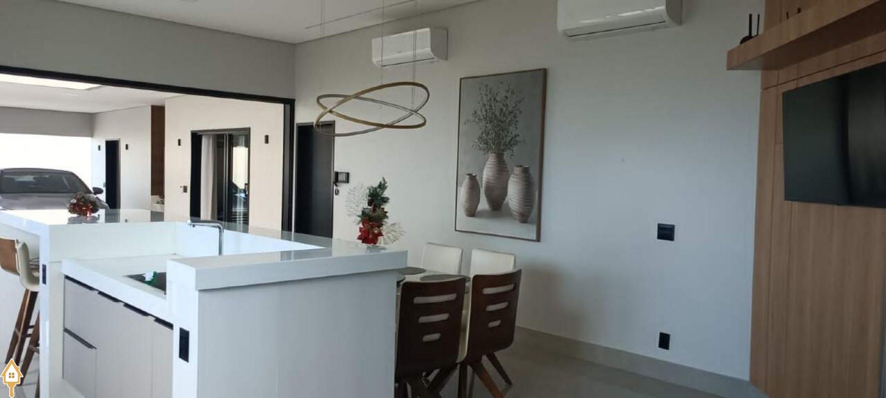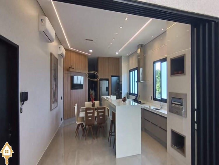 Composta de 2 amplos quartos com suíte máster Canadense luxuosa com closet com bastantes armários, sala de estar, escritório com planejados, sala de TV reversível para outro quarto (com armários e hak), cozinha gourmet integrada no conceito aberto, toda equipada, completa com todos eletrodomésticos fixos de última geração, ilha central, área de lazer integrada com piscina aquecida com iluminação interna e cascata, ampla lavanderia com armários, ar condicionado em todos os ambientes. Valor 2.500.000,00. Casa de 205m² e o Terreno de esquina com 480m². Casa com aquecimento solar com boiler e sistema fotovoltaico, esquadrias em alumínio na cor preta, persianas automatizadas, projeto iluminação de alto padrão e abastecimento para carro elétrico. Casa com vista privilegiada para o verde sem vizinhos de frente.