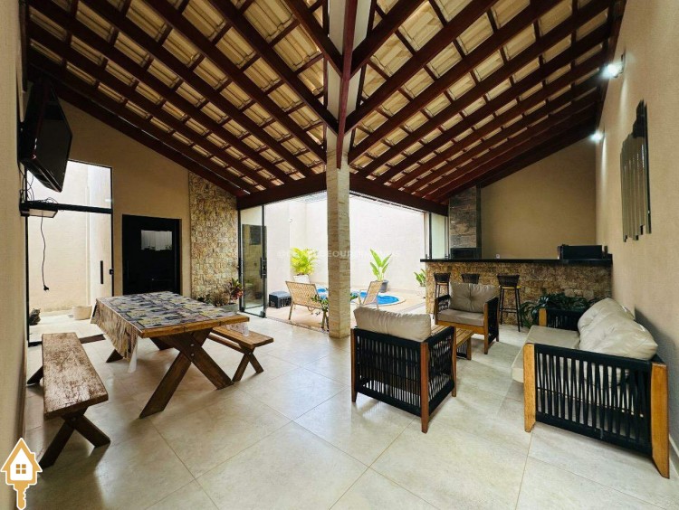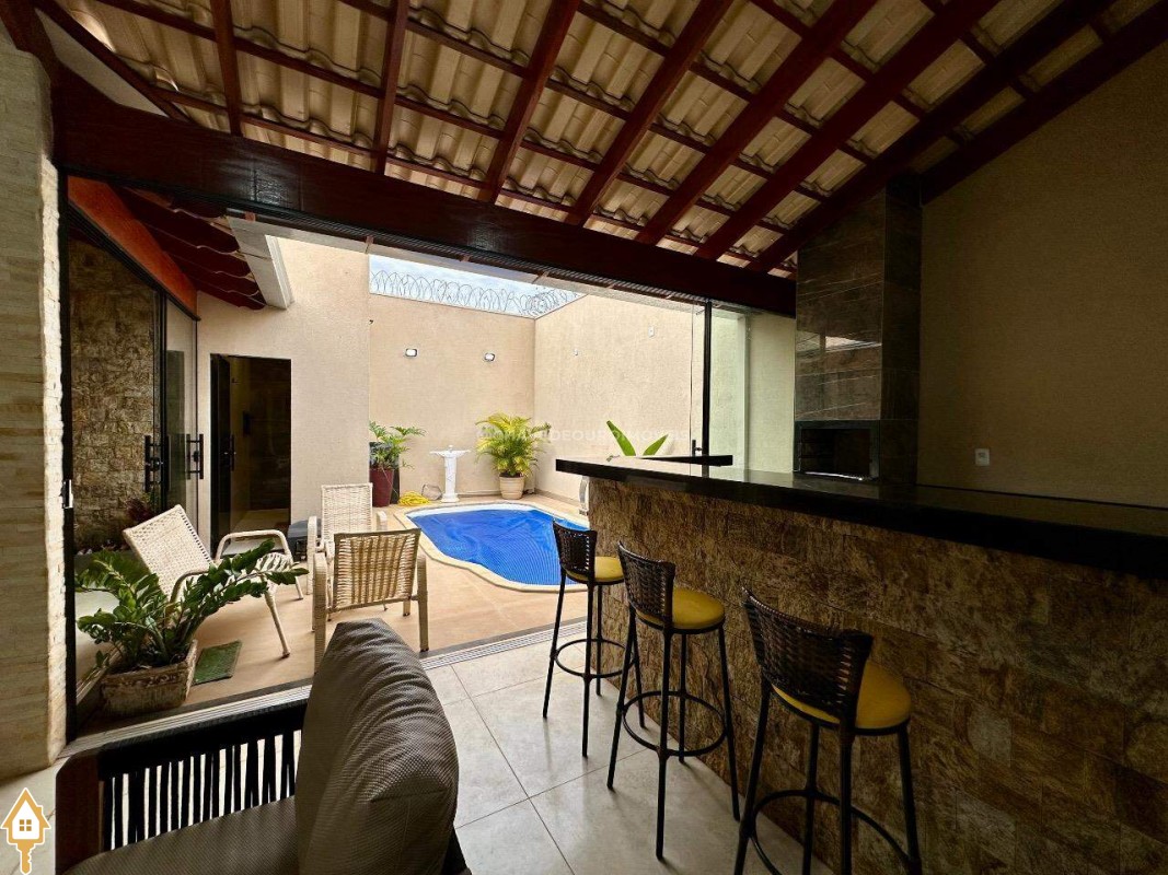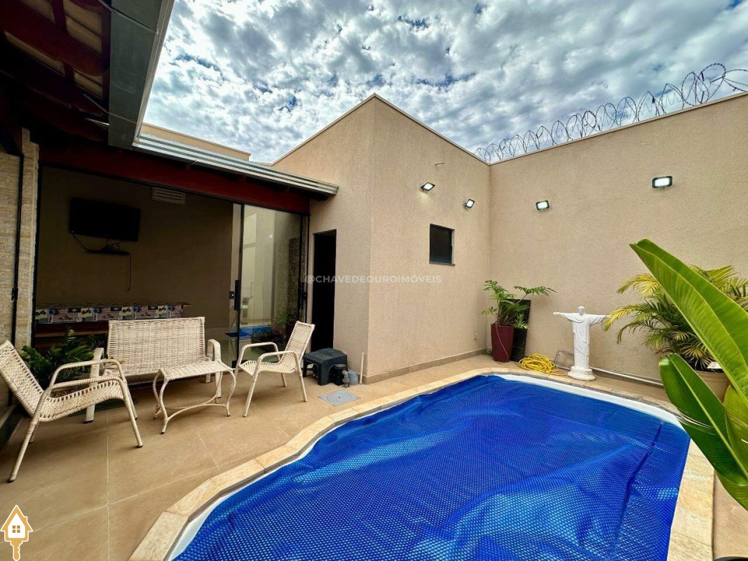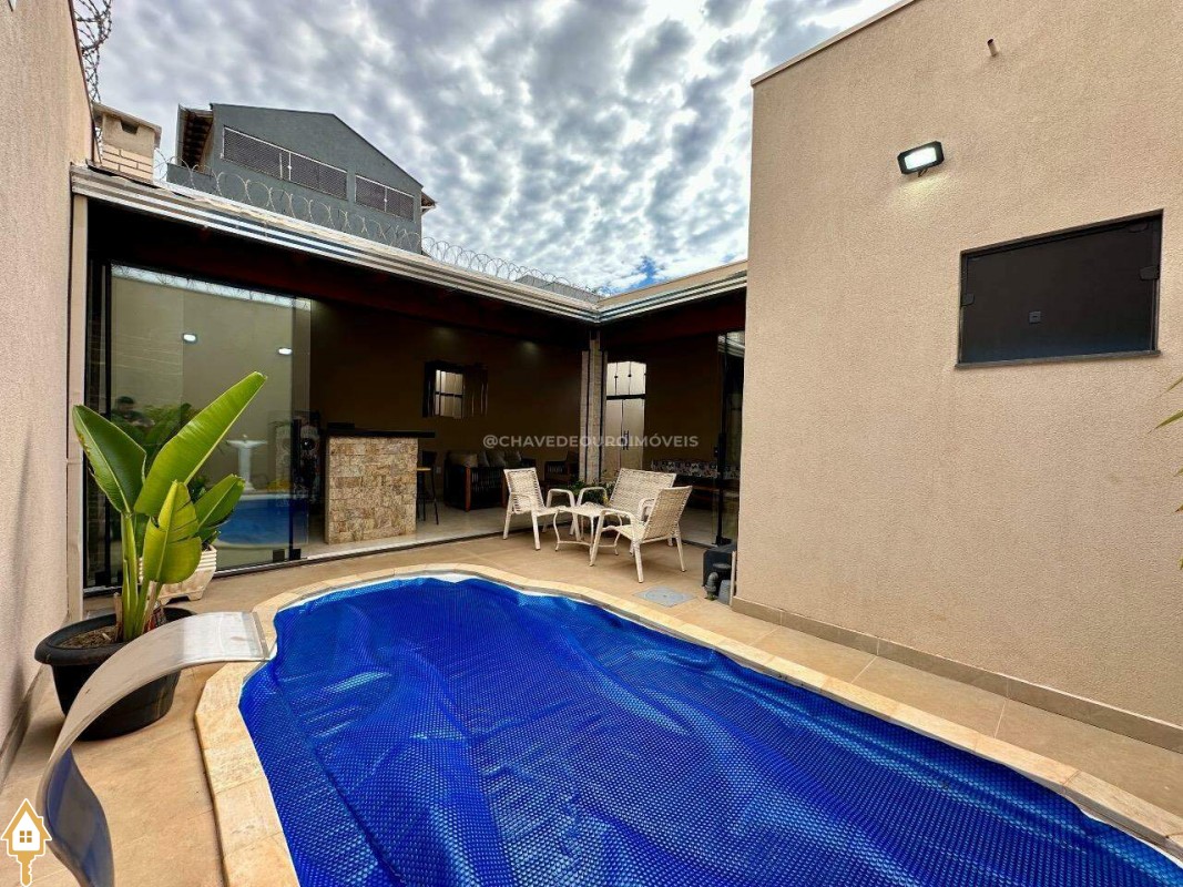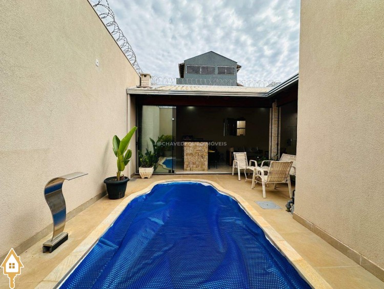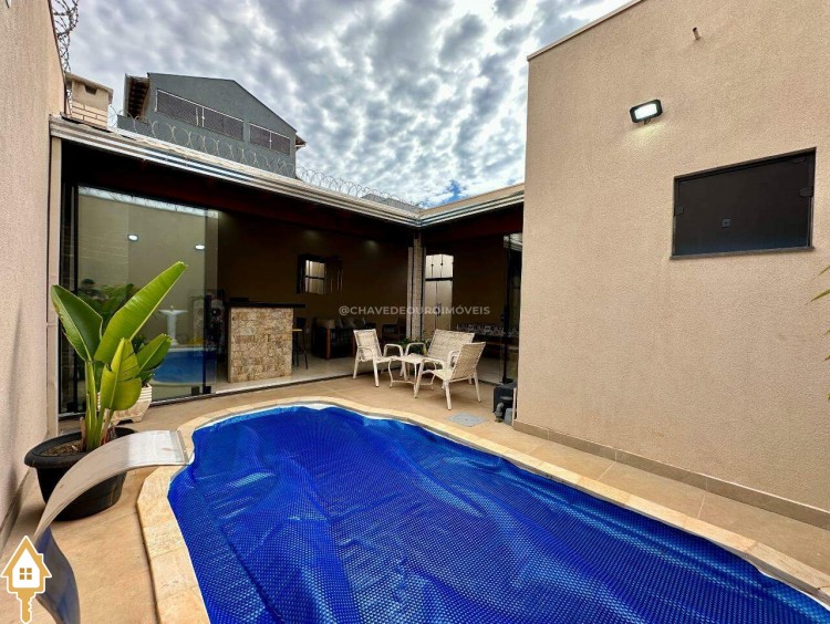 Casa localizada no bairro Estados Unidos em Uberaba, MG. Composta de três quartos, sendo uma suíte, sala de estar, sala de jantar, cozinha, banheiro social, área de serviço, varanda gourmet com churrasqueira, piscina, banheiro, despensa e garagem coberta para dois veículos.