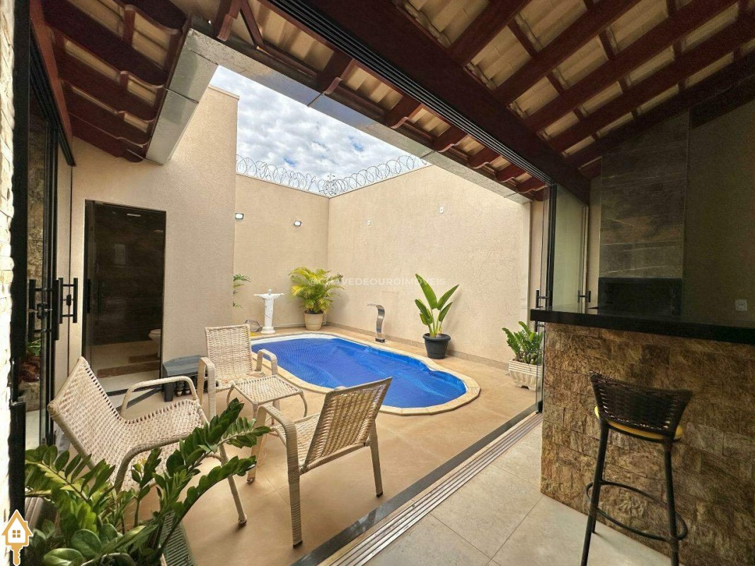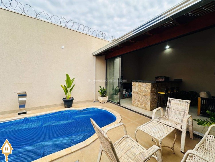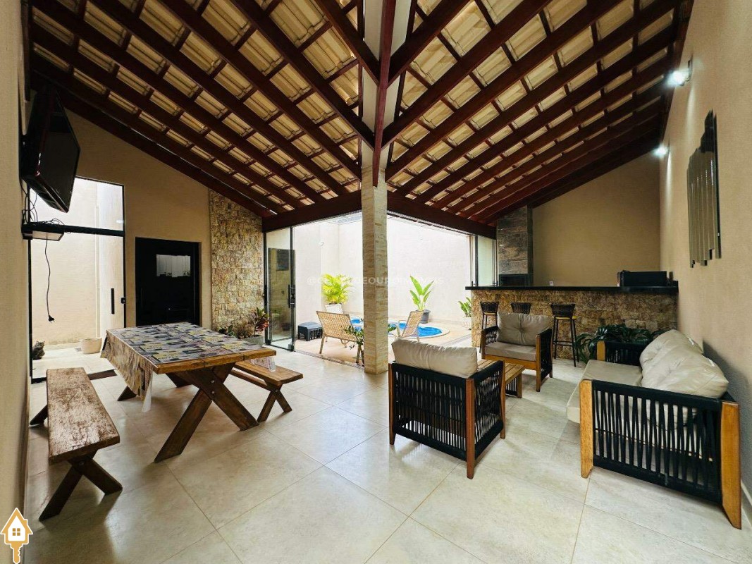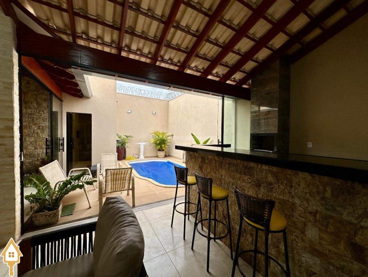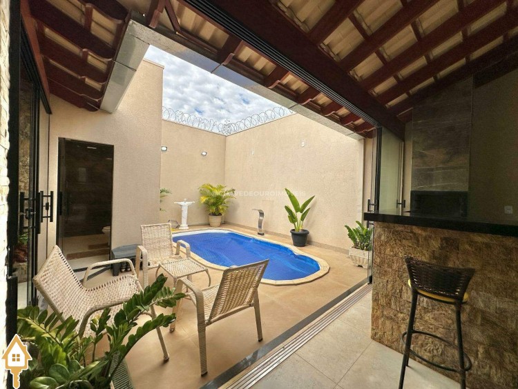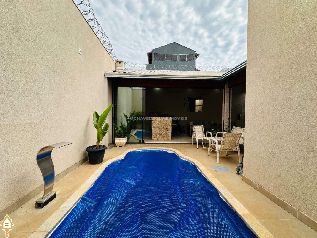 Casa localizada no bairro Estados Unidos em Uberaba, MG. Composta de três quartos, sendo uma suíte, sala de estar, sala de jantar, cozinha, banheiro social, área de serviço, varanda gourmet com churrasqueira, piscina, banheiro, despensa e garagem coberta para dois veículos.