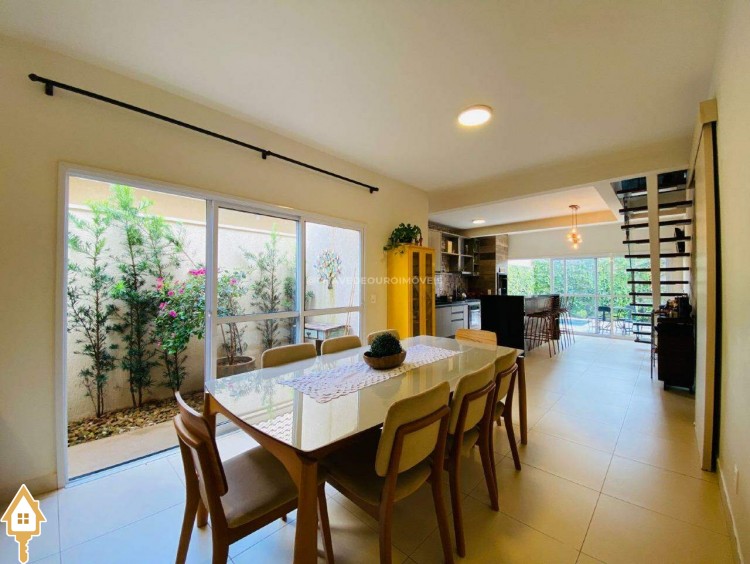 Casa em condomínio fechado à venda em Uberaba de 04 suítes sendo uma com closet, sala para dois ambientes, cozinha integrada com varanda gourmet com churrasqueira, despensa, piscina aquecida, lavabo externo, lavanderia e garagem para 2 carros.