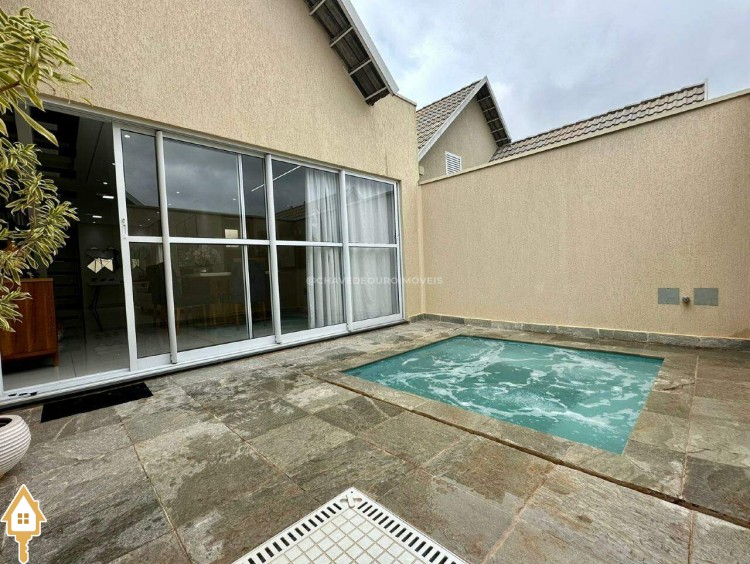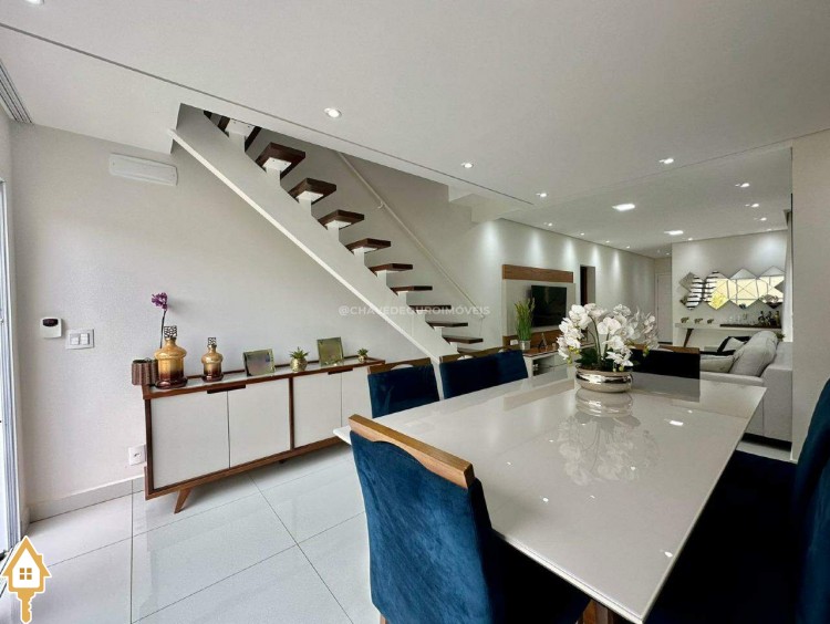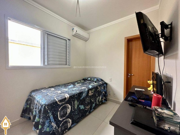 Casa localizada no Condomínio Ayat Club Residence em Uberaba, MG. Composta de três suítes, sendo uma com closet, todas com ar condicionado e armários planejados. Dispõe de sala para dois ambientes, cozinha planejada, espaço gourmet com churrasqueira e lavabo, lavanderia e garagem coberta para dois veículos.