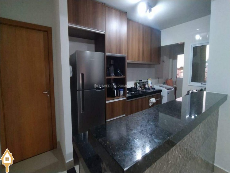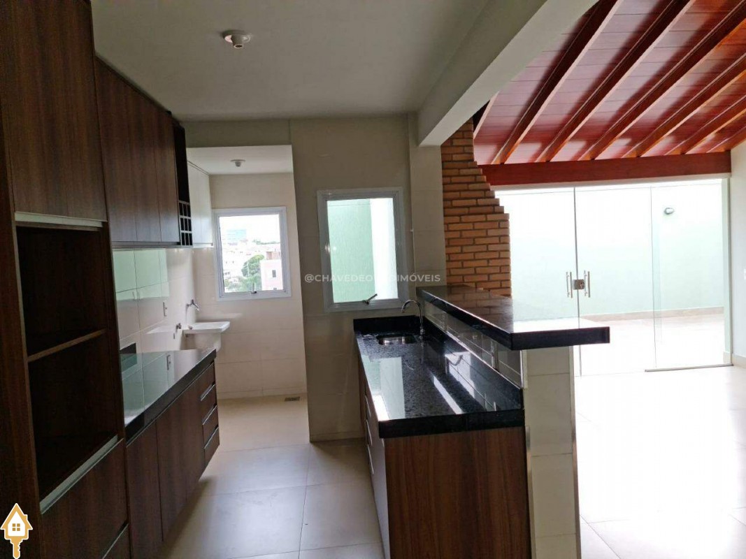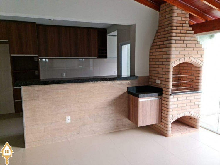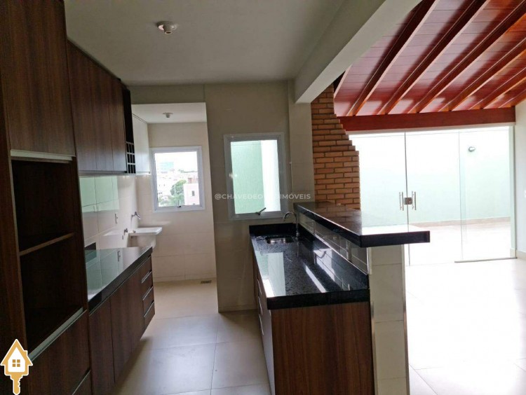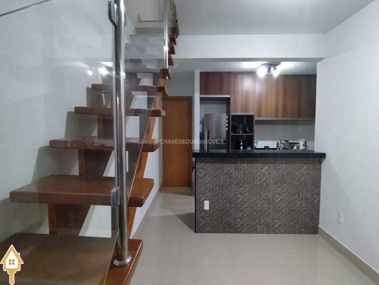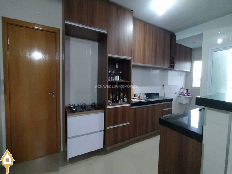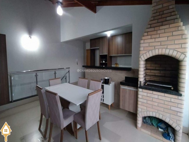 No segundo piso, há uma suíte com varanda, um banheiro, uma sala, uma cozinha, e uma varanda gourmet completa e integrada. O imóvel também possui garagem para dois carros.