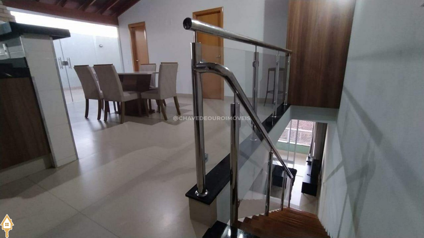 Duplex à venda na cidade de Uberaba, no bairro Santa Maria, a poucos metros da Universidade Uniube. No primeiro andar, a casa conta com 03 quartos, sendo uma suíte, uma sala para dois ambientes com varanda, cozinha, e banheiro social.