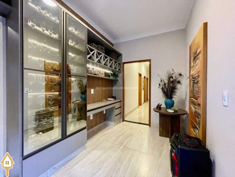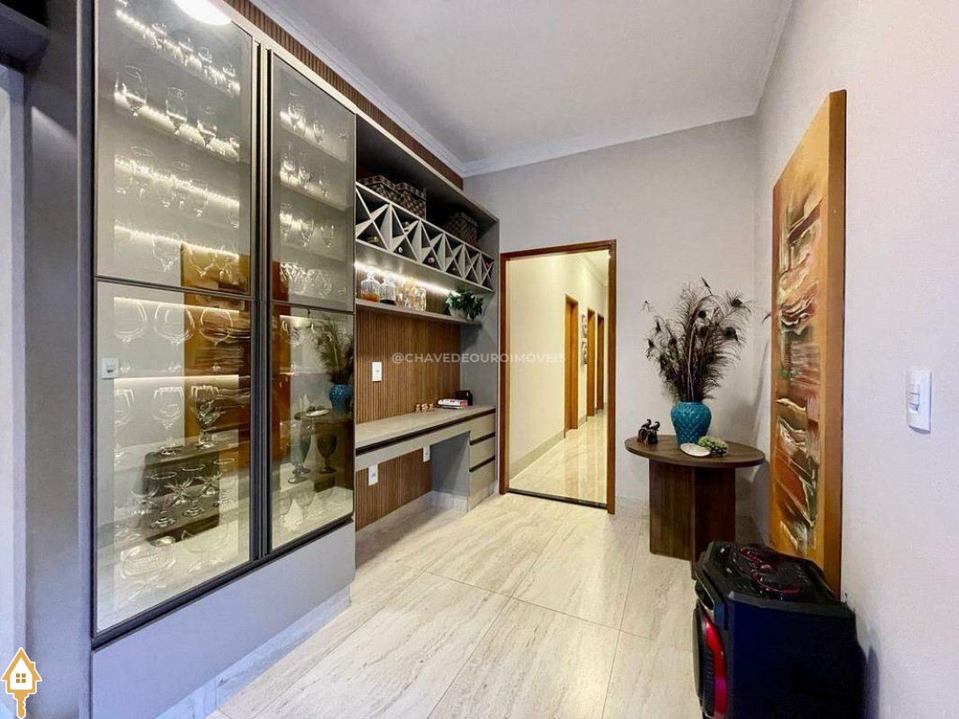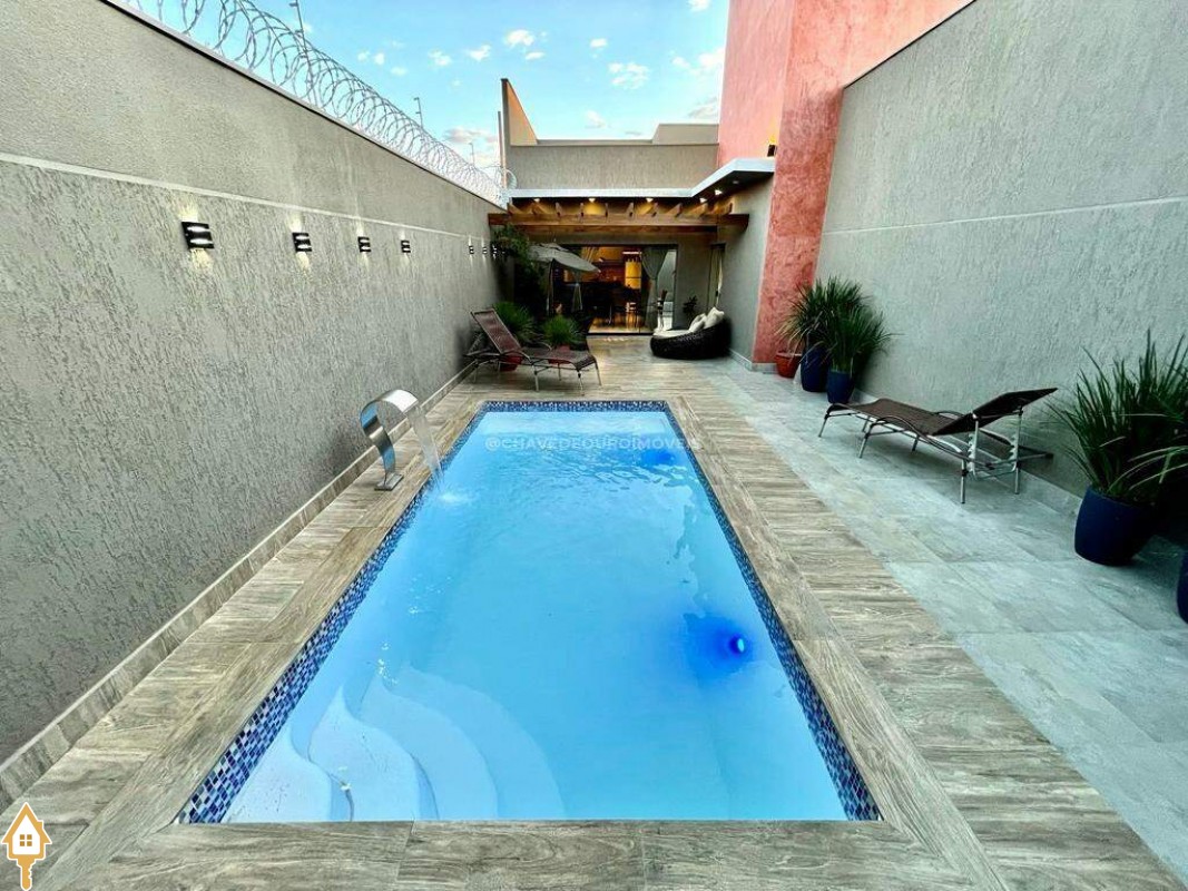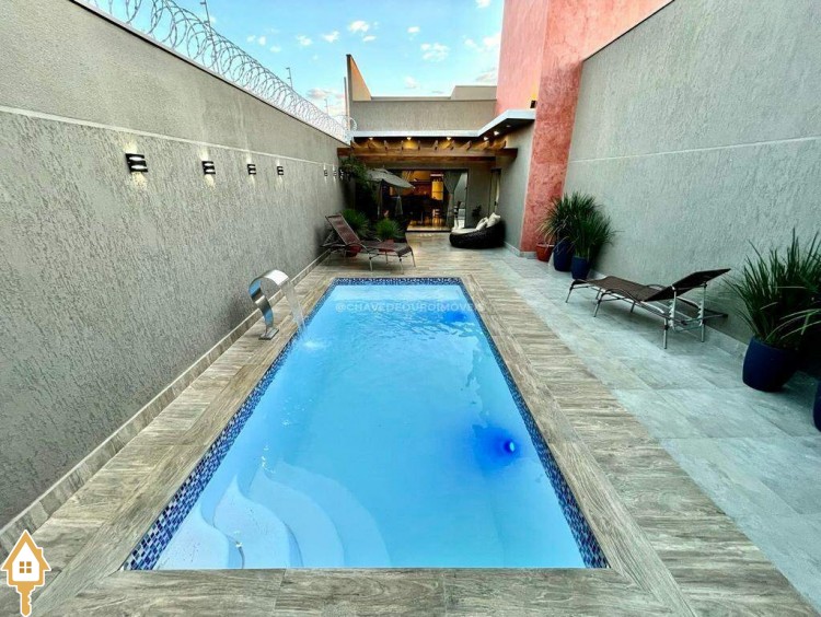 Casa localizada no bairro Jardim do Lago em Uberaba, MG. Composta de três quartos, sendo uma suíte master com closet. Dispõe de sala para dois ambientes com pé-direito alto, lavabo, cozinha, área de serviço, área gourmet com churrasqueira a carvão e pergolado, piscina com cascata e garagem para quatro veículos. ID IMOVIEW: 5625