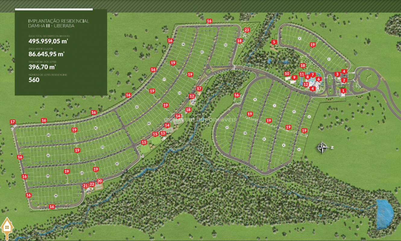 Lote a venda no Condomínio Damha III, Uberaba/MG. Possui 393,60 m², topografia preparada para construção. ID IMOVIEW: 6053