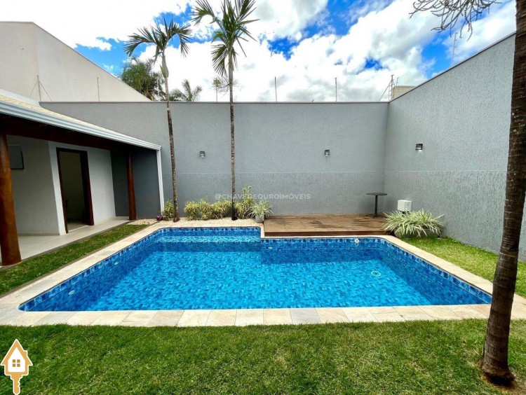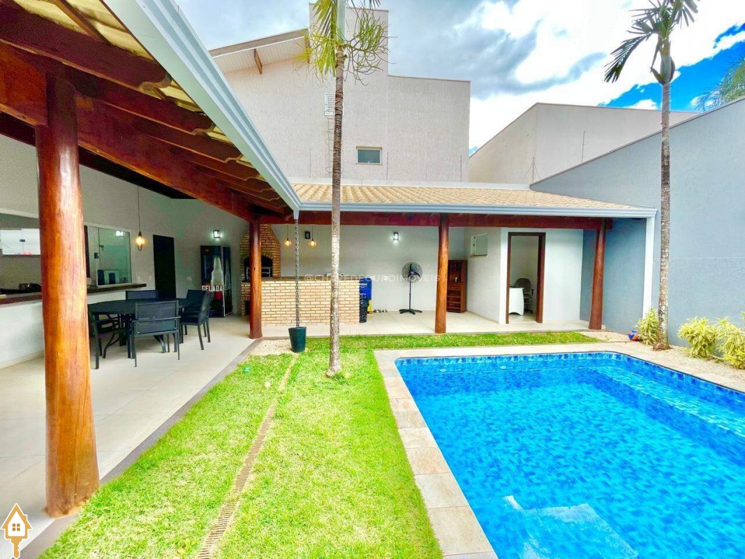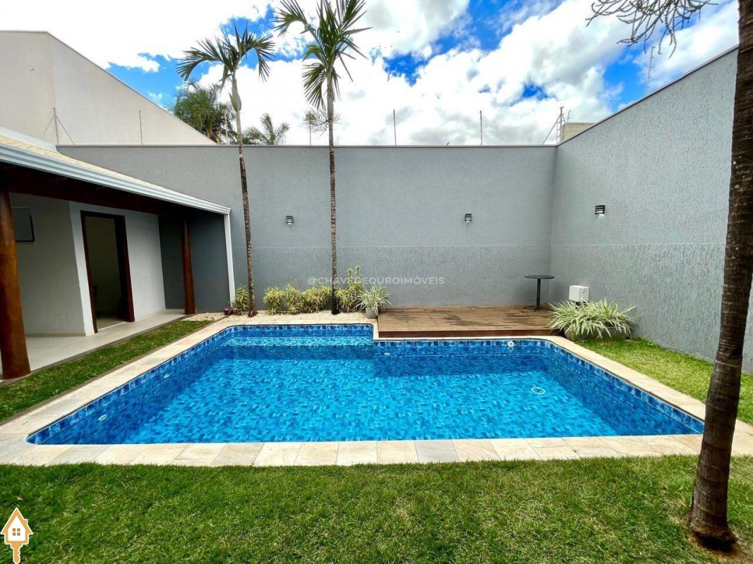 Casa localizada no bairro Jardim do Lago em Uberaba, MG. Composta por três suítes com sacada, sendo a máster com closet. Dispõe de sala para dois ambientes, cozinha planejada, escritório, lavabo, área gourmet com churrasqueira, e móveis planejados, piscina aquecida, claraboia e pé-direito. ID IMOVIEW: 5659