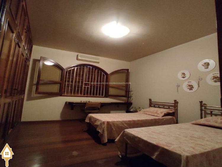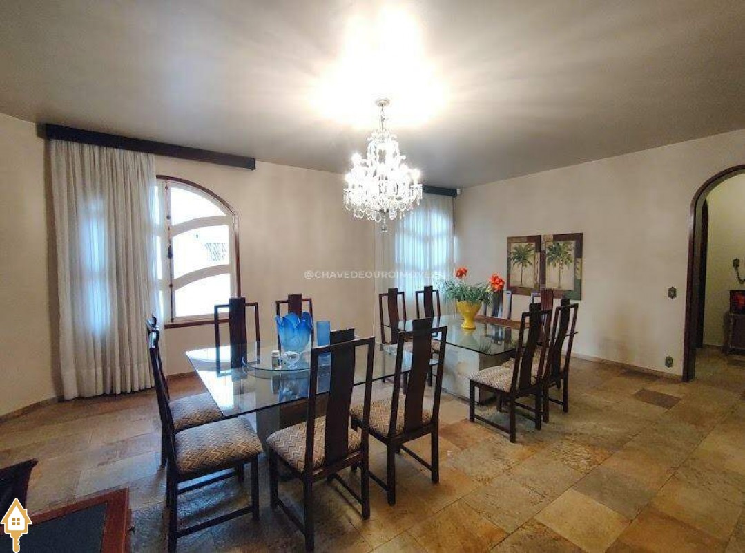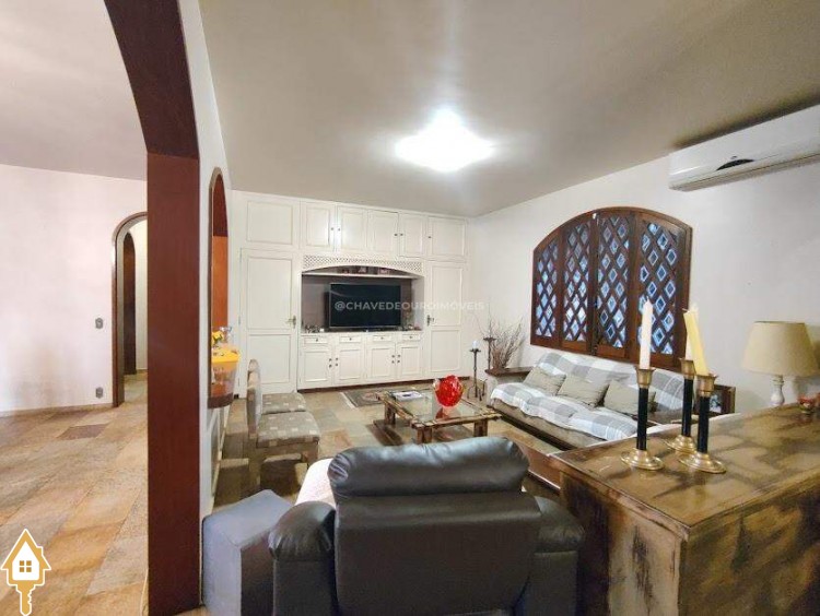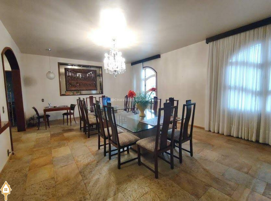 Casa localizada no bairro Mercês em Uberaba, MG. Composta de quatro quartos, sendo duas suítes, uma suíte master com closet e hidromassagem. Dispõe de hall de entrada, escritório, sala de estar, TV e jantar, cozinha planejada, copa e despensa. Área externa com varanda, piscina, ducha, banheiro externo, bar, sala de jogos e sauna. Conta ainda com lavanderia equipada, quarto de despejo e estacionamento coberto para até seis veículos.