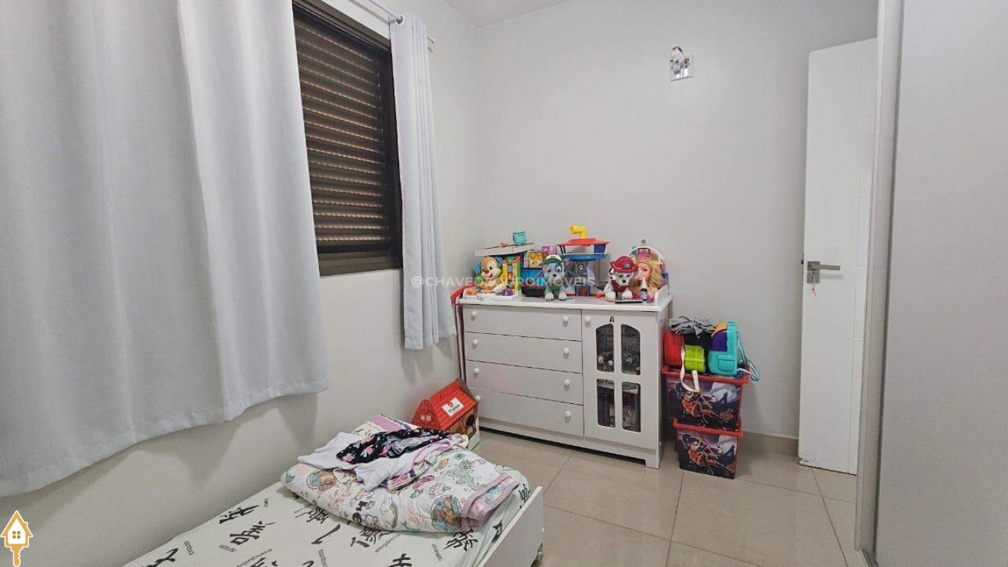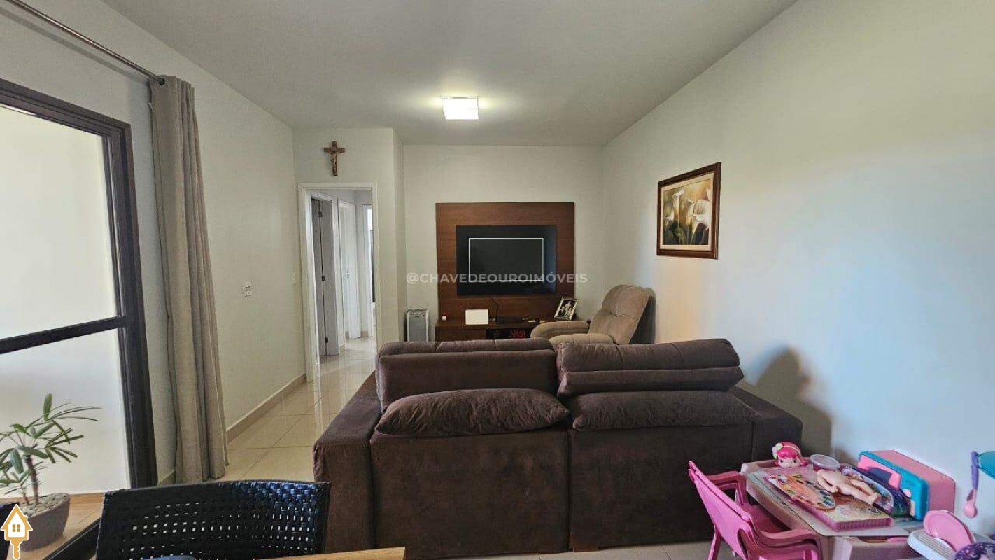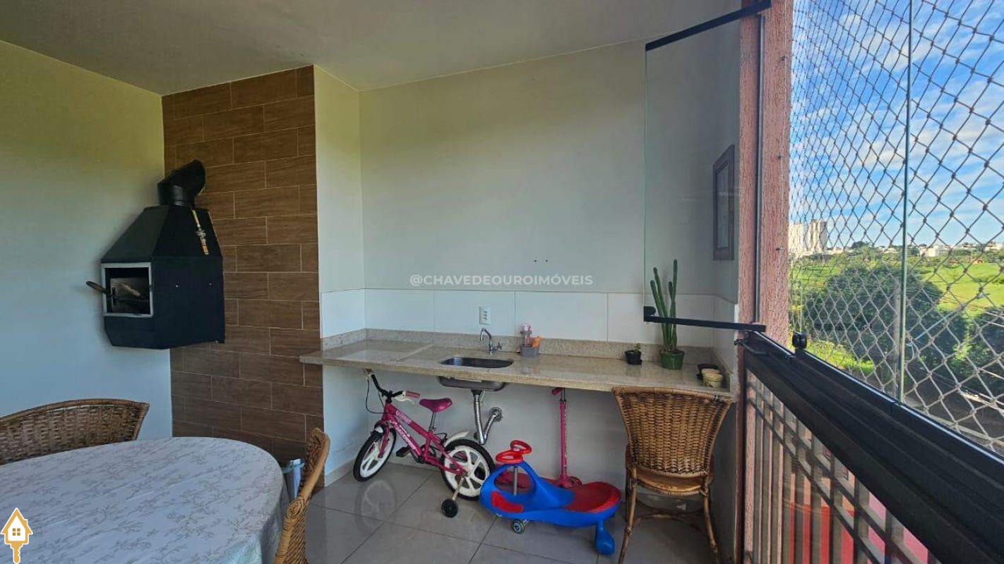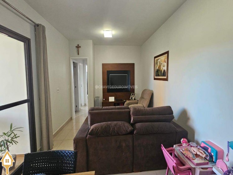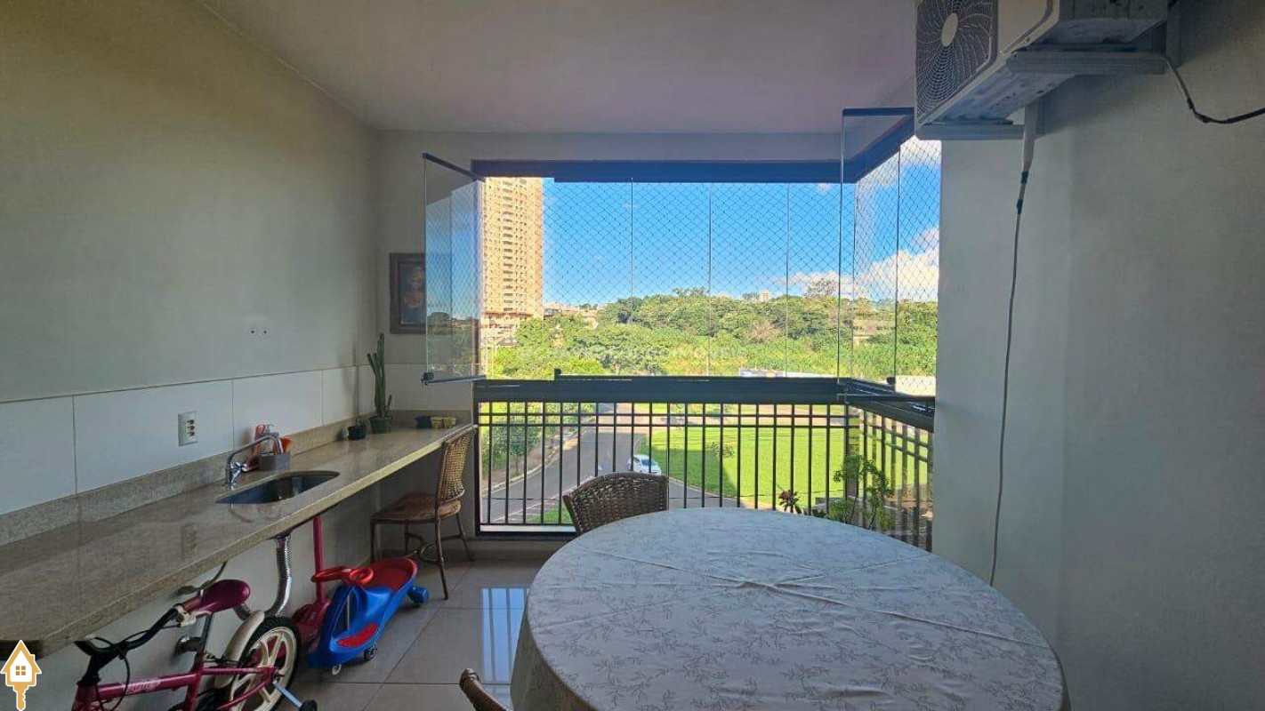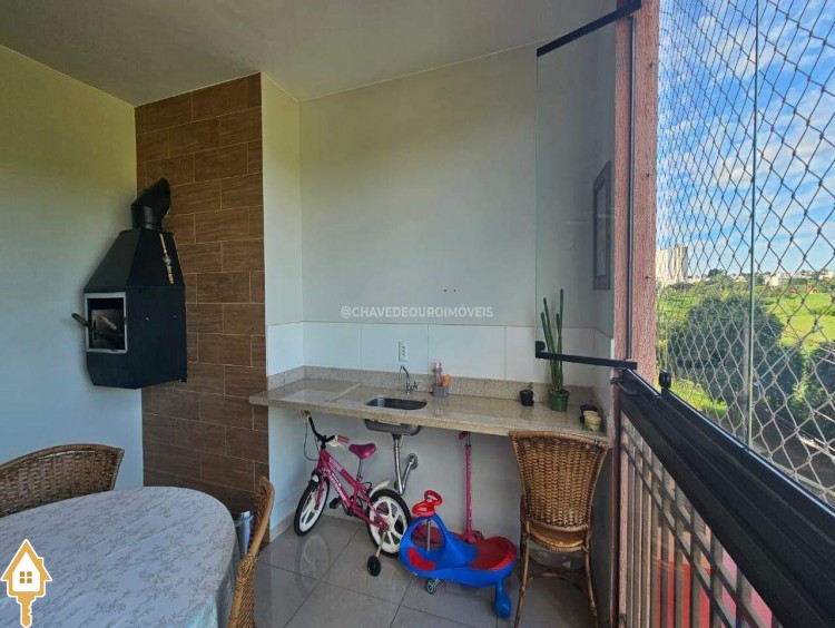Apartamento localizado no bairro Parque do Mirante em Uberaba, MG. Composto de três quartos, sendo uma suíte, banheiro social, sala, sacada com churrasqueira, cozinha com armários planejados, área de serviços com banheiro e garagem para dois carros.