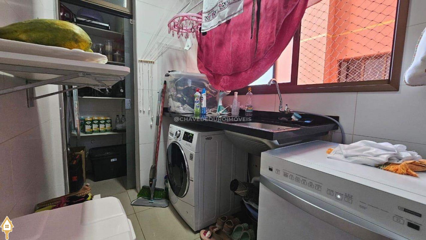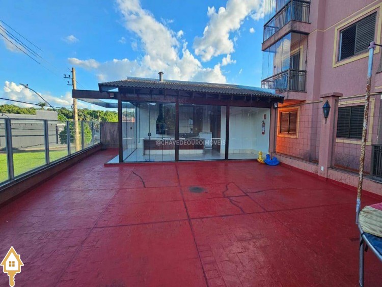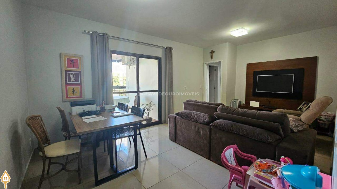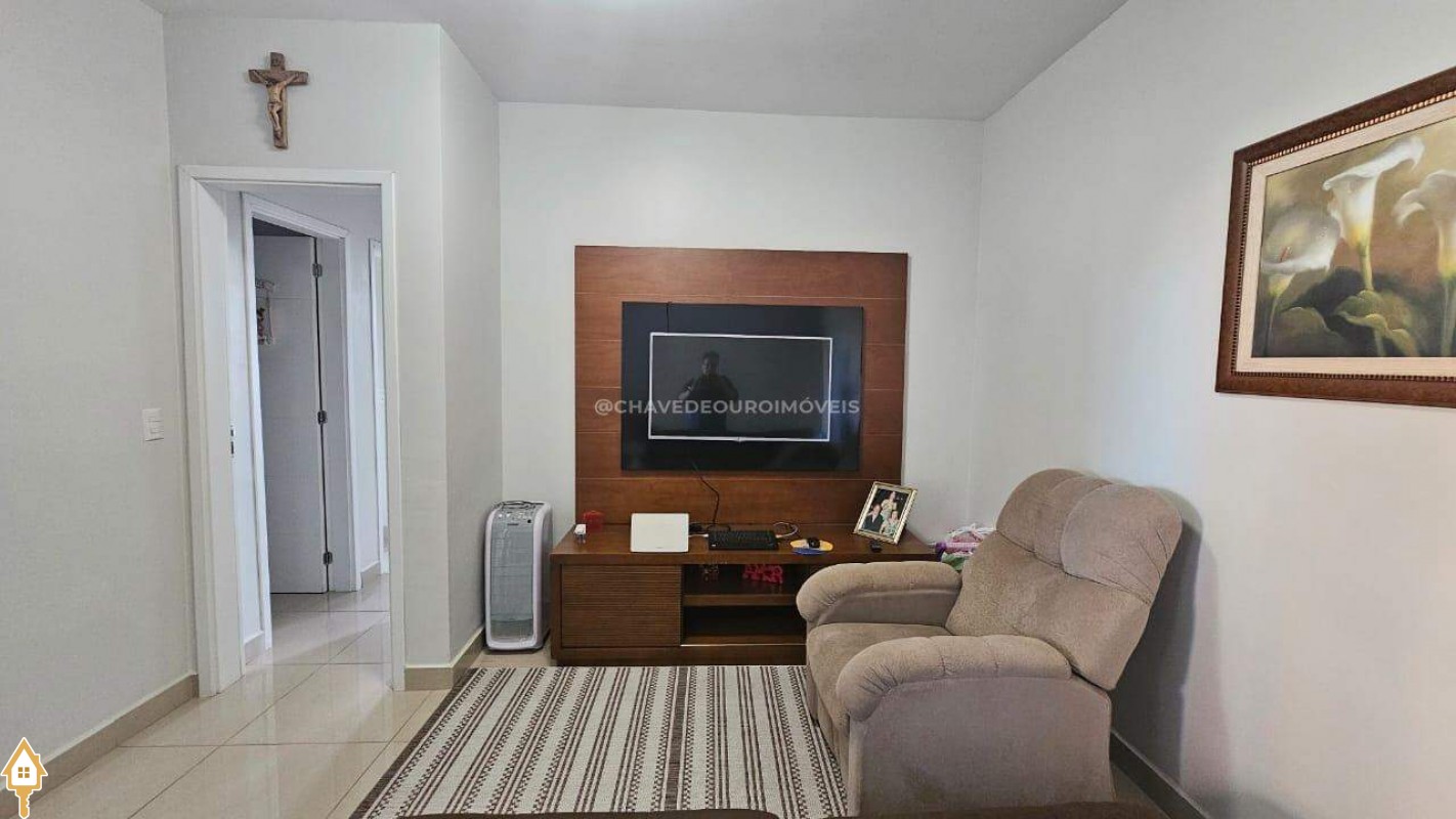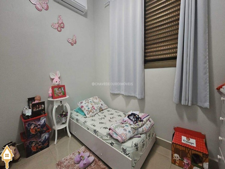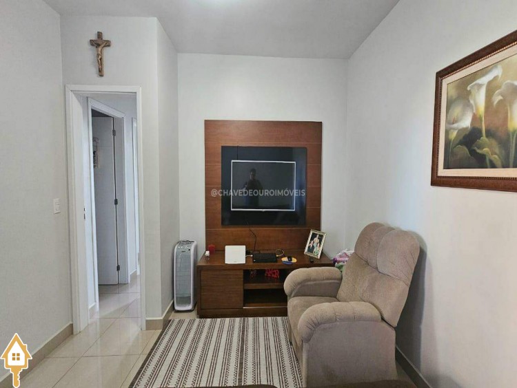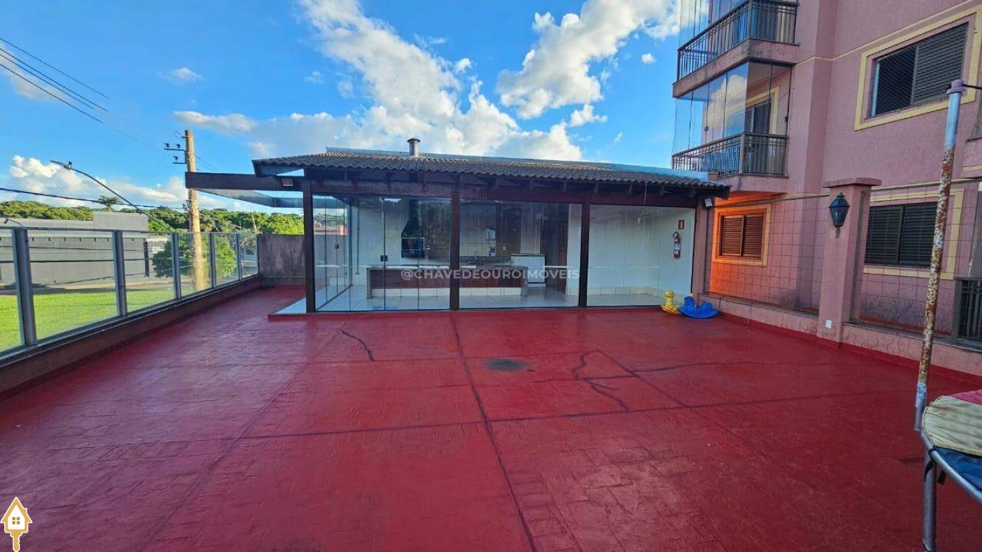 Apartamento localizado no bairro Parque do Mirante em Uberaba, MG. Composto de três quartos, sendo uma suíte, banheiro social, sala, sacada com churrasqueira, cozinha com armários planejados, área de serviços com banheiro e garagem para dois carros.