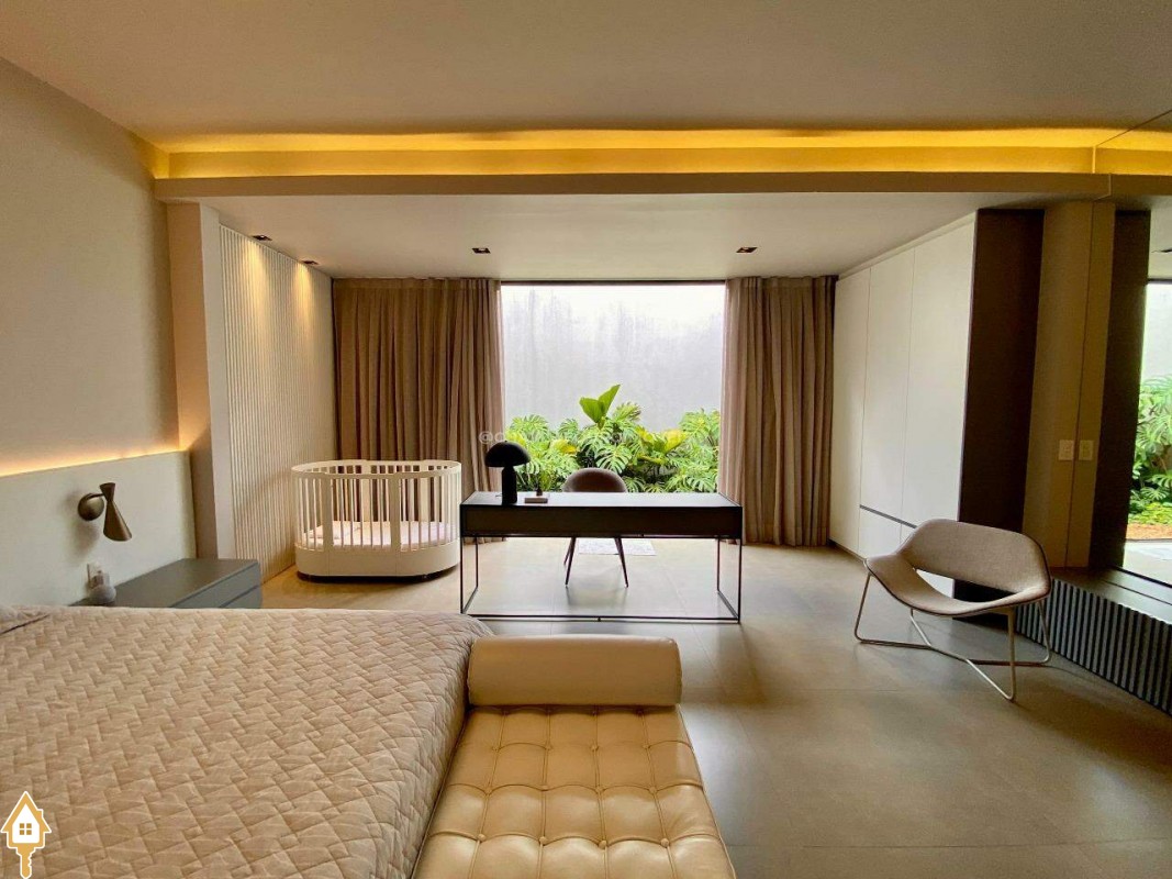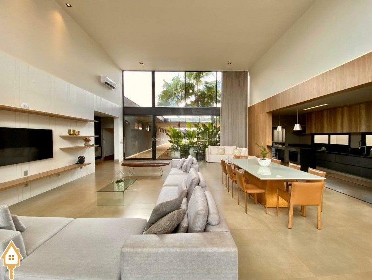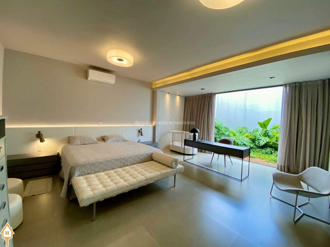 Casa à venda no condomínio Mario Franco, com 1.880 m² de terreno e 778 m² de área construída, projeto arquitetônico de Paulo Trajano. A residência possui 4 suítes internas, um escritório, lavabo, sala de estar/jantar, cozinha, lavanderia, varanda gourmet e piscina.