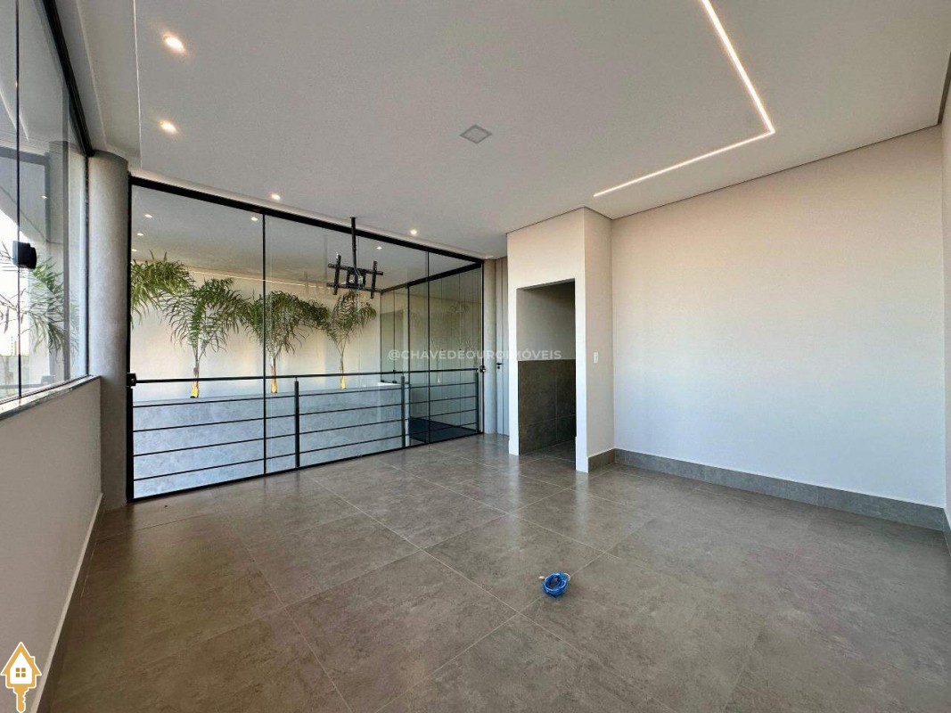 Casa à venda em Uberaba, MG, com ótima localização. Este imóvel dispõe de três quartos, sendo uma suíte, um elegante banheiro social, uma sala de estar/TV com pé direito duplo que proporciona uma sensação de amplitude e sofisticação, uma cozinha integrada e um lavabo.