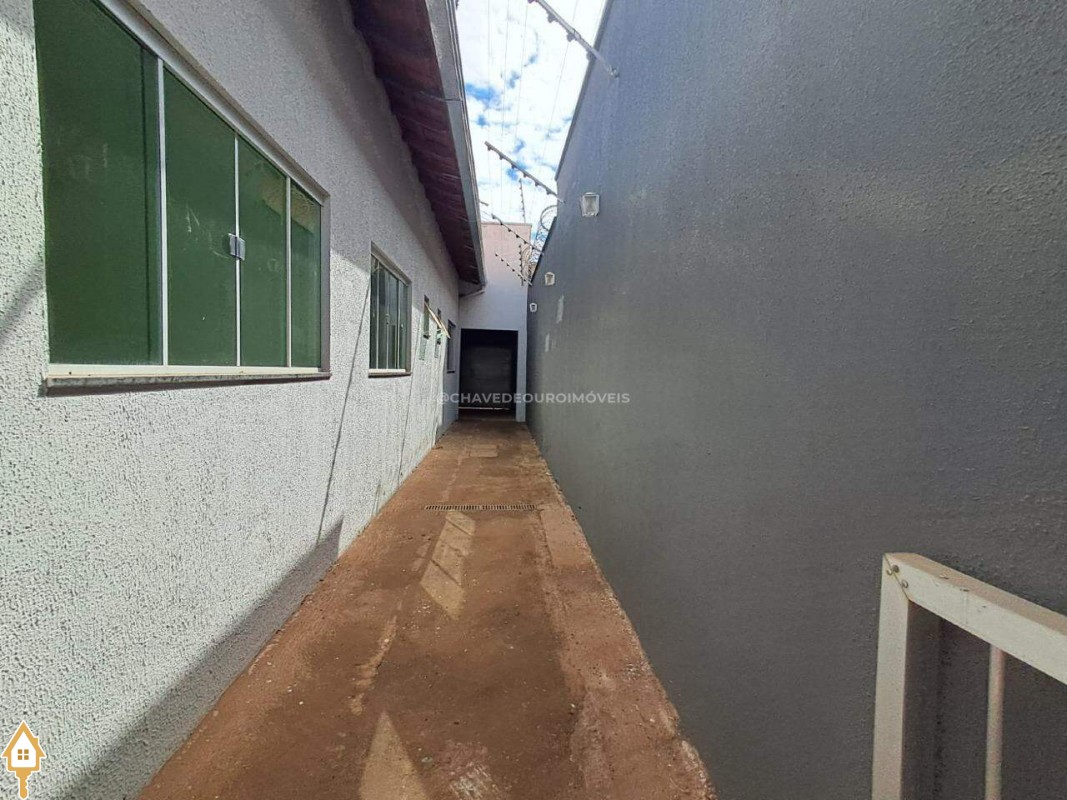 Casa localizada no bairro Filinha Mendes em Uberaba, MG. Composta de três quartos, sendo uma suíte, banheiro social, sala integrada com cozinha, varanda gourmet com churrasqueira, área de serviço com tanque de pedra e cuba de alumínio, armários planejados em dois quartos e nos banheiros e garagem para dois carros