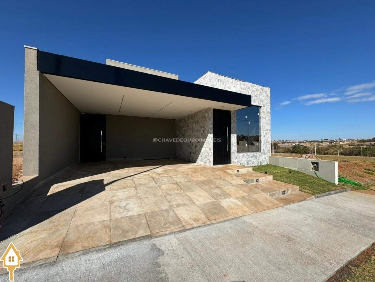 Casa no condomínio Residencial Parque dos Buritis II, 127 m² de área construída e 200 m² de terreno, com 03 quartos, sendo um suíte, banheiro social, sala de estar e jantar com pé direito duplo e integradas com a cozinha, área externa gramada, lavanderia e 02 vagas cobertas. Iluminação pronta. Aceita financiamento bancário. Aquecimento solar nos chuveiros e cozinha.