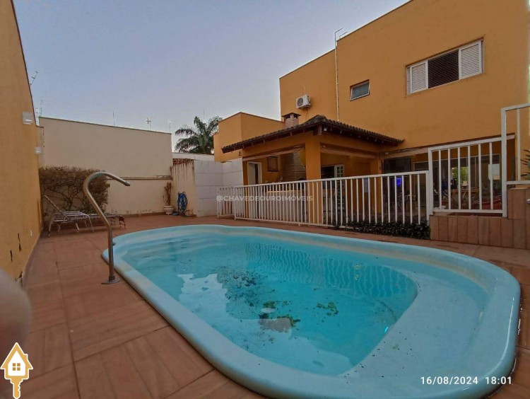 Casa localizada no bairro Vila Frei Eugênio em Uberaba, MG. Composta de três quartos com armários, sendo uma suítes. Dispõe de escritório, sala para dois ambientes, quatro banheiros, cozinha planejada com água quente, despensa, lavanderia, varanda gourmet com churrasqueira, ducha, piscina aquecida com hidromassagem e garagem para dois veículos. ID IMOVIEW: 6546