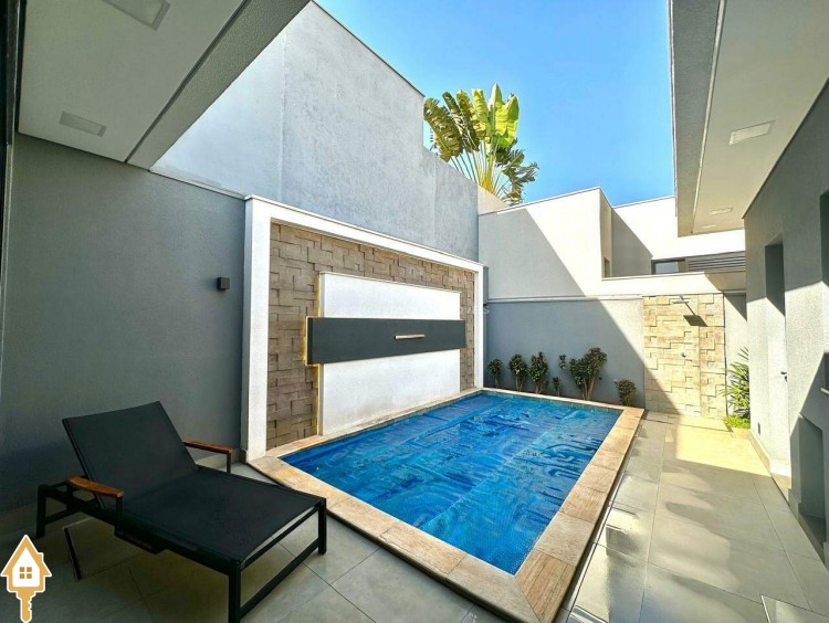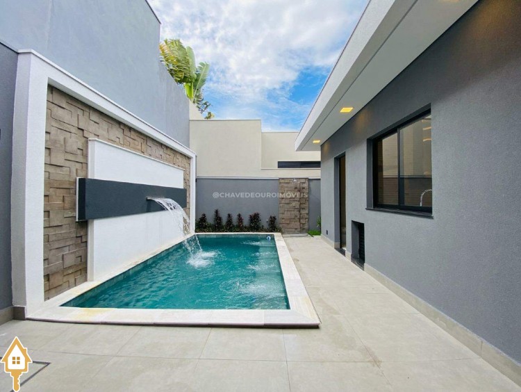 Casa localizada no bairro Estância dos Ipês em Uberaba, MG. Composta de três suítes com ar condicionado, sendo uma suíte máster com closet. Dispõe de lavabo, cozinha, sala para dois ambientes com pé direito duplo e ar condicionado, lavanderia, varanda gourmet com churrasqueira, lavabo externo, piscina aquecida com hidromassagem e quatro vagas de garagem sendo duas cobertas.
