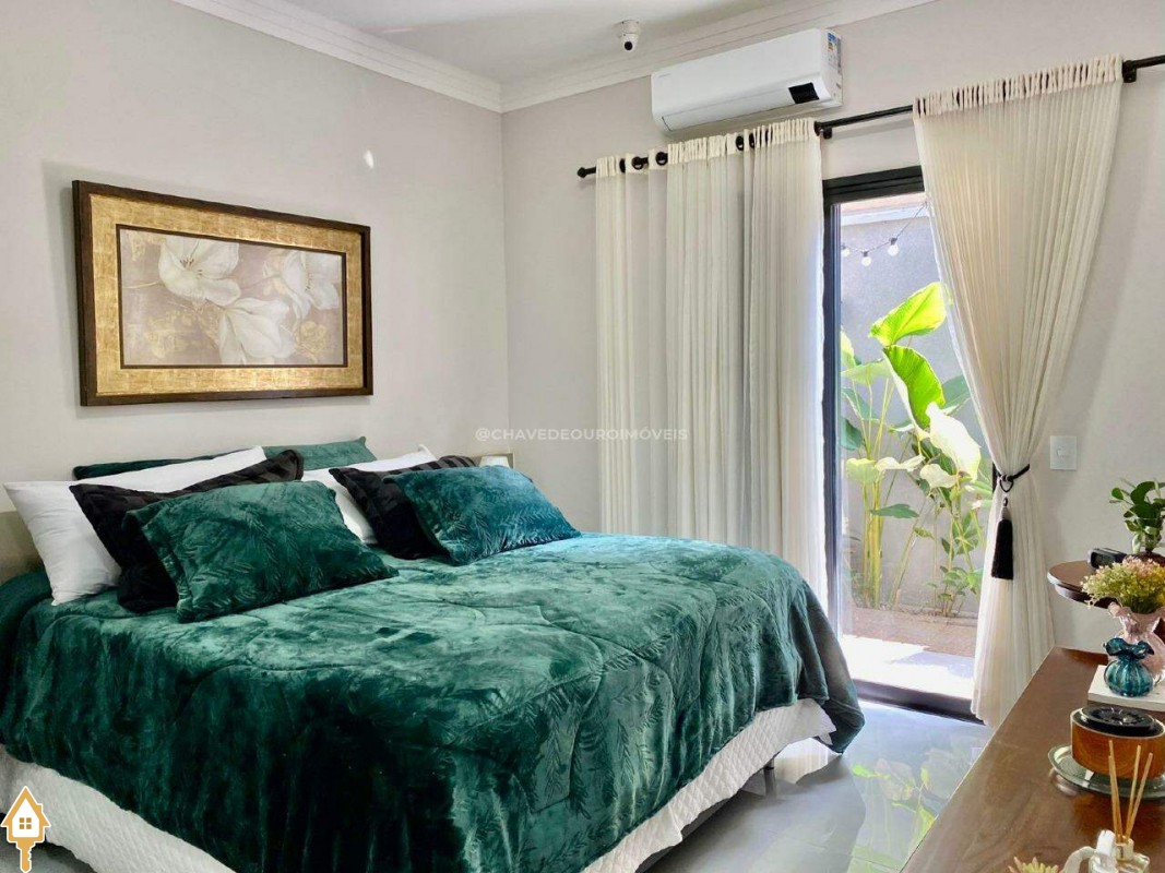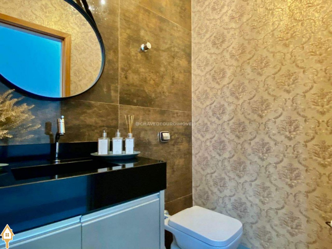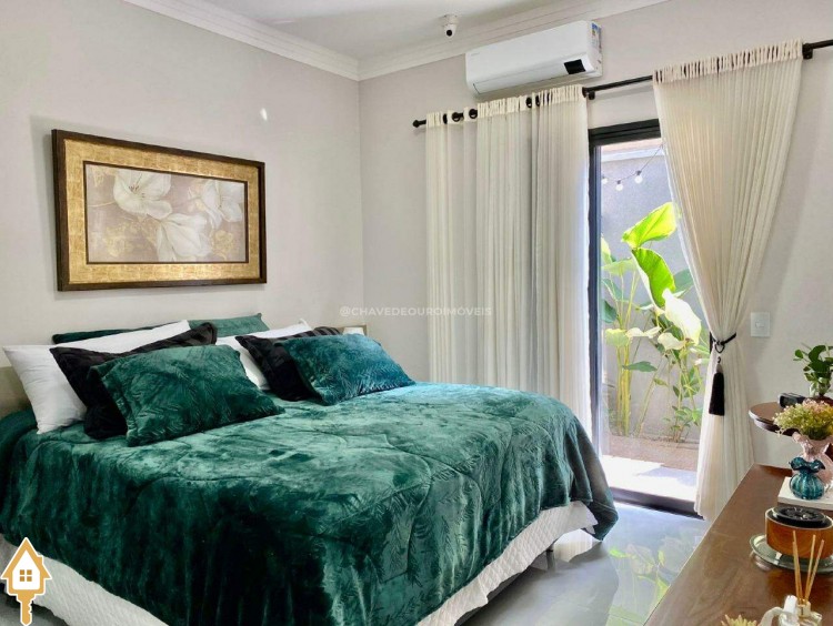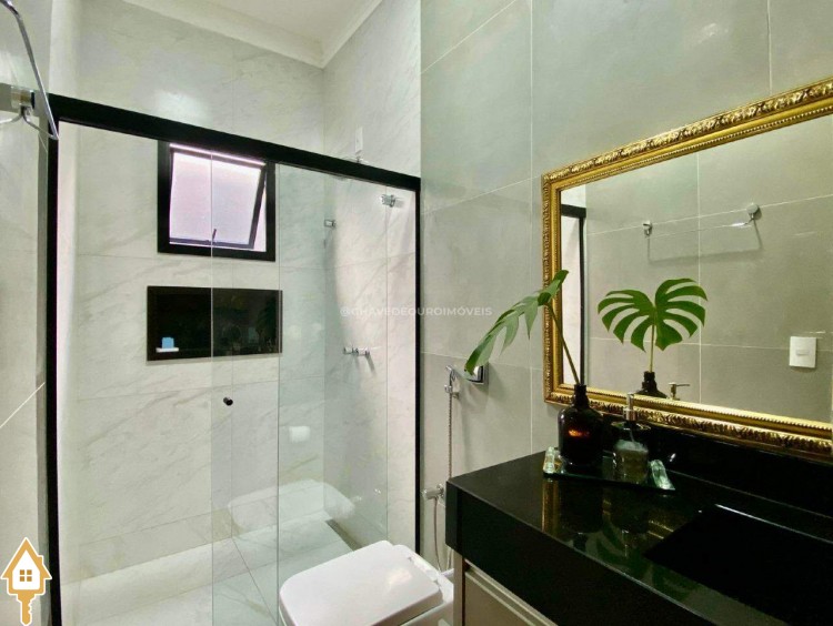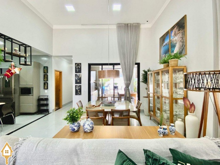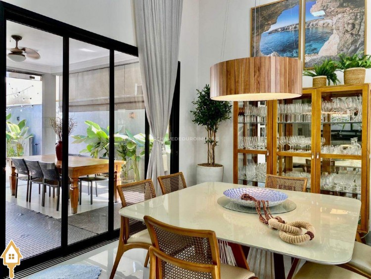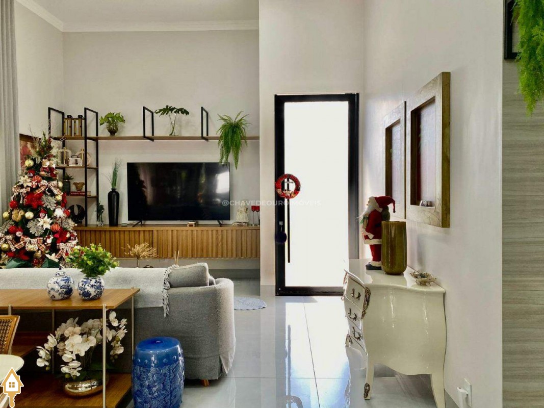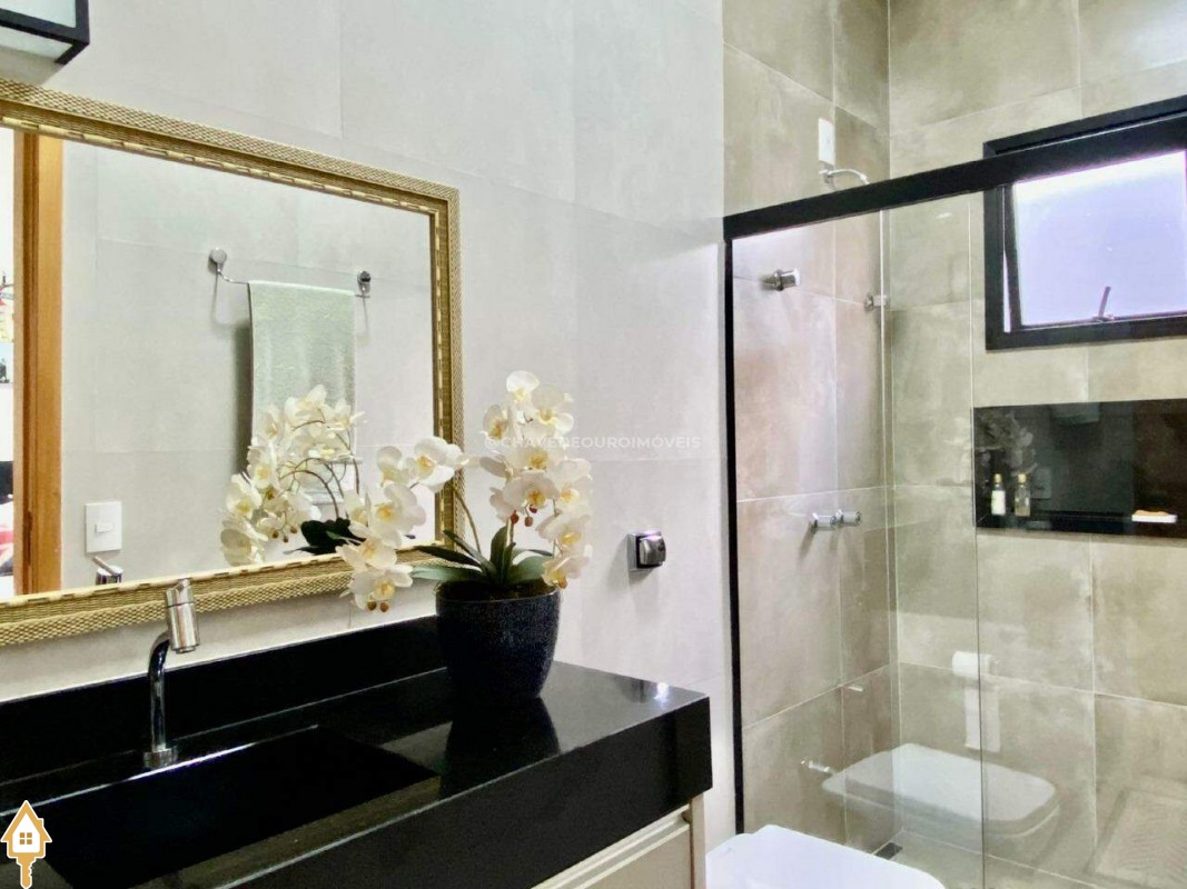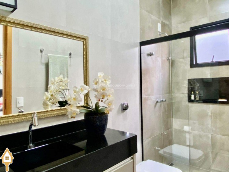Casa localizada no condomínio Estância dos Ipês em Uberaba, MG. Composta de três suítes com ar-condicionado, armários e box, sendo uma com closet. Dispõe de lavabo com armário, papel de parede e lustre, cozinha tipo americana equipada com armários, cooktop, forno e depurador de ar. Conta com sala de estar e jantar com pé direito duplo, integradas à cozinha e varanda gourmet equipada com armários, churrasqueira a carvão, toldo de proteção solar e área de quintal aberta, quatro vagas de garagem, sendo duas cobertas,