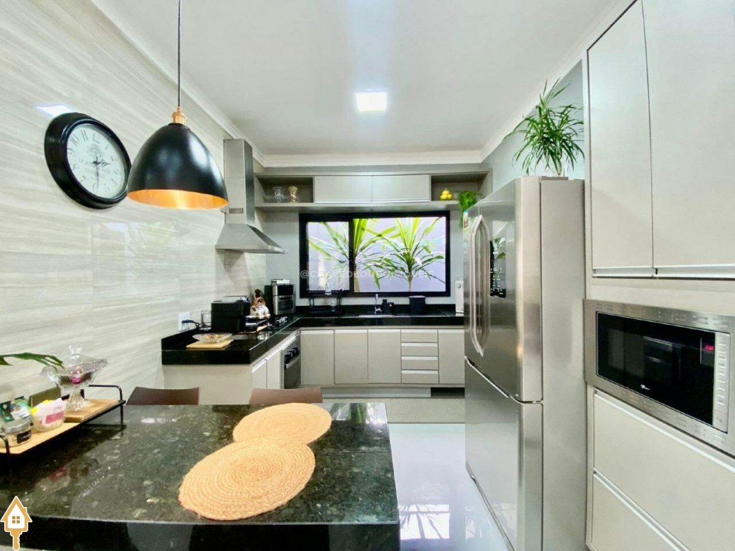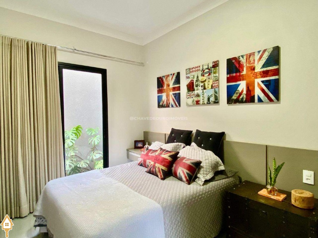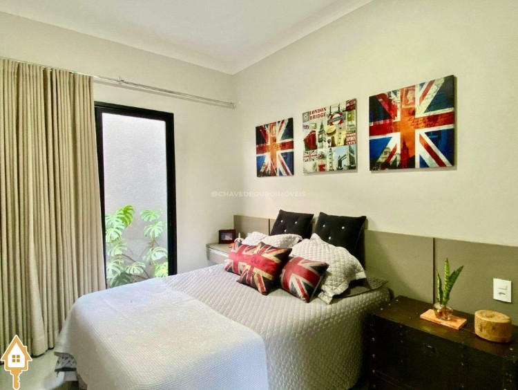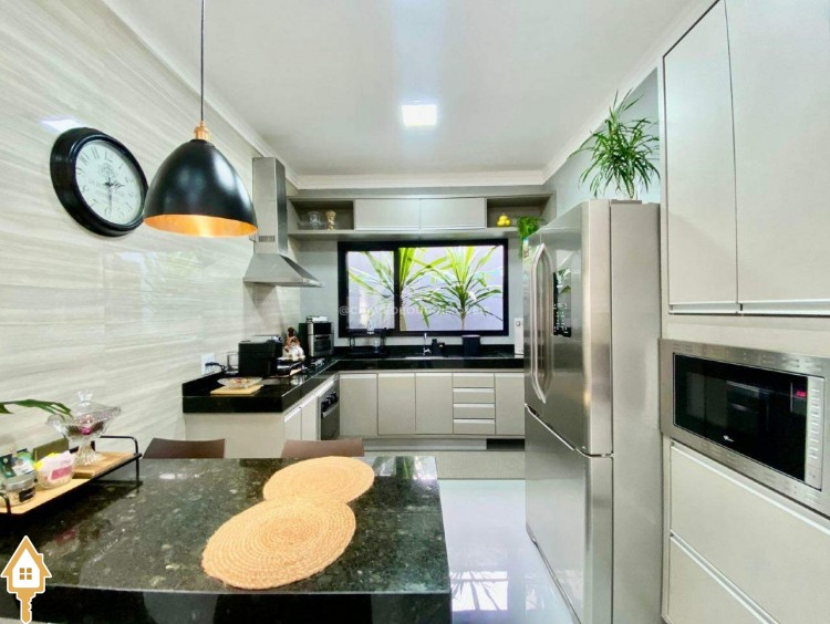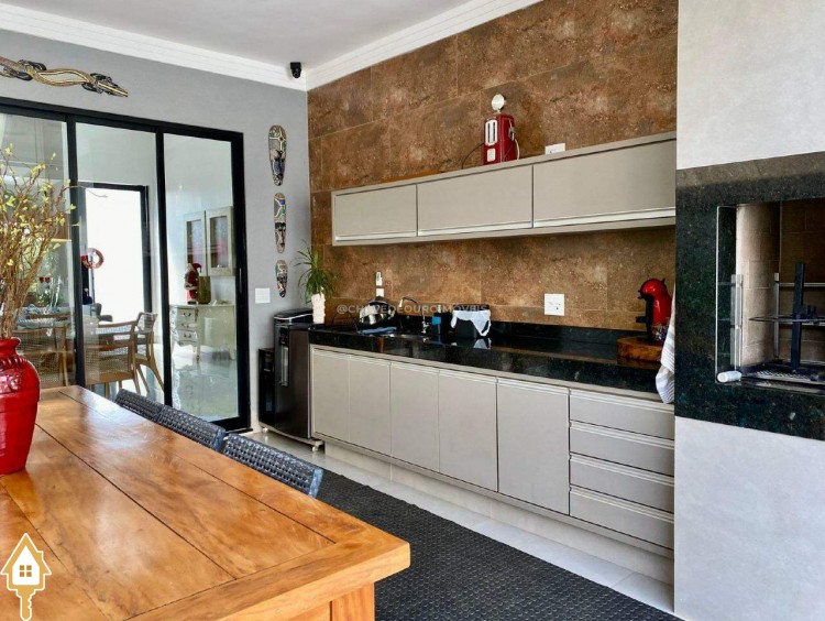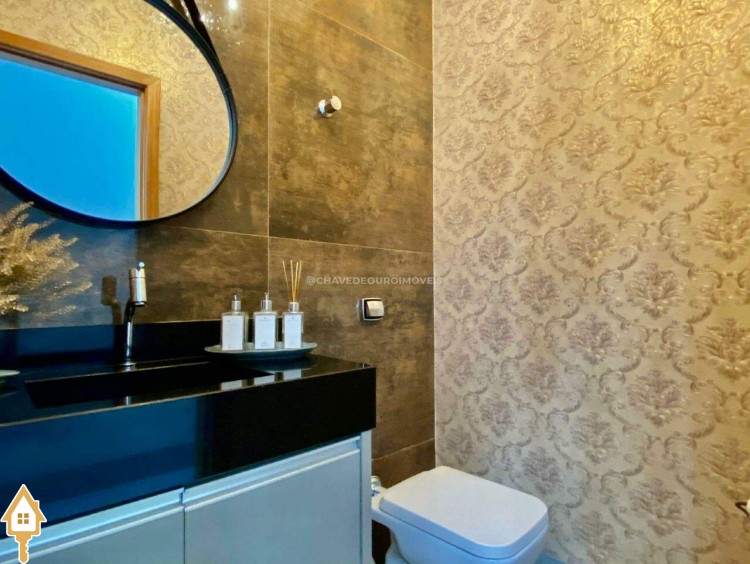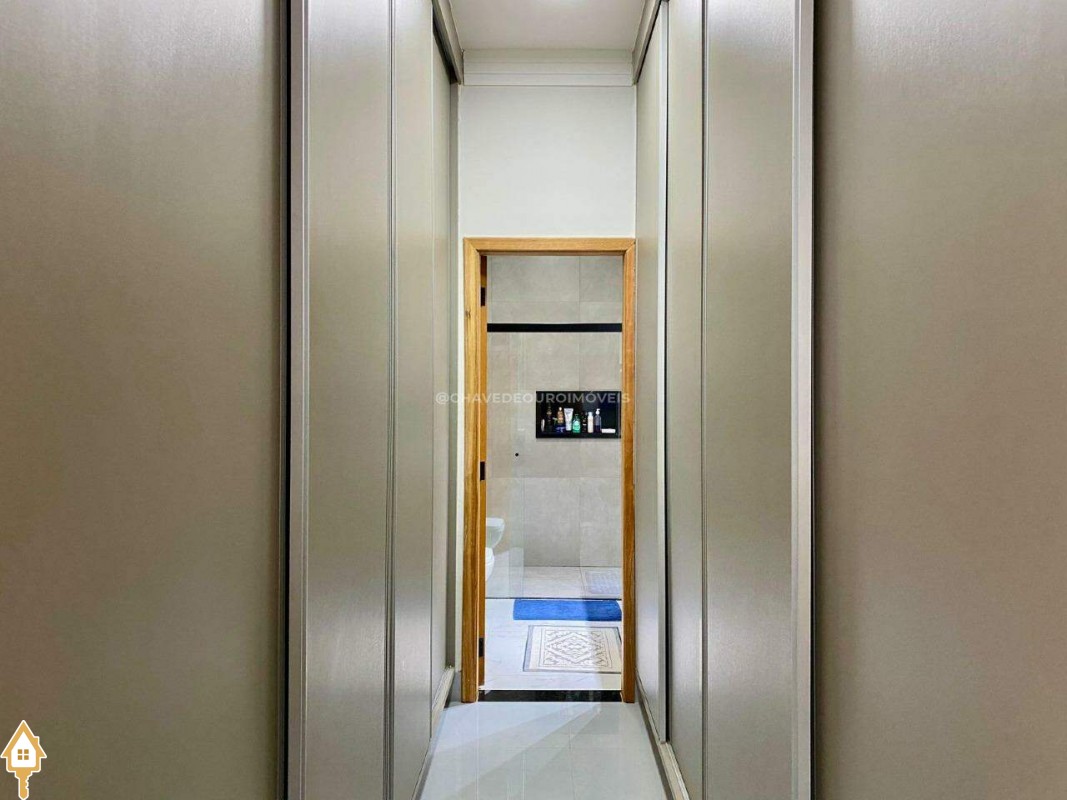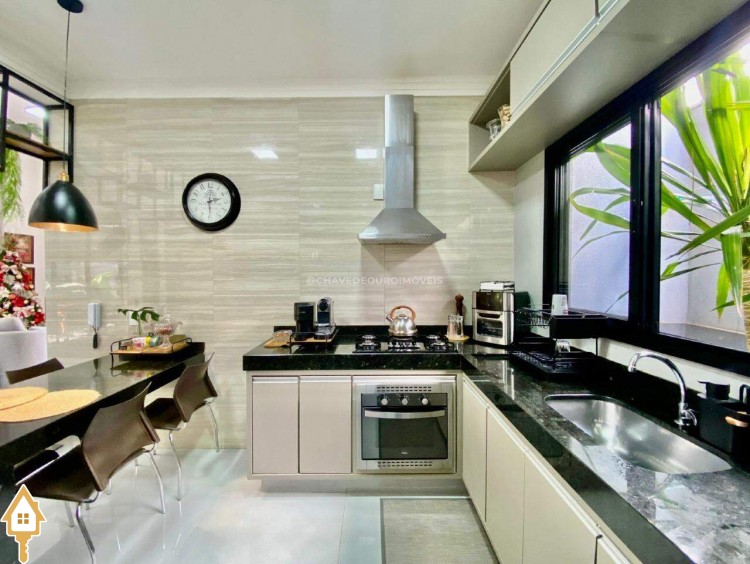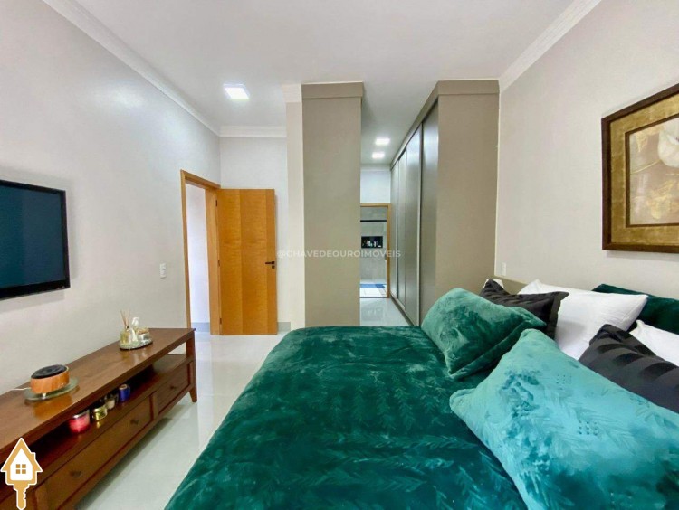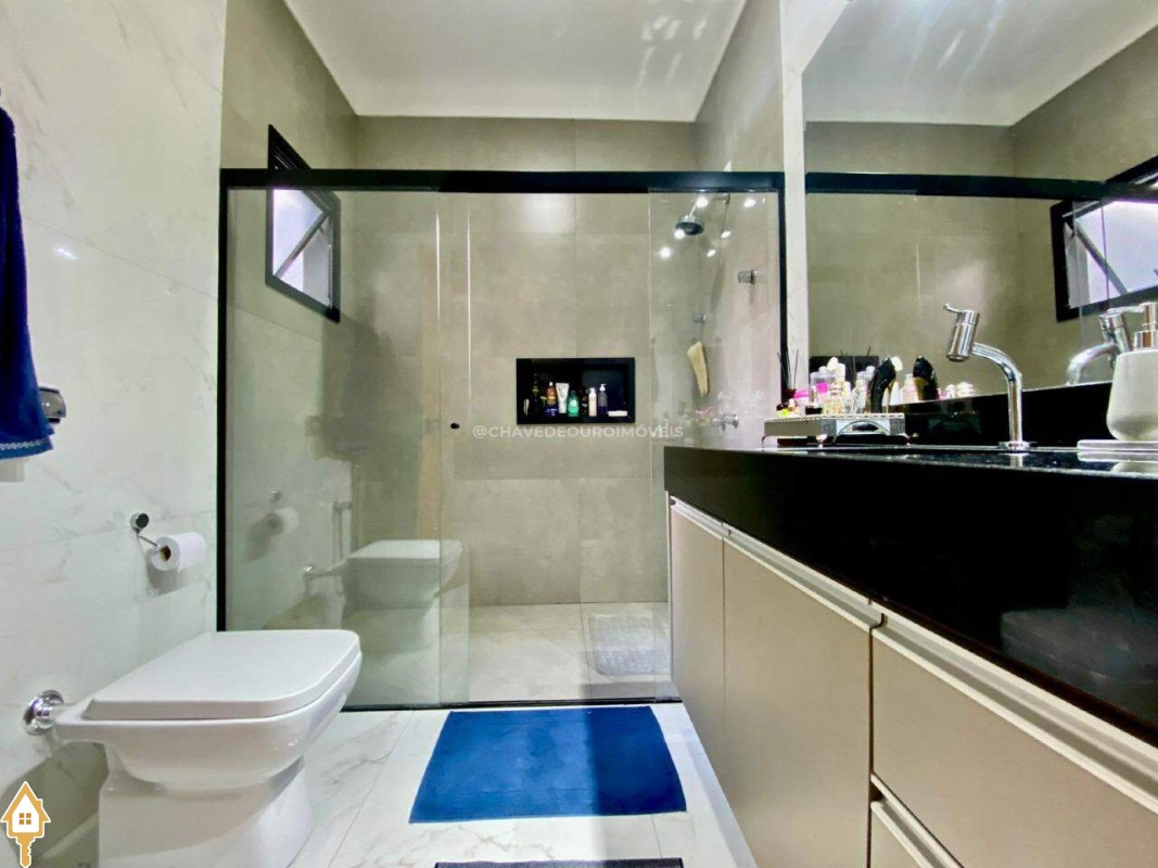 Casa localizada no condomínio Estância dos Ipês em Uberaba, MG. Composta de três suítes com ar-condicionado, armários e box, sendo uma com closet. Dispõe de lavabo com armário, papel de parede e lustre, cozinha tipo americana equipada com armários, cooktop, forno e depurador de ar. Conta com sala de estar e jantar com pé direito duplo, integradas à cozinha e varanda gourmet equipada com armários, churrasqueira a carvão, toldo de proteção solar e área de quintal aberta, quatro vagas de garagem, sendo duas cobertas,