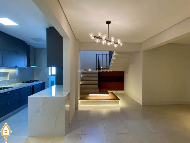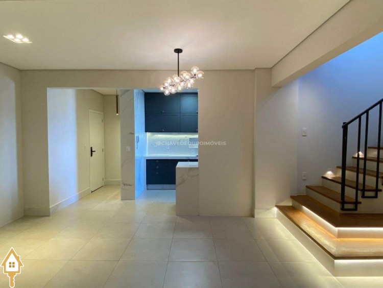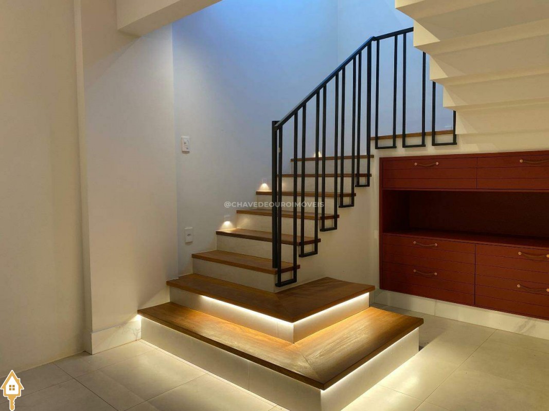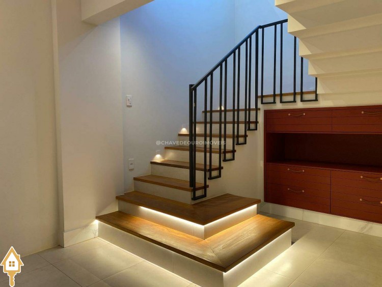 O imóvel conta com 3 quartos, sendo 1 suíte, sala ampla com dois ambientes integrada à cozinha, lavanderia e banheiro social no primeiro pavimento.