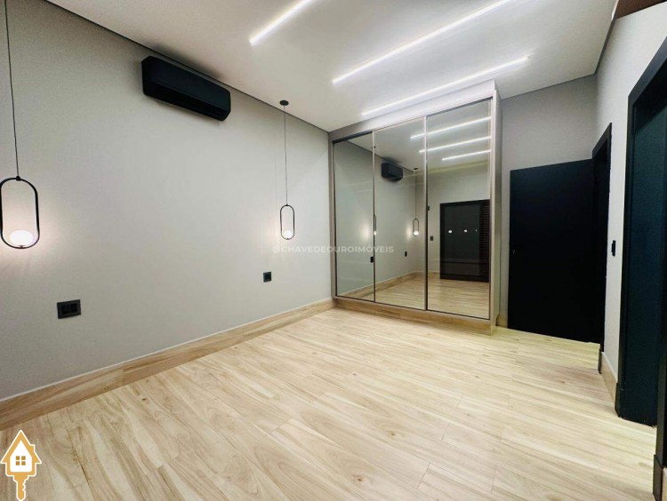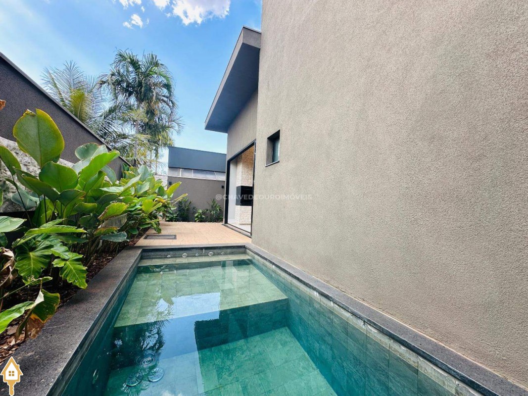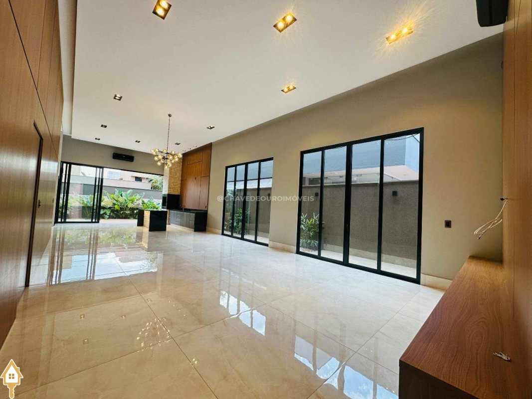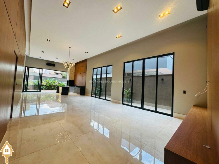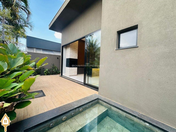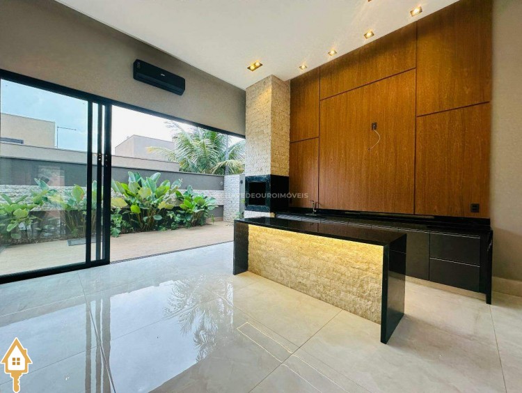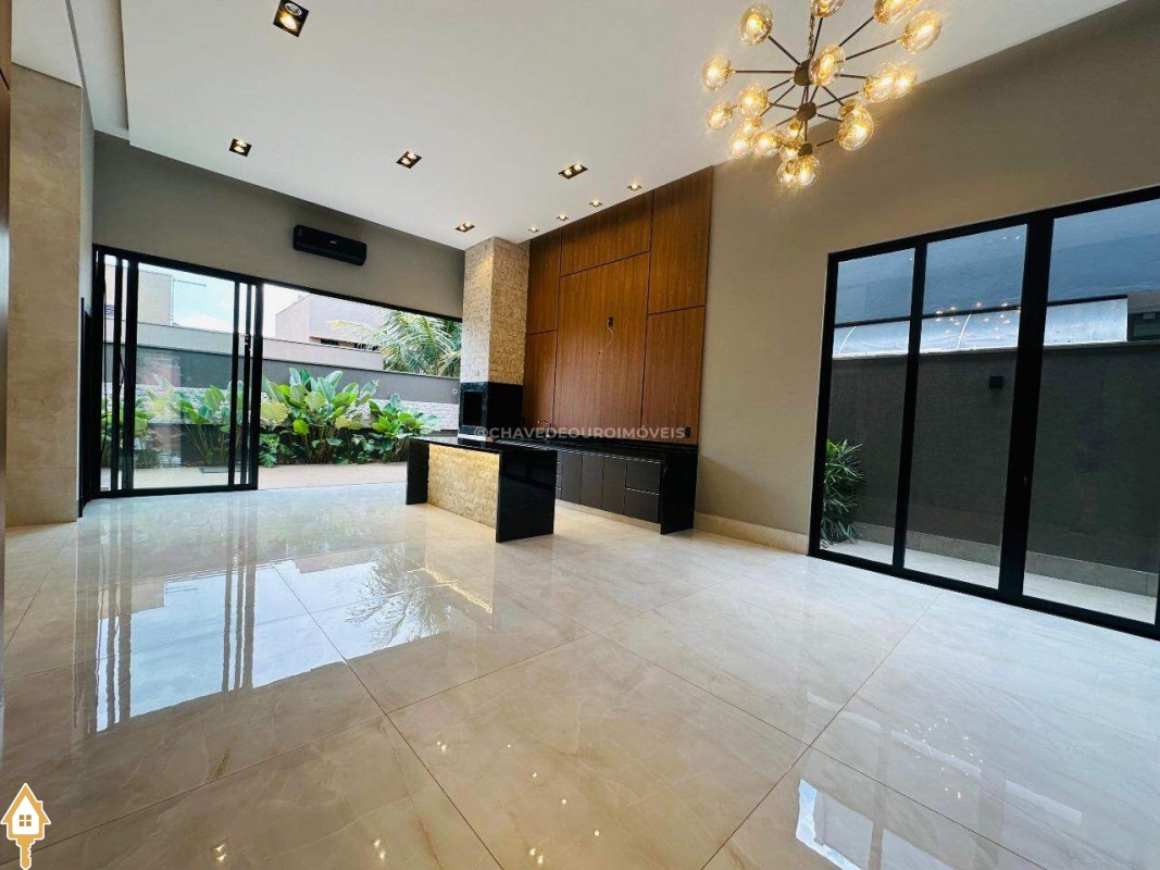 Casa localizada no condomínio Damha I em Uberaba, MG. Composta de três suítes com móveis planejados, sala com pé direito elevado e sistema de ar condicionado, lavabo, cozinha planejada equipada, varanda Gourmet com ar condicionado, churrasqueira, piscina com hidromassagem aquecida e lavanderia planejada.