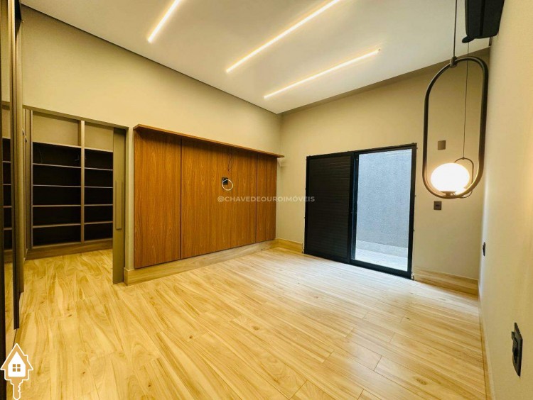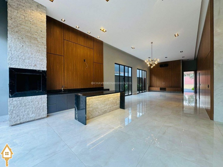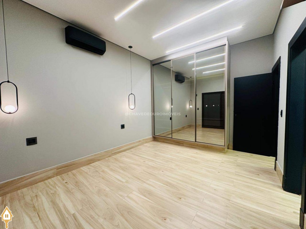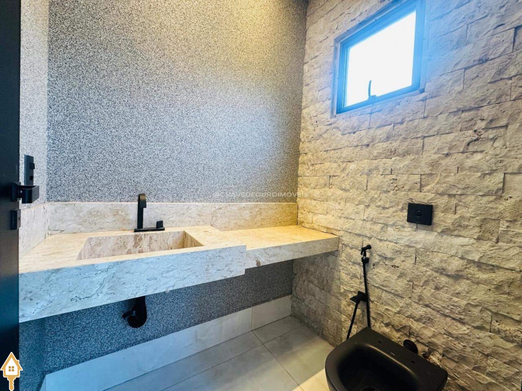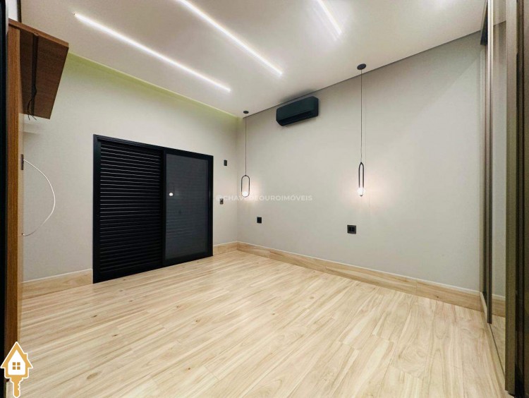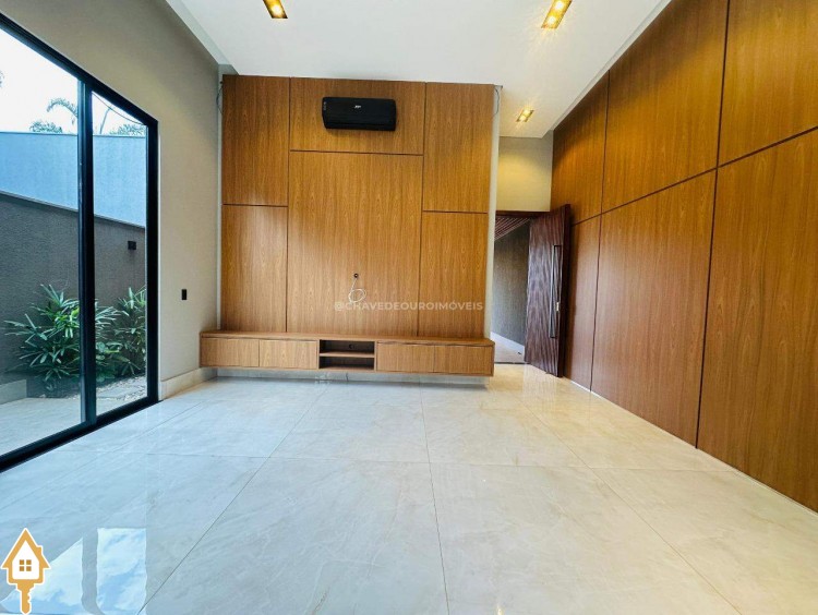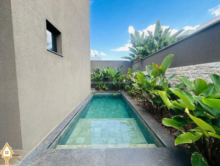 Casa localizada no condomínio Damha I em Uberaba, MG. Composta de três suítes com móveis planejados, sala com pé direito elevado e sistema de ar condicionado, lavabo, cozinha planejada equipada, varanda Gourmet com ar condicionado, churrasqueira, piscina com hidromassagem aquecida e lavanderia planejada.