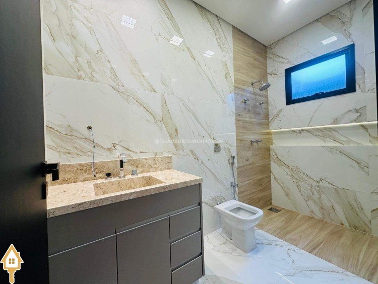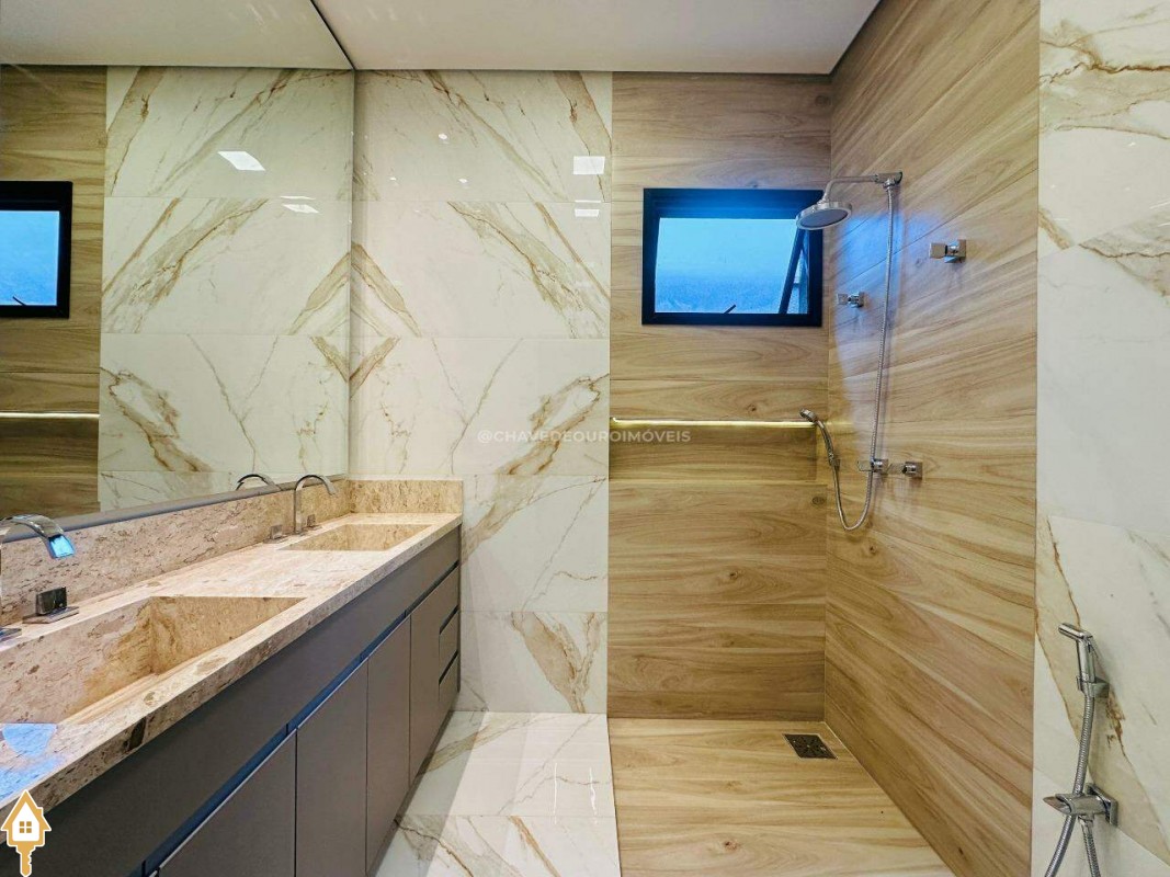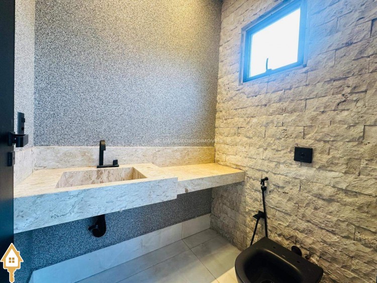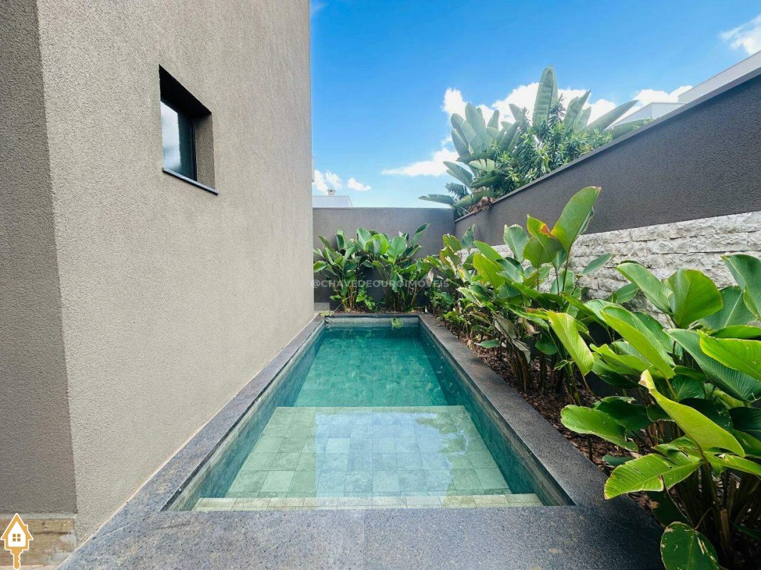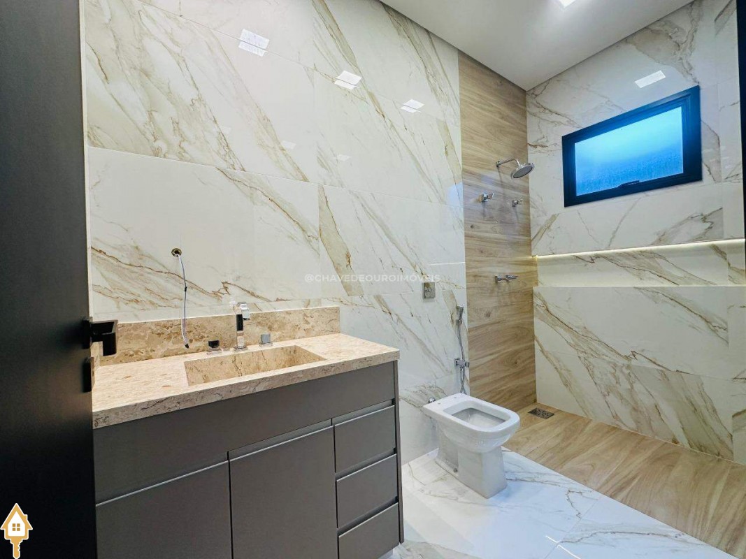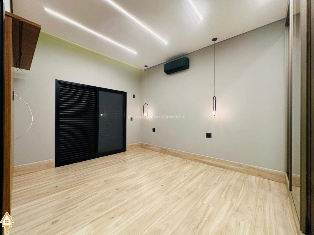 Casa localizada no condomínio Damha I em Uberaba, MG. Composta de três suítes com móveis planejados, sala com pé direito elevado e sistema de ar condicionado, lavabo, cozinha planejada equipada, varanda Gourmet com ar condicionado, churrasqueira, piscina com hidromassagem aquecida e lavanderia planejada.