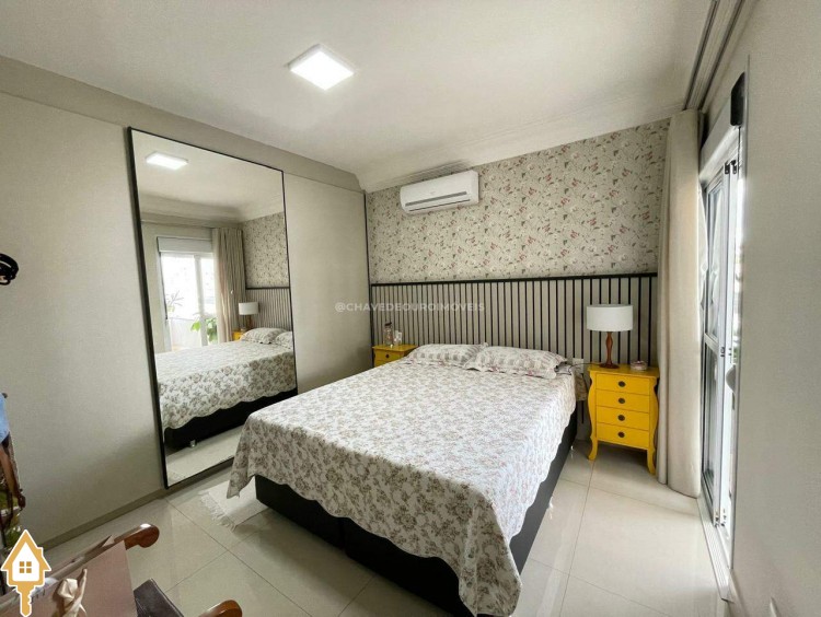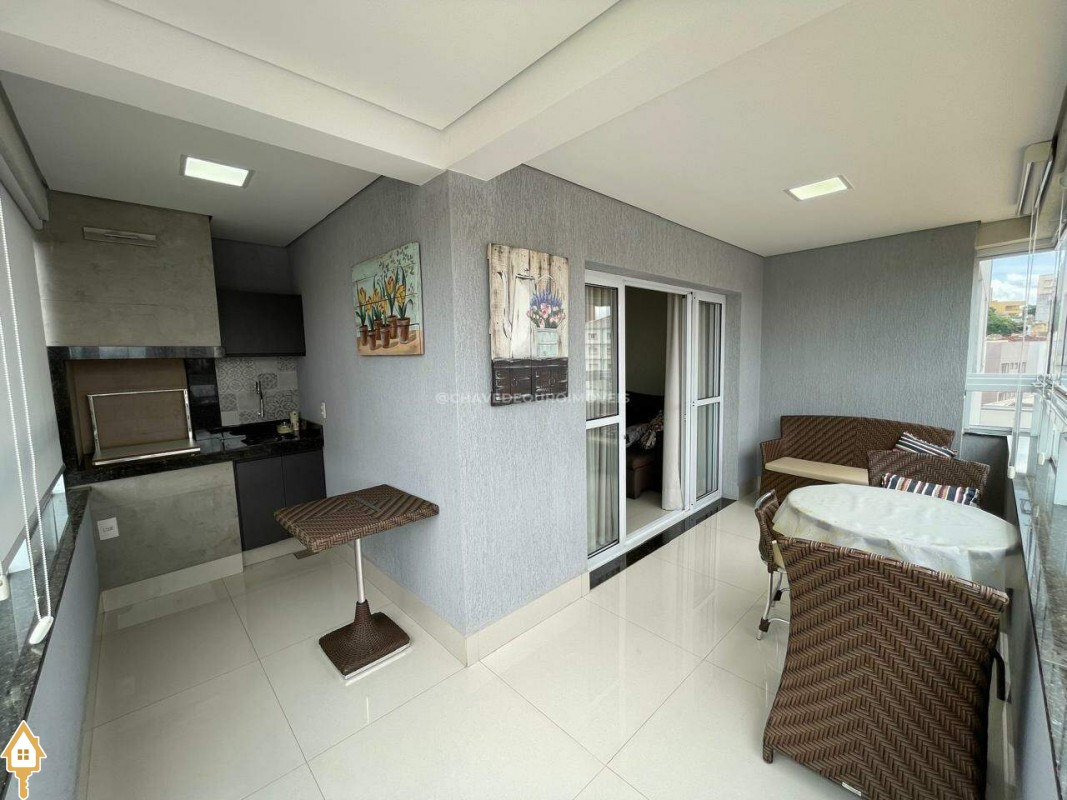 Apartamento amplo e bem localizado, com 3 quartos (sendo 1 suíte com sacada), cortina de vidro, ar-condicionado em todos os quartos, banheiro social e roupeiro. Sala para dois ambientes integrada à varanda gourmet, equipada com cortina de vidro, churrasqueira e cortina blecaute. Conta ainda com lavabo, cozinha com iluminação em LED, lavanderia com banheiro e 3 vagas de garagem. O condomínio oferece salão de festas, academia e portaria virtual.