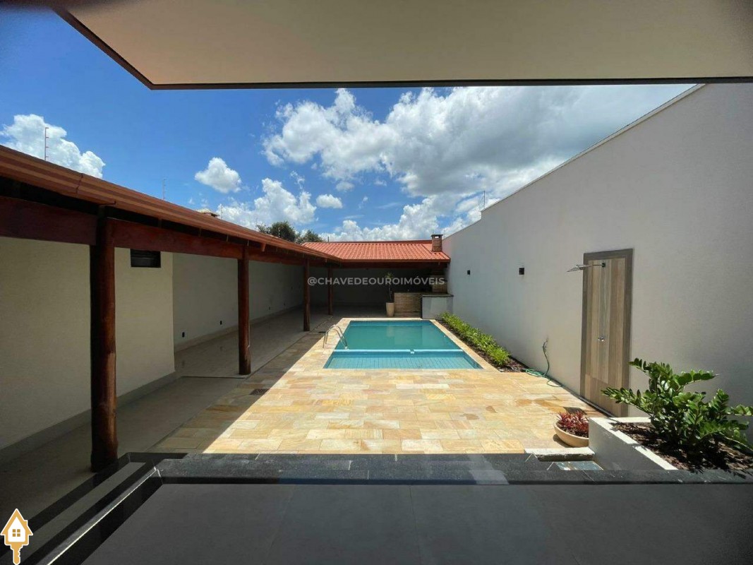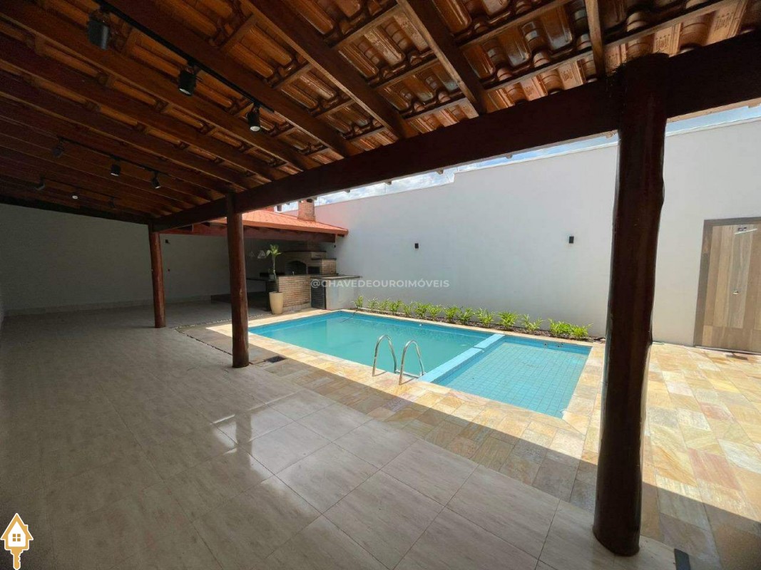 Casa á venda com sala de estar, jantar e cozinha integradas, o ambiente se torna perfeito para receber amigos e familiares. O pé direito de 4,5 metros traz uma sensação de amplitude e luminosidade. Os 3 quartos, sendo um suíte, garantem conforto e privacidade para todos. O lavabo externo é uma ótima adição, varanda gourmet, com churrasqueira, fogão de lenha e forno, é perfeita para aqueles que amam cozinhar e desfrutar de refeições ao ar livre. A ampla área externa, com ducha, piscina e jardim, oferece um espaço ideal para relaxar . Essa casa proporciona um estilo de vida que combina conforto, funcionalidade e momentos de lazer em família. ID IMOVIEW: 6846