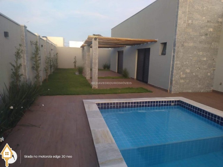 Casa localizada no condomínio Residencial Mário Franco em Uberaba, MG. Composta de três suítes, cozinha americana planejada, lavabo e aquecimento de água por boiler de 600L. Dispõe de área externa com piscina, dois pergolados, jardim e garagem para quatro veículos. ID IMOVIEW: 6749