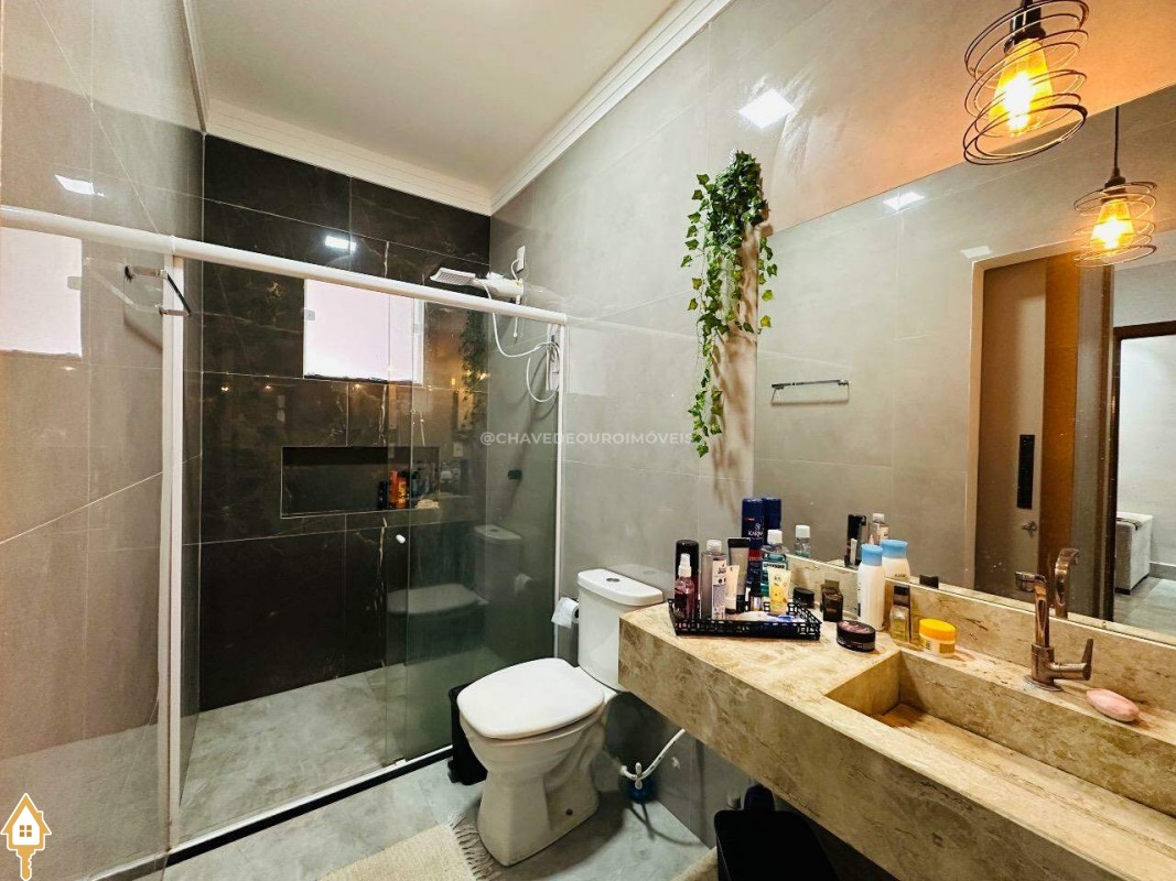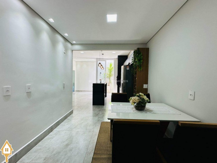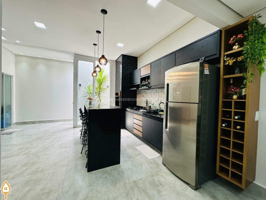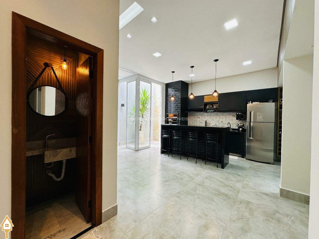 Casa no condomínio Terra Nova com 03 quartos, sendo um suíte e dois com banheiro compartilhado, ar condicionado em um quarto. Cozinha gourmet com churrasqueira, jardim de inverno e lavabo, lavanderia fechada. Armários planejados nos quartos, banheiros e cozinha, sala de estar e jantar, caixa d' água de 500 litros e 03 vagas de garagem cobertas.