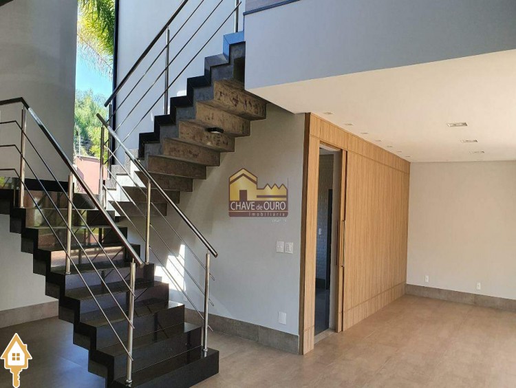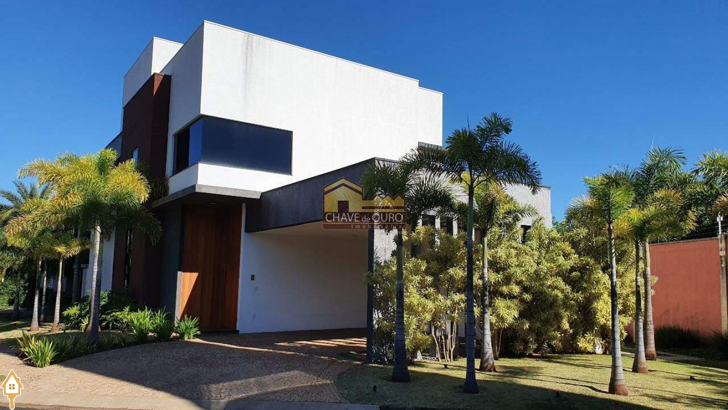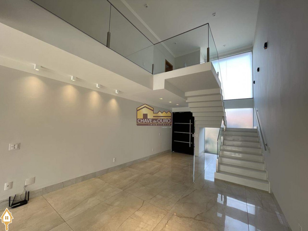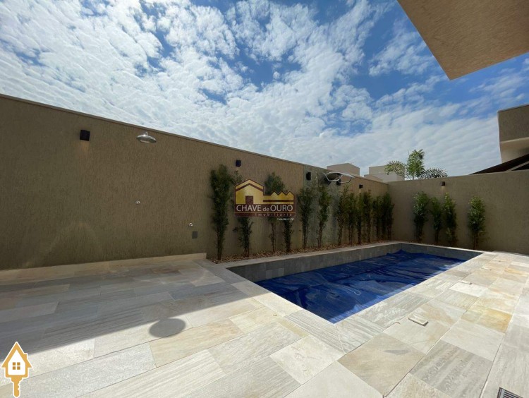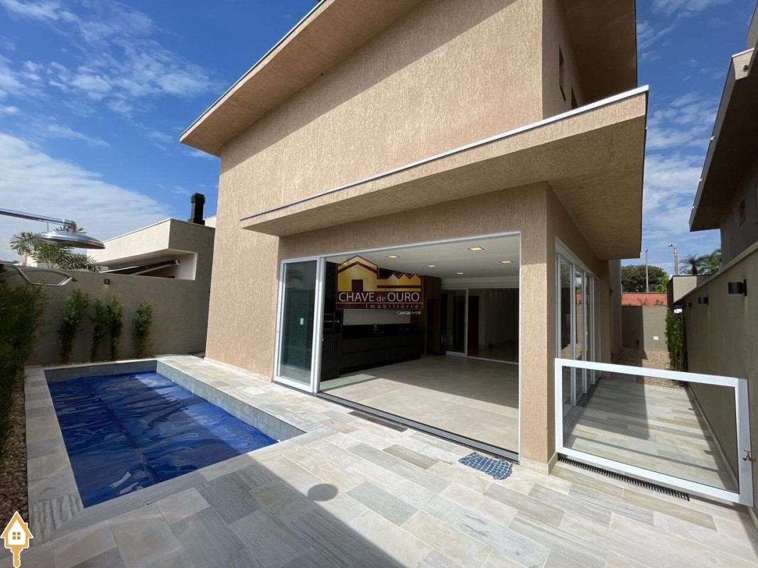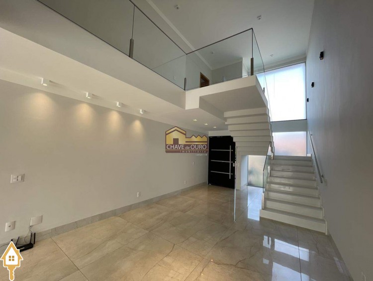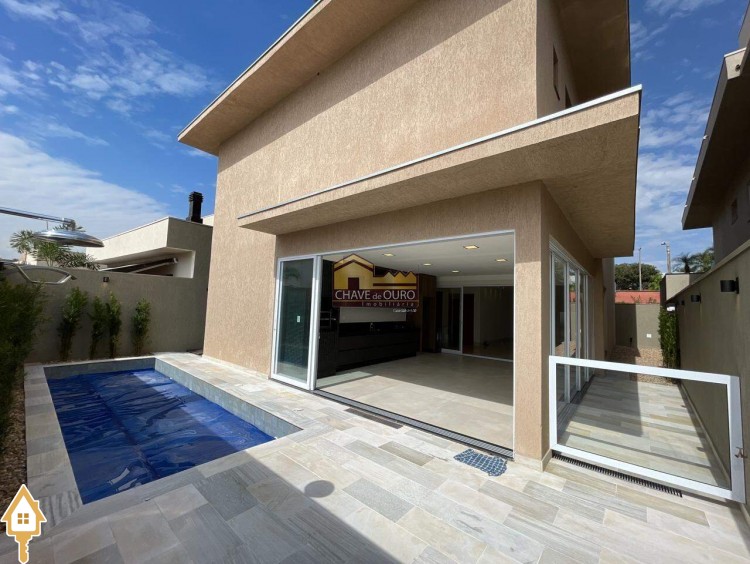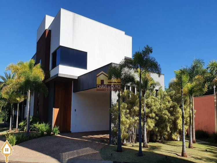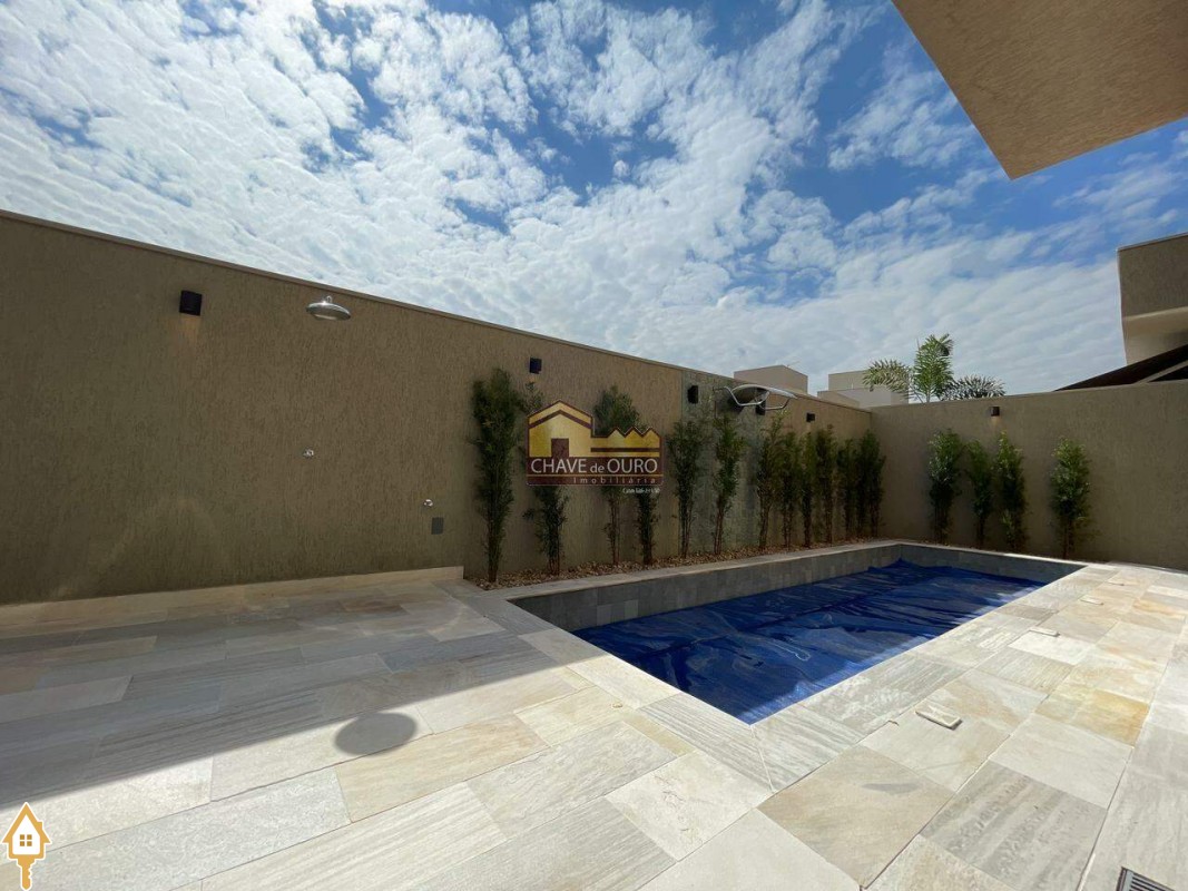 Casa à venda em Uberaba em condomínio fechado de alto padrão, Flamboyant 3, com 3 suítes com closets, sala para dois ambientes com pé direito duplo, WC social, sala de TV no pavimento térreo reversível para quarto, cozinha e lavanderia planejadas, varanda gourmet com churrasqueira e piscina aquecida.