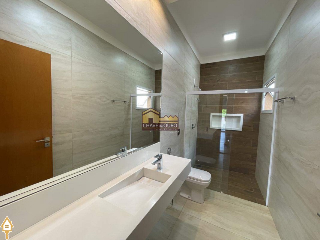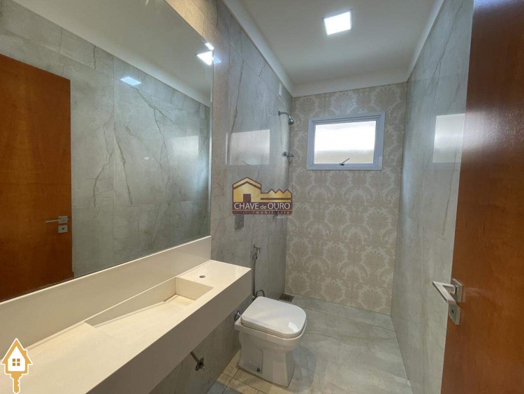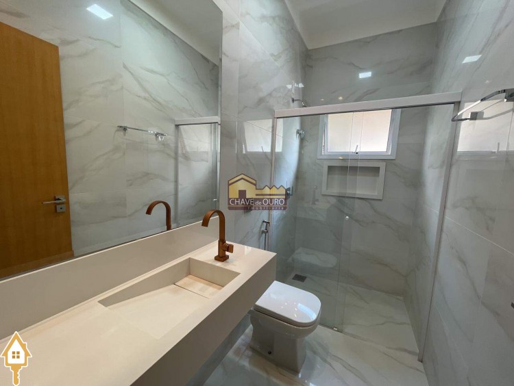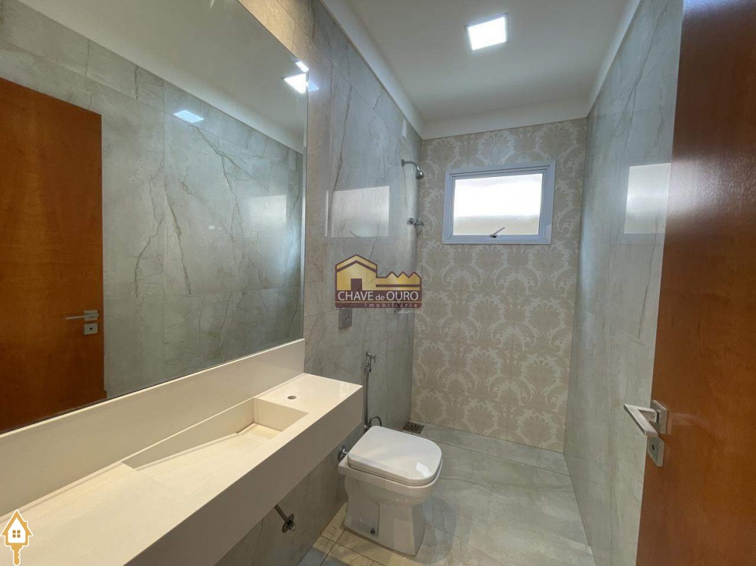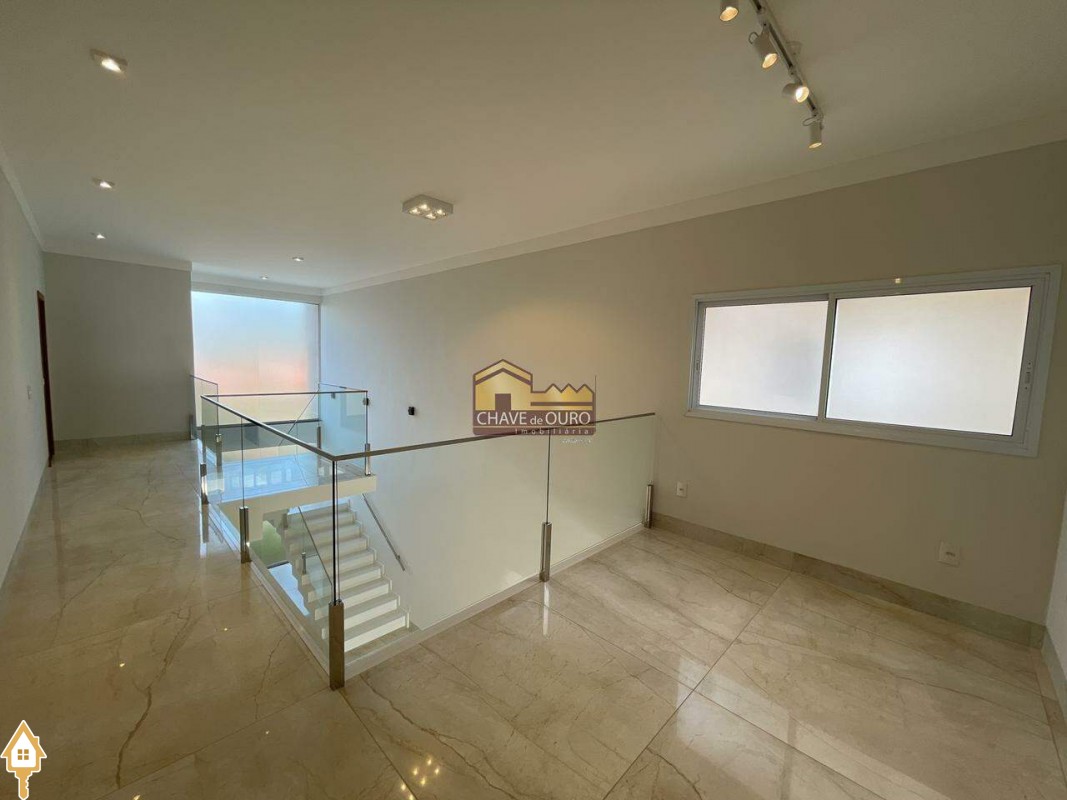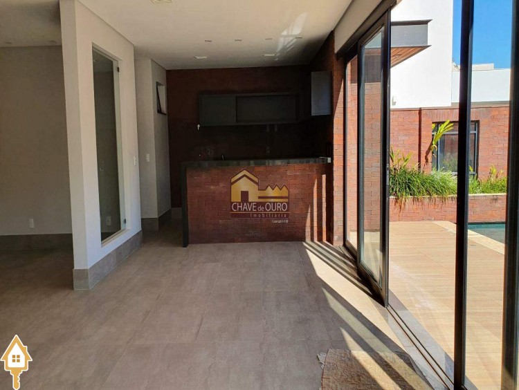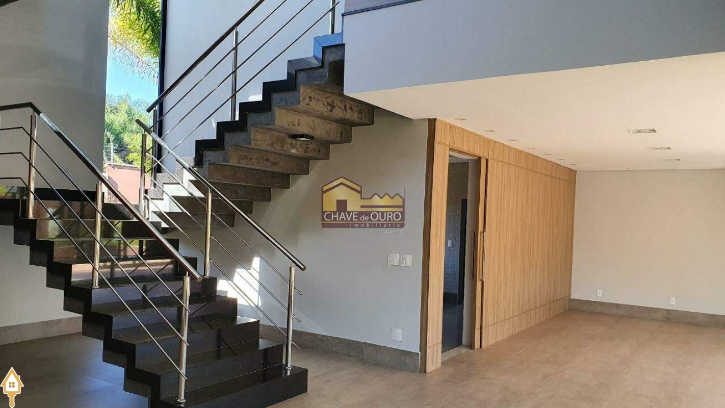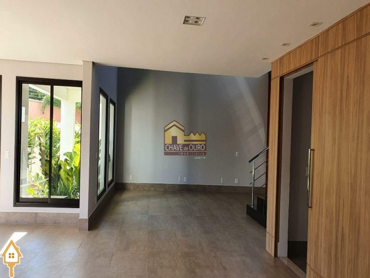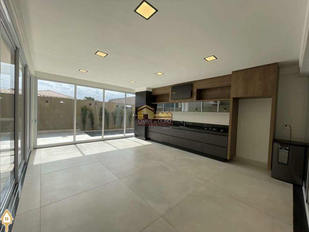 Casa à venda em Uberaba em condomínio fechado de alto padrão, Flamboyant 3, com 3 suítes com closets, sala para dois ambientes com pé direito duplo, WC social, sala de TV no pavimento térreo reversível para quarto, cozinha e lavanderia planejadas, varanda gourmet com churrasqueira e piscina aquecida.