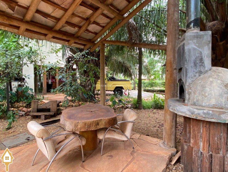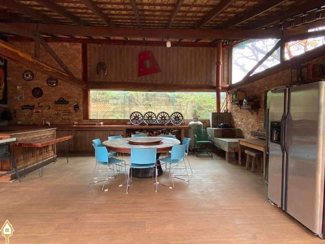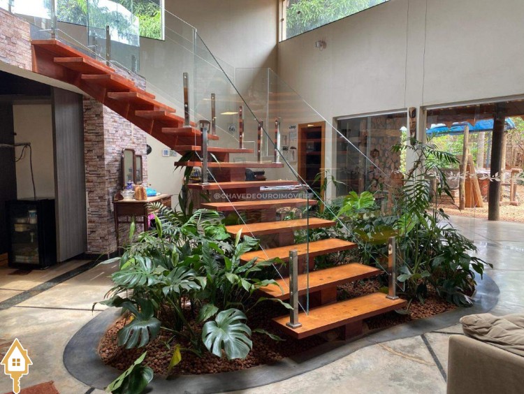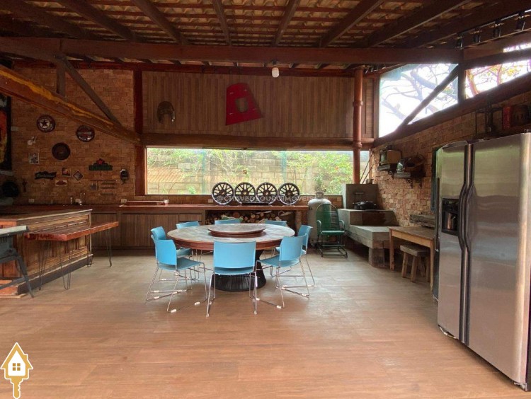 Casa localizada no bairro Vale do Sol em Uberaba, MG. Composta de duas suítes, sala para três ambientes, sala de jantar e cozinha planejada com fogão a lenha. Dispõe de espaço gourmet com fogão a lenha, quiosque com forno de pizza, quiosque com redário e churrasqueira, piscina aquecida e sauna. Conta com três lavabos, espaço para depósito e lago de carpas. ID IMOVIEW: 6709