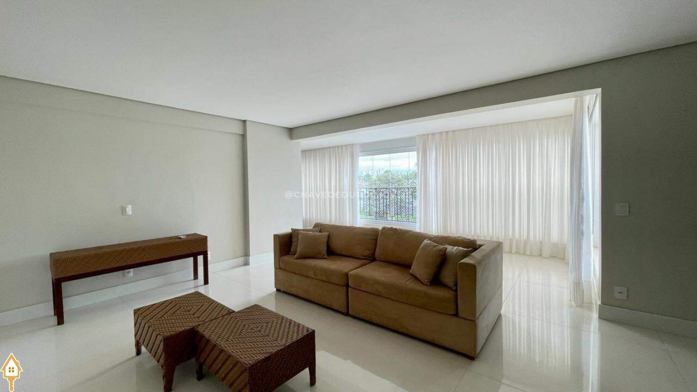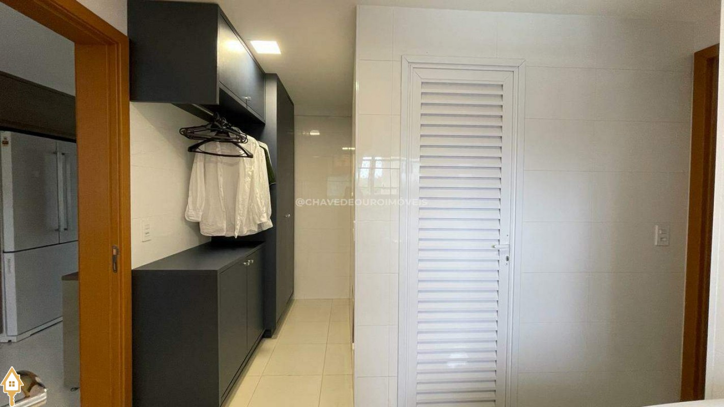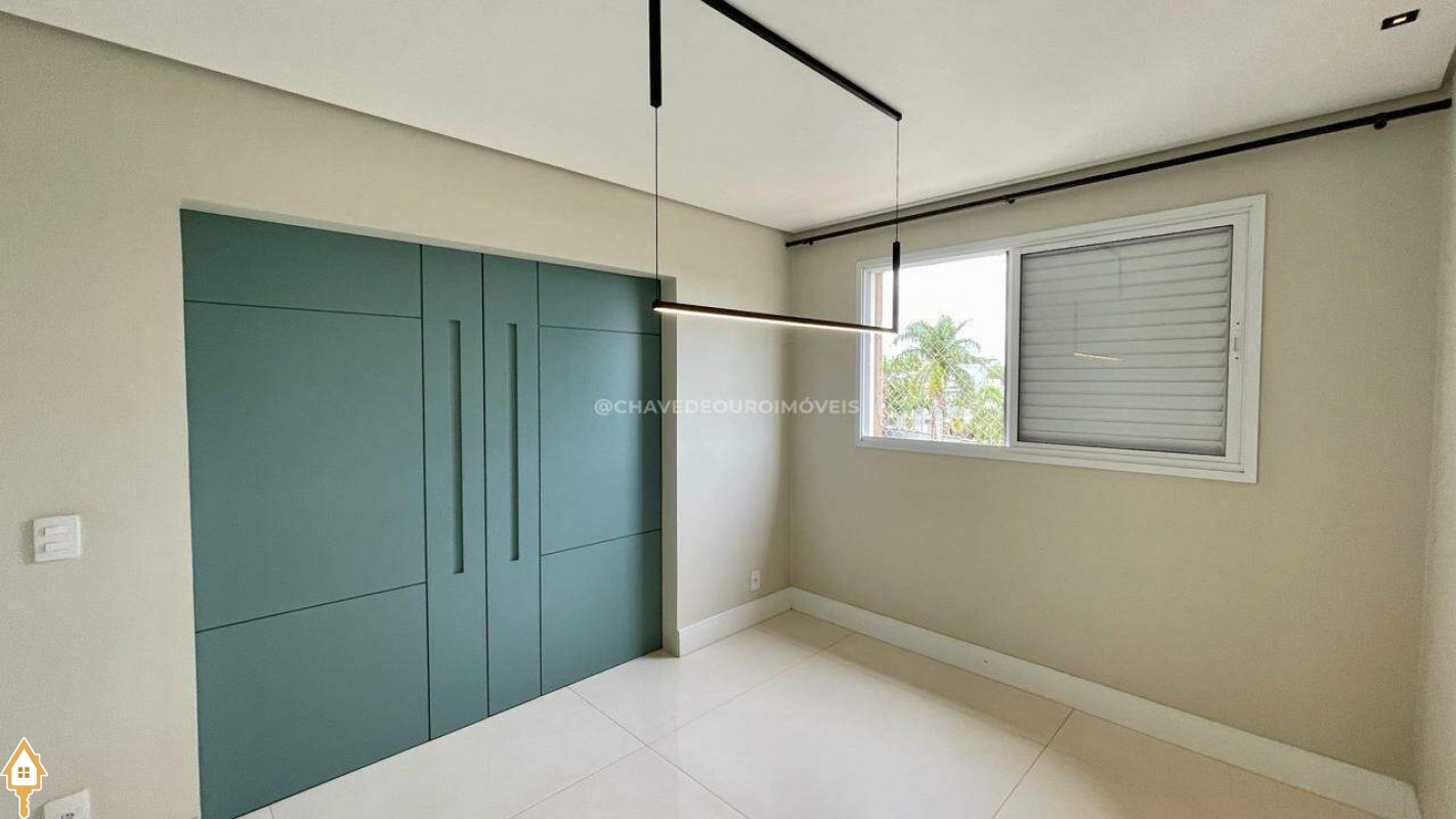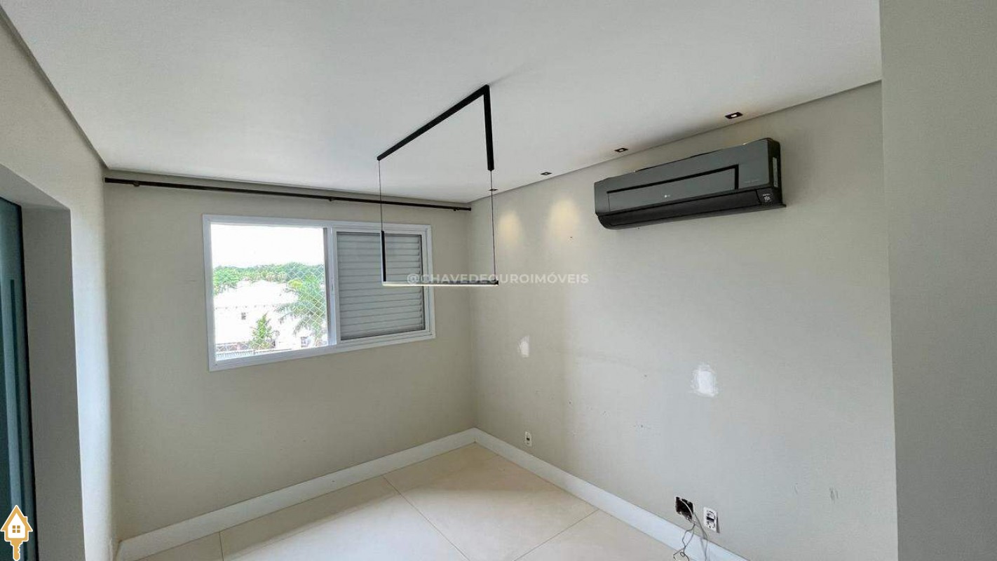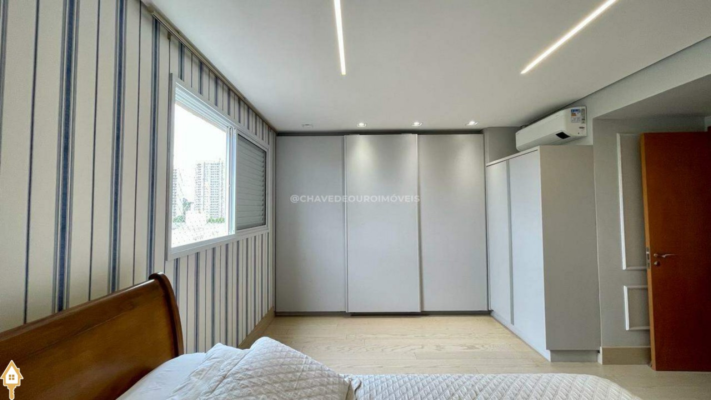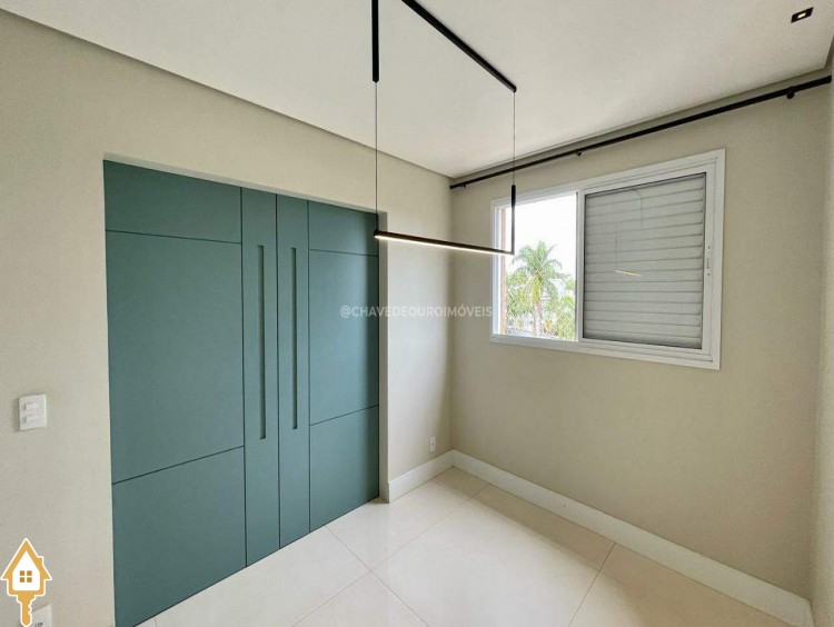 Apartamento localizado no bairro Jardim do Lago em Uberaba, MG. Composto de três suítes, todas com armários planejados. Dispõe de sala para dois ambientes, varanda com área gourmet equipada com ar-condicionado e churrasqueira a carvão, cozinha equipada, lavanderia com depósito adicional, escritório com ar condicionado e porta laqueada em azul, lavabo decorado e três vagas de garagem cobertas, proporcionando conforto e segurança.