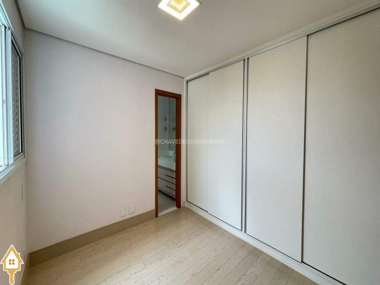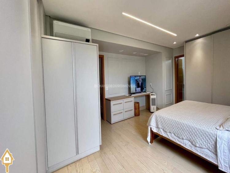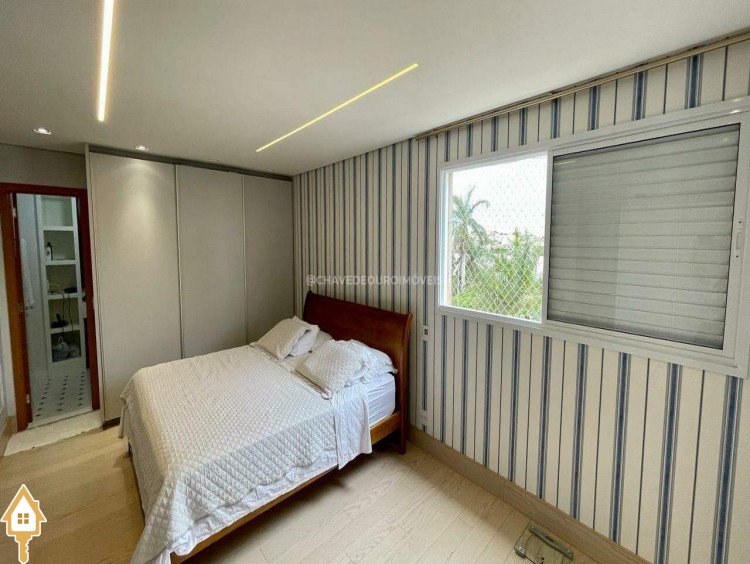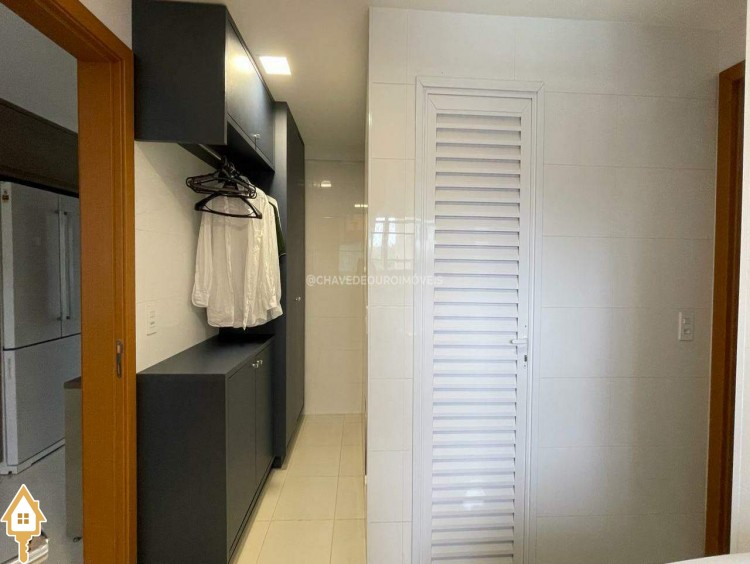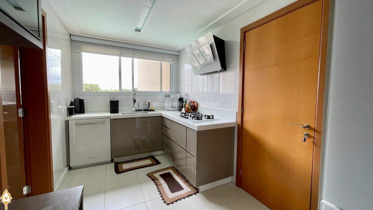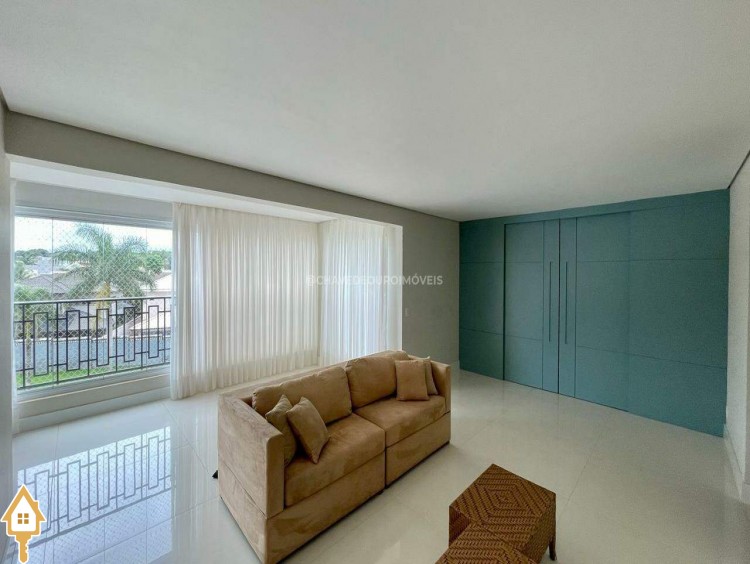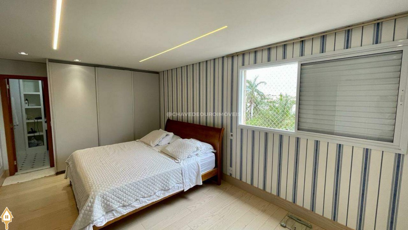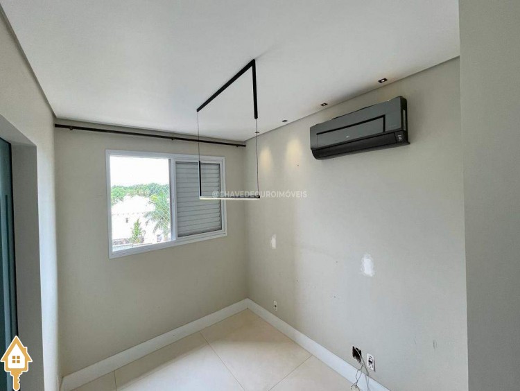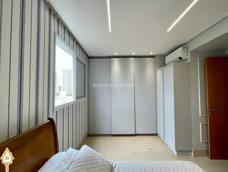 Apartamento localizado no bairro Jardim do Lago em Uberaba, MG. Composto de três suítes, todas com armários planejados. Dispõe de sala para dois ambientes, varanda com área gourmet equipada com ar-condicionado e churrasqueira a carvão, cozinha equipada, lavanderia com depósito adicional, escritório com ar condicionado e porta laqueada em azul, lavabo decorado e três vagas de garagem cobertas, proporcionando conforto e segurança.