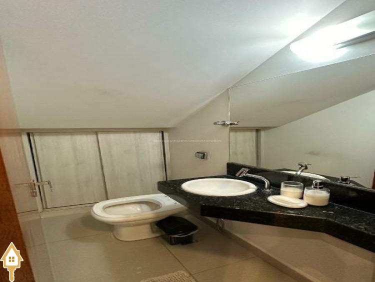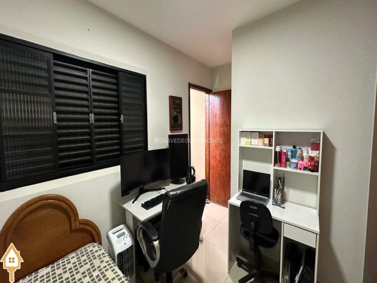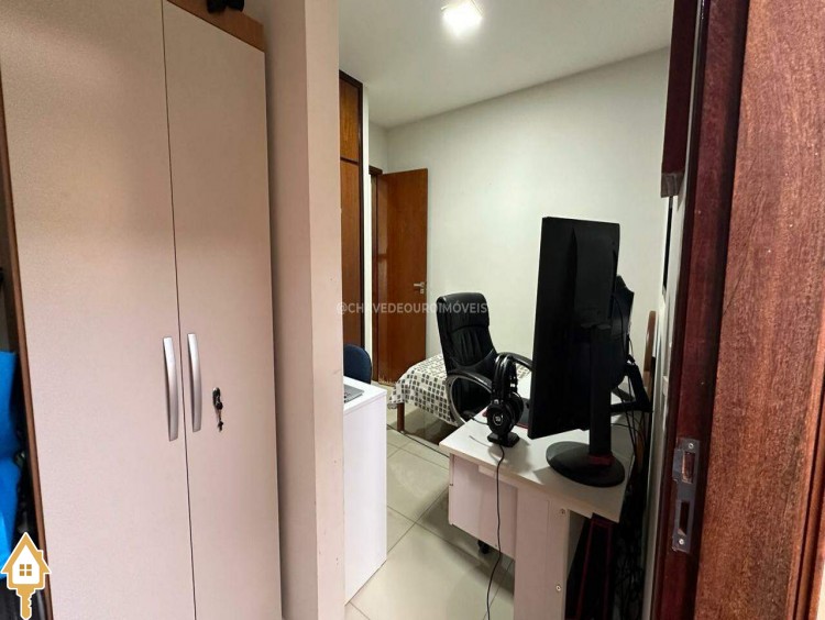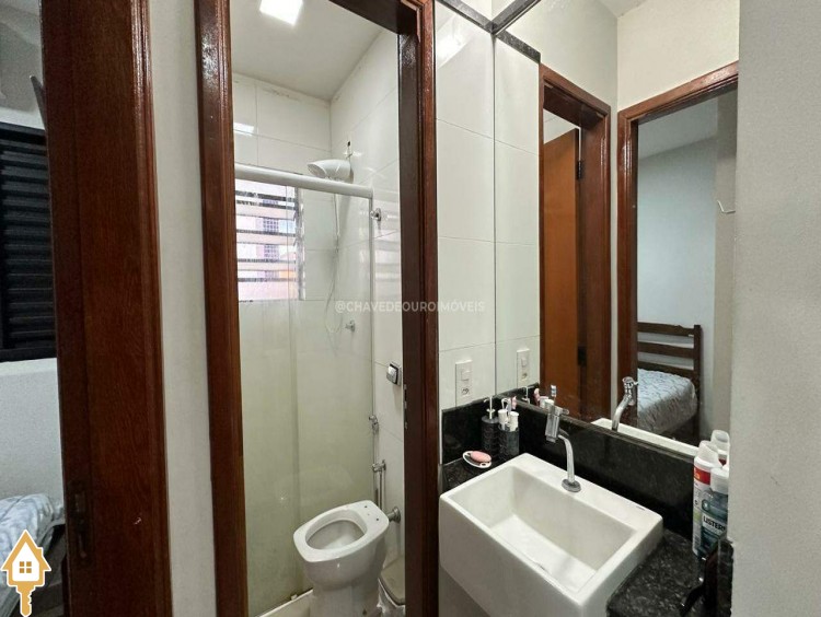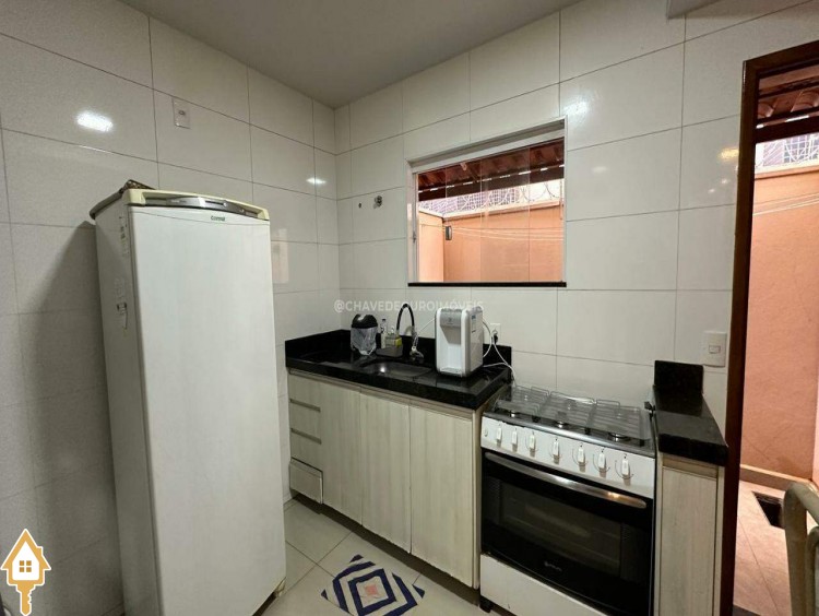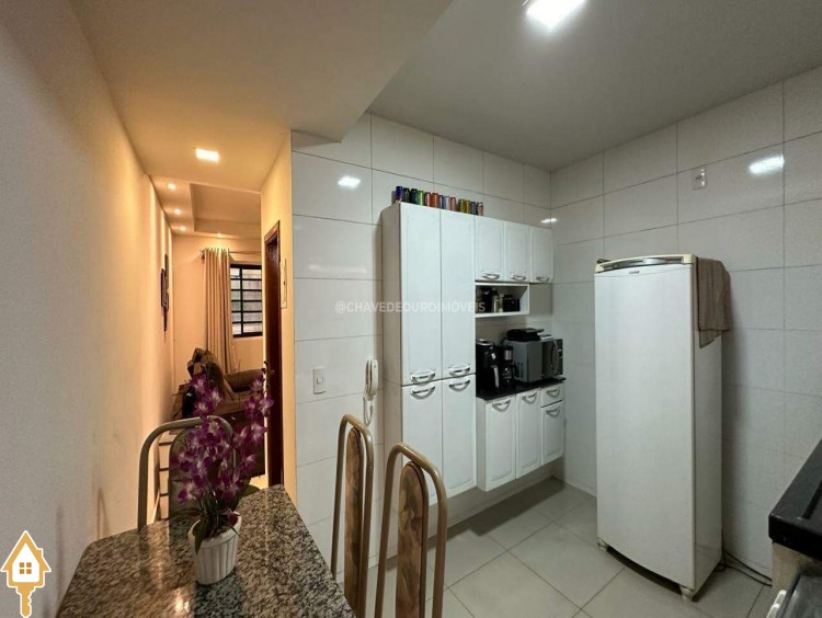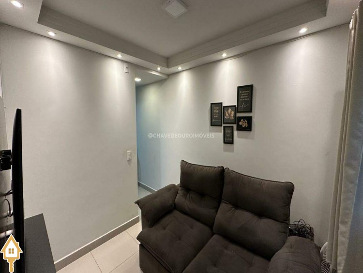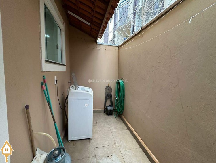 O pavimento térreo é composto por uma sala, lavabo, cozinha com armários planejados, lavanderia e uma área aberta. No segundo pavimento, encontram-se 2 quartos, sendo um deles com varanda, além de um banheiro. Os quartos também possuem armários planejados, proporcionando praticidade e organização.