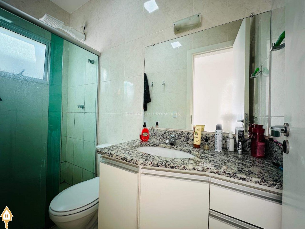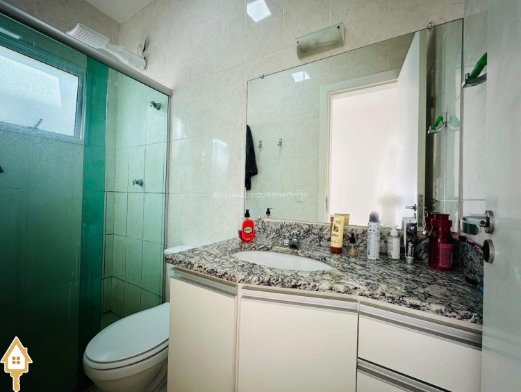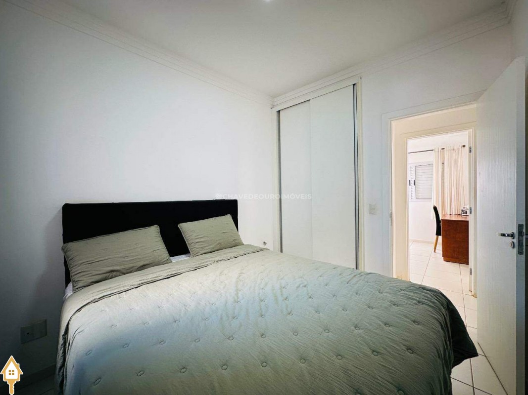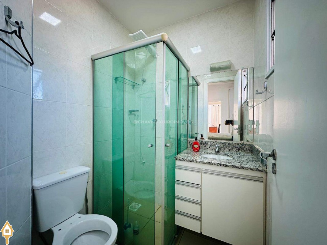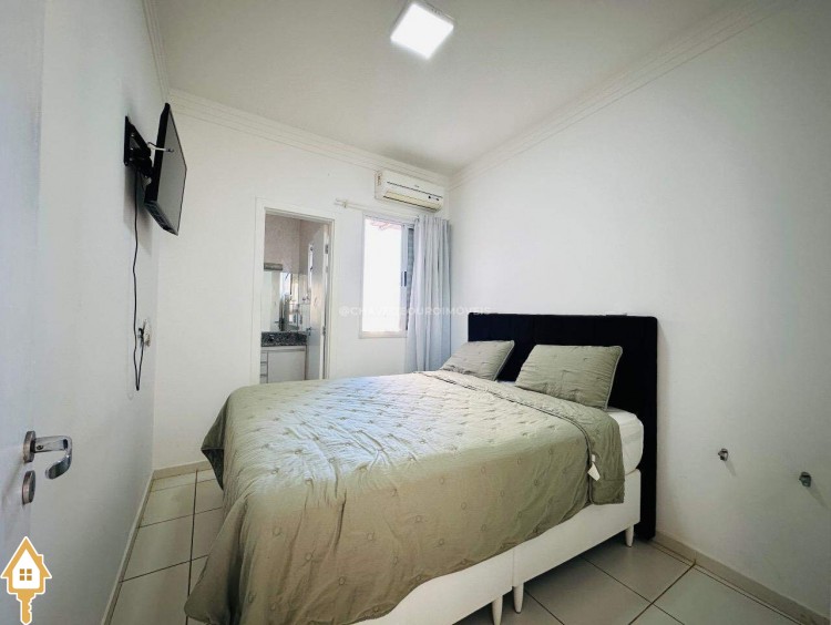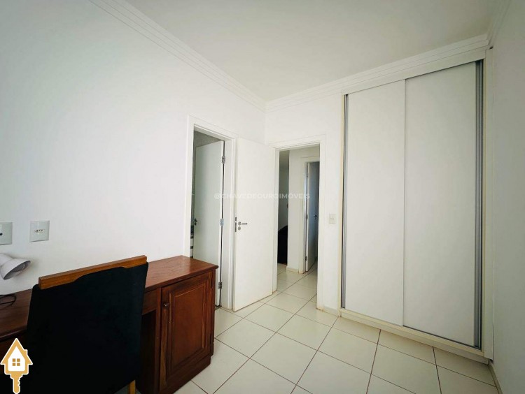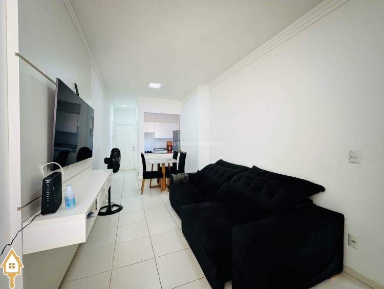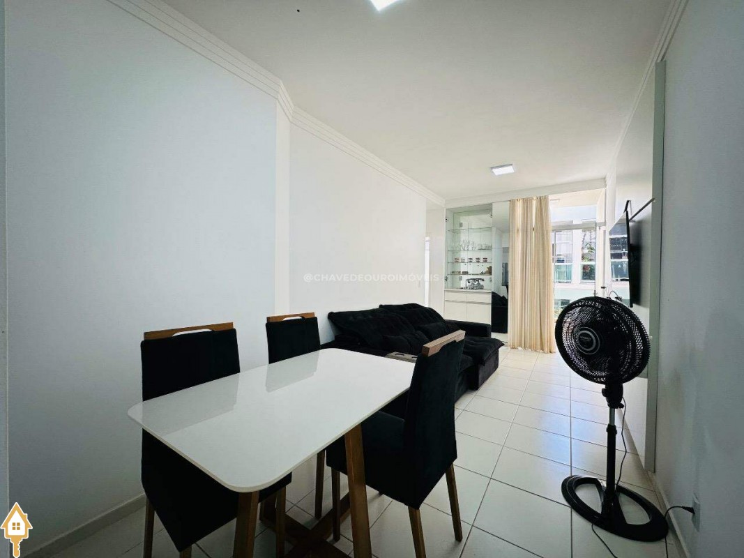 A cozinha planejada com armários garante funcionalidade no dia a dia, enquanto a área de serviço complementa a praticidade do ambiente. Além disso, o apartamento conta com interfone, portão eletrônico e uma vaga de garagem.