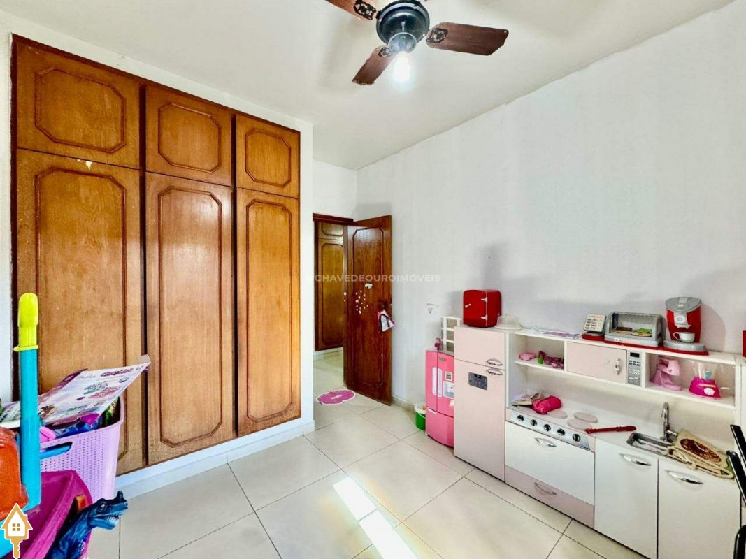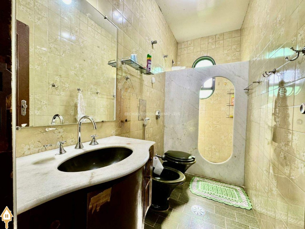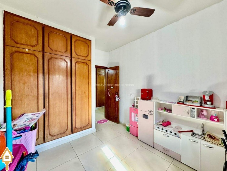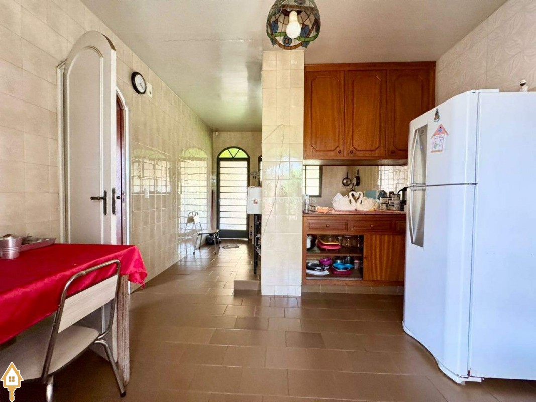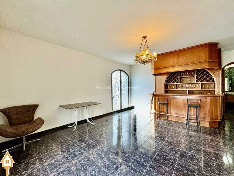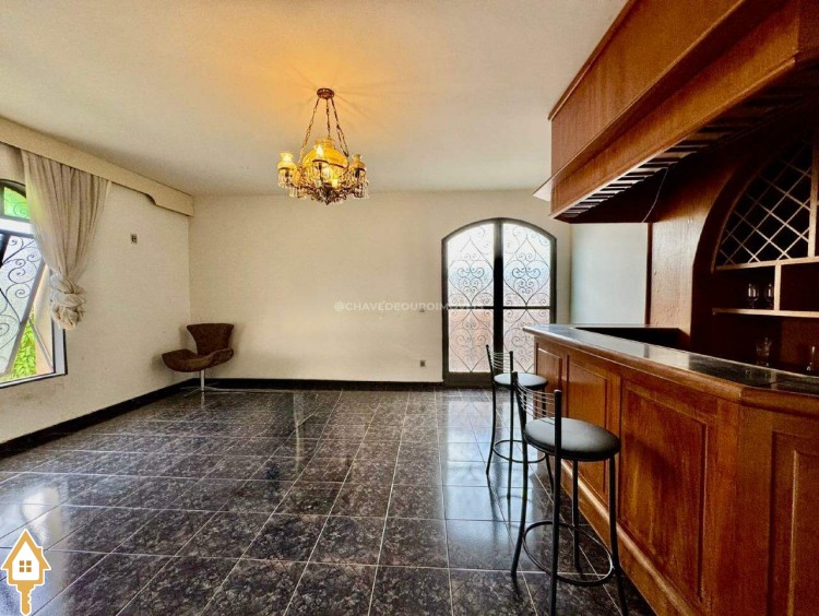 Na área de lazer, há uma varanda com lavanderia e um quintal amplo, perfeito para momentos de descontração, com churrasqueira para receber amigos e familiares. A cozinha é integrada com uma copa, facilitando o dia a dia. Também há um banheiro social, além de um banheiro na suíte e na edícula nos fundos, que possui quartos adicionais e mais um banheiro, ideal para hóspedes ou funcionários.