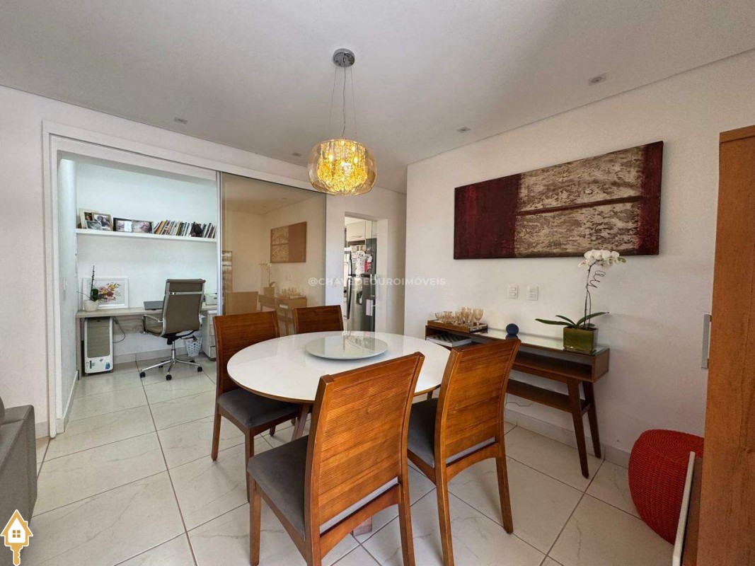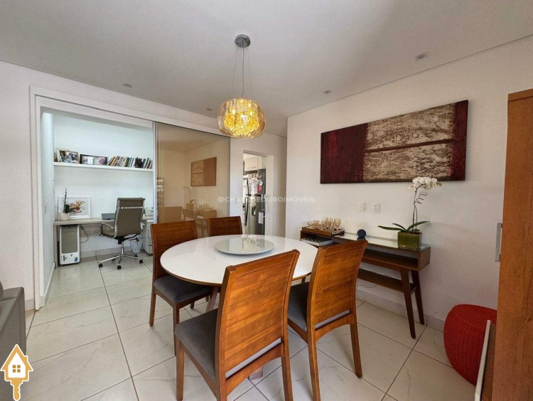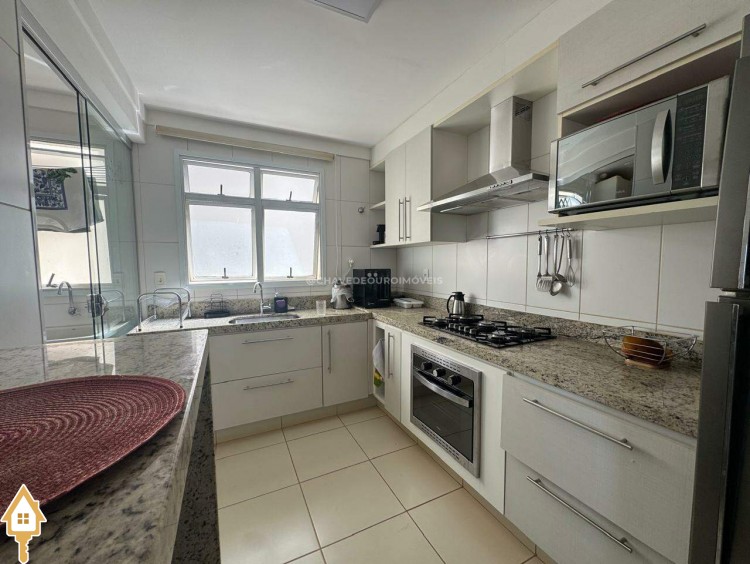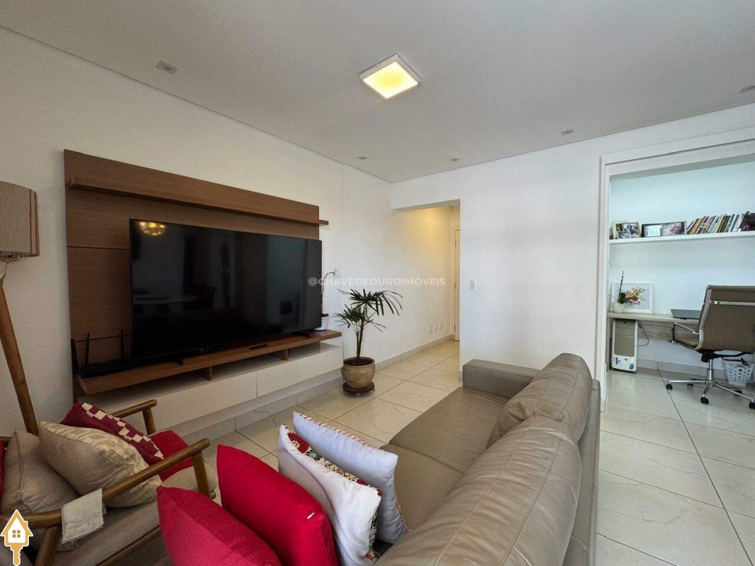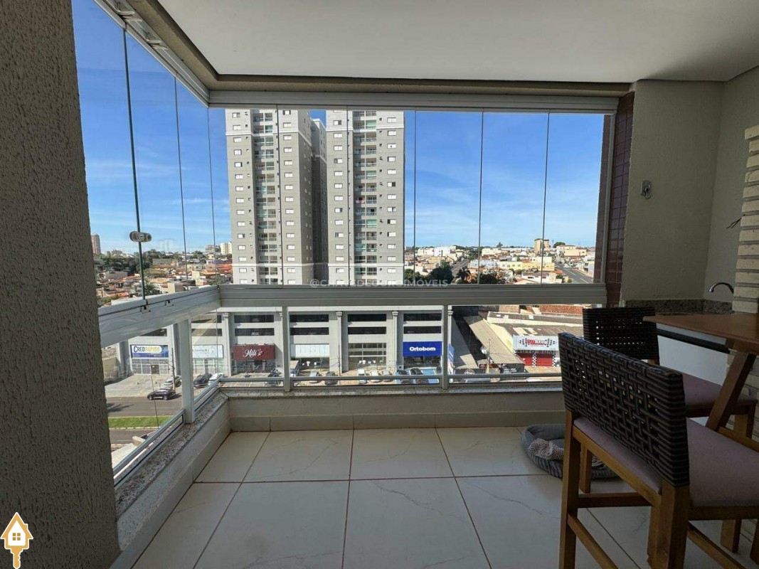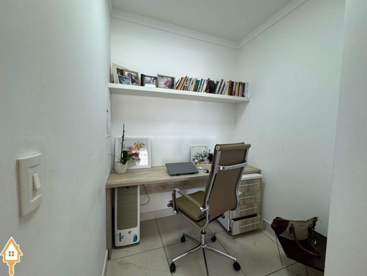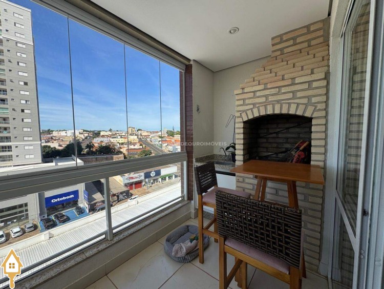 Este imóvel oferece um equilíbrio ideal entre conforto, funcionalidade e estilo. São 03 quartos, incluindo uma suíte, além de um escritório planejado com bancada em madeira, prateleiras e iluminação natural, ideal para estudos. O living é amplo e bem iluminado, com integração entre sala de jantar e estar, proporcionando um ambiente acolhedor e versátil. A varanda gourmet conta com churrasqueira em alvenaria, bancada em granito, fechamento em vidro e vista aberta para a cidade, ideal para momentos de lazer e convivência. A cozinha é funcional, equipada com armários sob medida, coifa em inox, cooktop, forno embutido e bancada em granito, facilitando o dia a dia. Composto ainda por lavabo, lavanderia fechada e duas vagas de garagem cobertas e livres.