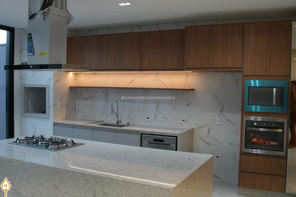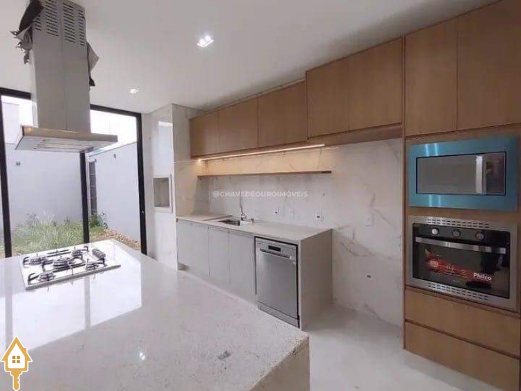 Casa localizada no condomínio Jardim do Lago em Uberaba, MG. Composta de três suítes, sendo a master com closet. Dispõe de dois lavabos, cozinha equipada com cooktop, forno, micro-ondas, coifa, cervejeira e lava louças. lavanderia e garagem coberta para dois carros. Conta com sala e copa em pé-direito duplo e cozinha gourmet com churrasqueira em alvenaria.