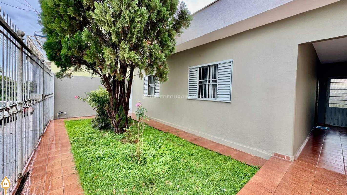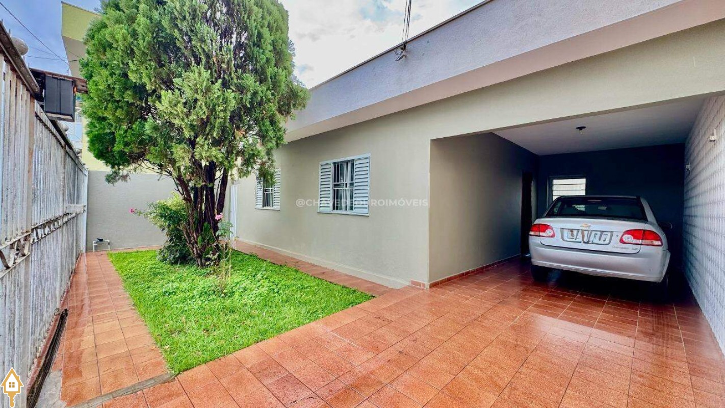 Imóvel aconchegante e bem conservado, com estrutura de laje e pintura em ótimo estado. Possui 3 quartos, sendo 1 suíte, além de sala de estar, copa, cozinha funcional e banheiro social. Nos fundos, conta com uma varanda coberta com lavanderia e banheiro adicional, além de um quintal com pequena cobertura e laterais de circulação descobertas — ideal para quem valoriza espaço externo. A frente do imóvel possui um bonito jardim gramado e 2 vagas de garagem, sendo 1 coberta.